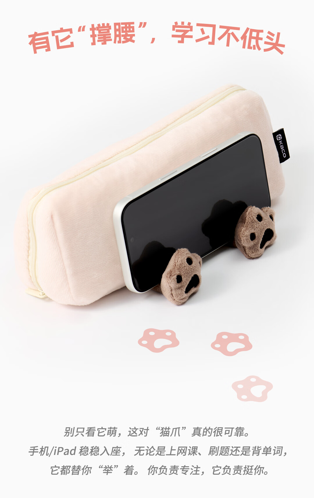 KACOQioo 趣味笔袋 可爱大容量 小学初中生用多功能 猫爪可支撑手机 收纳包 简约ins文具盒铅笔袋 趣味笔袋