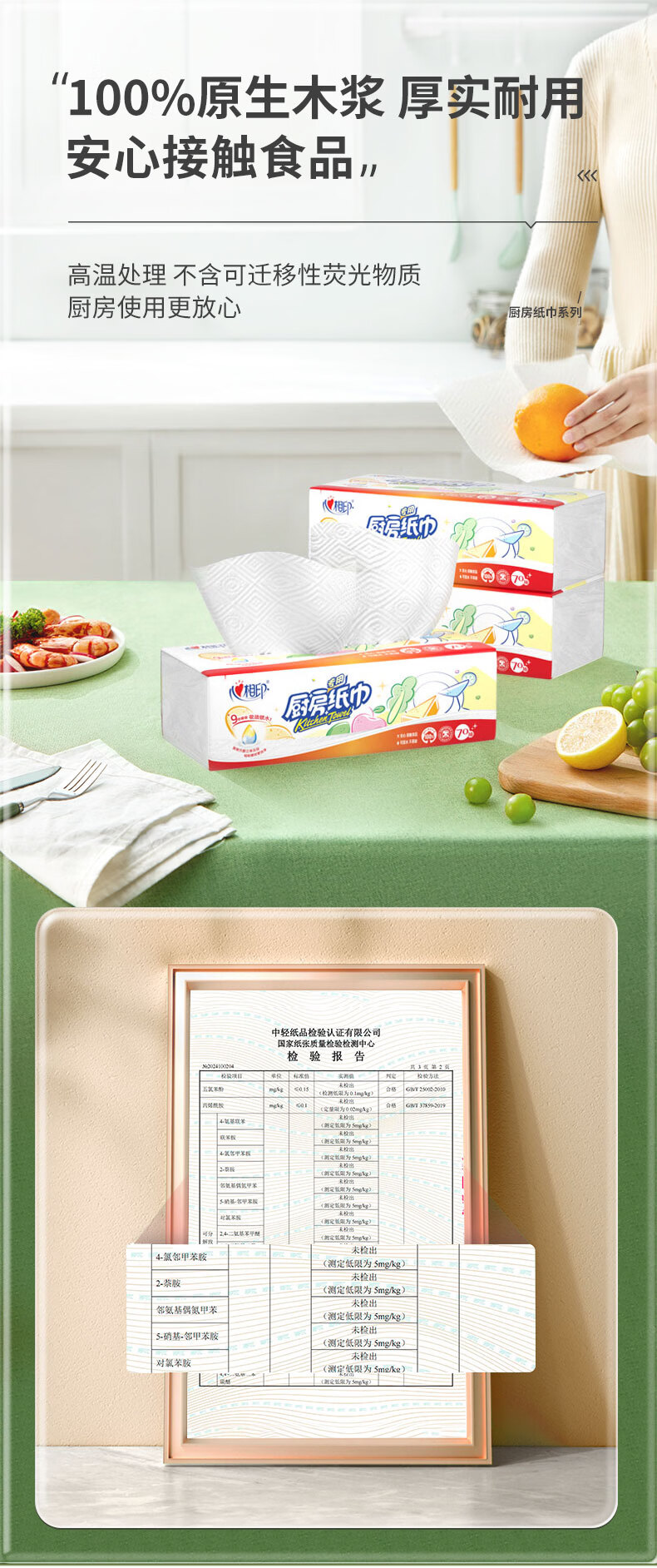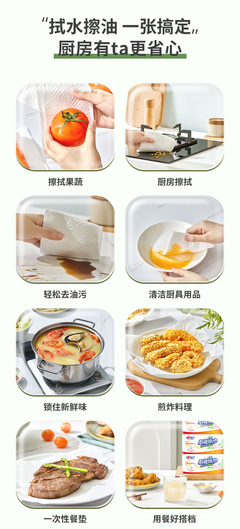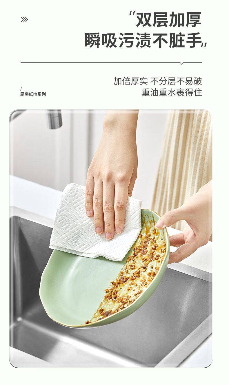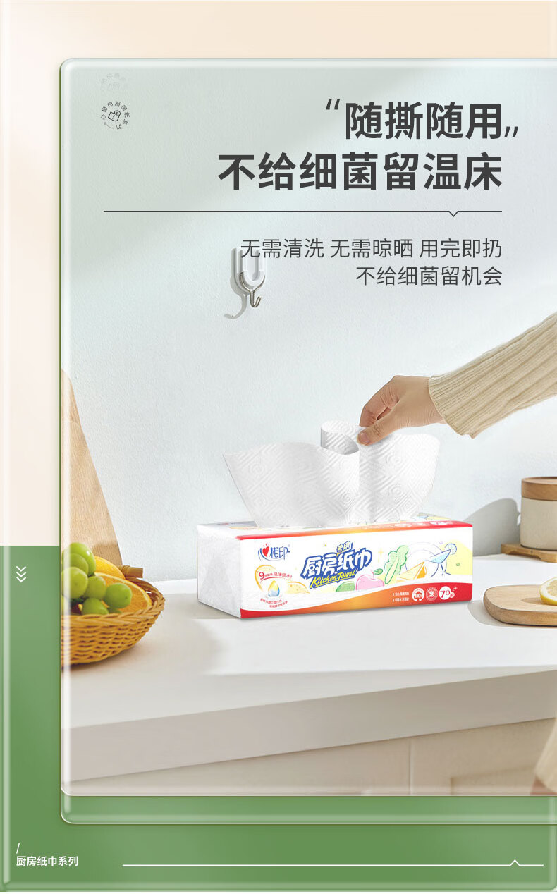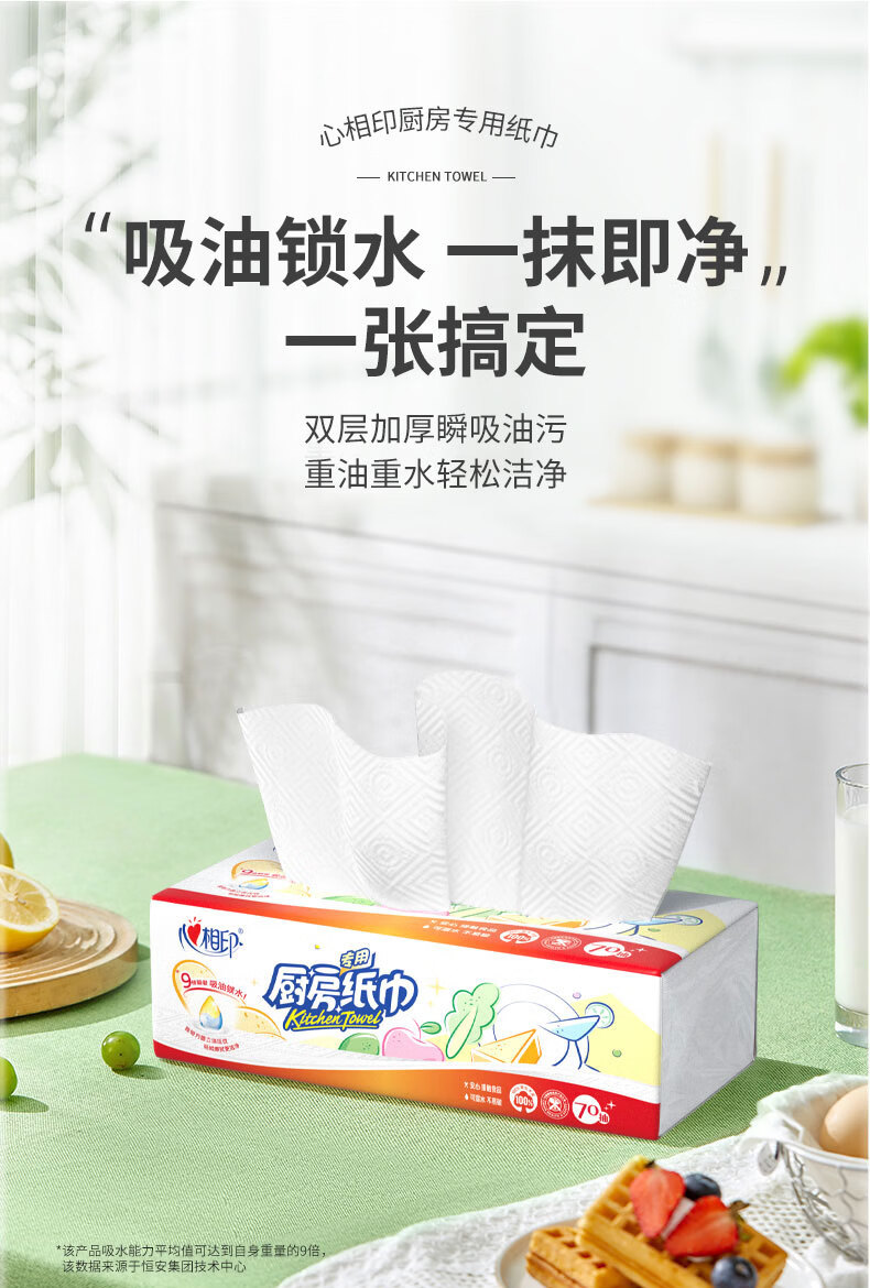 心相印抽纸/厨房用纸70抽*3包 加厚吸油锁水 食品接触级