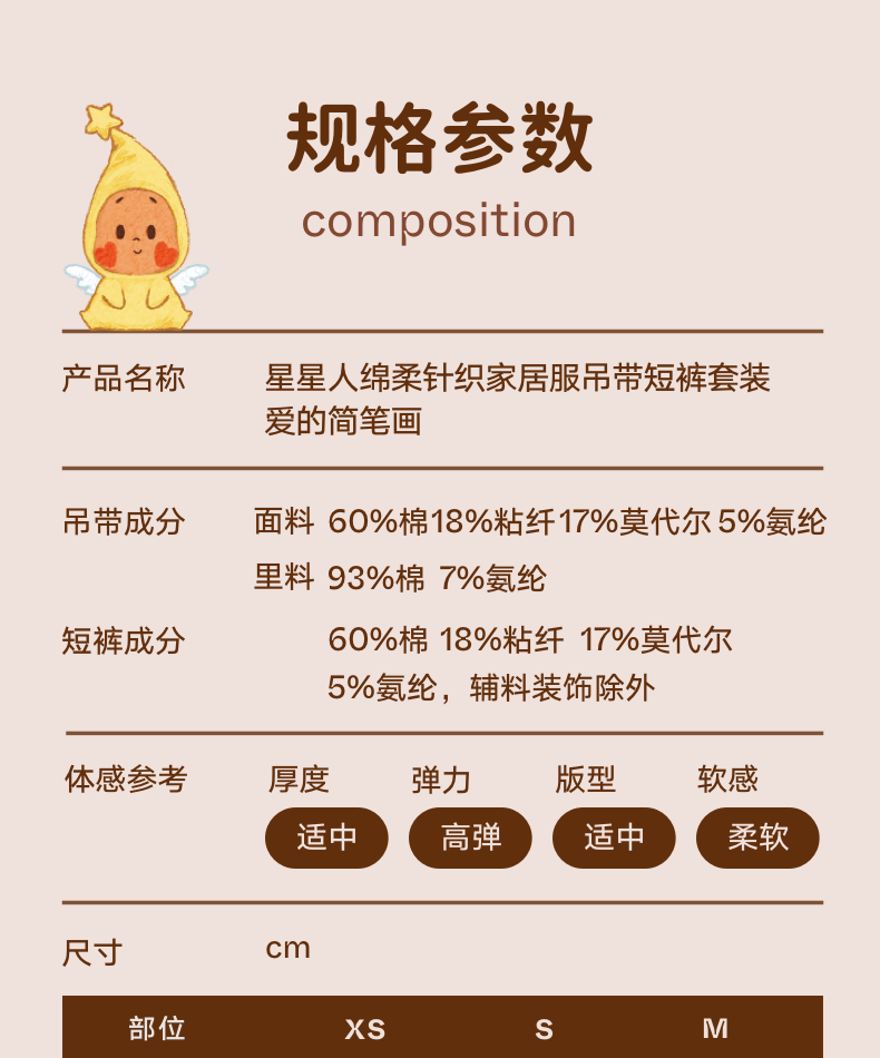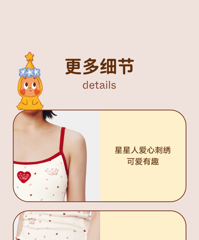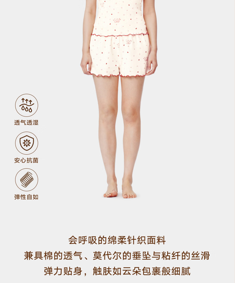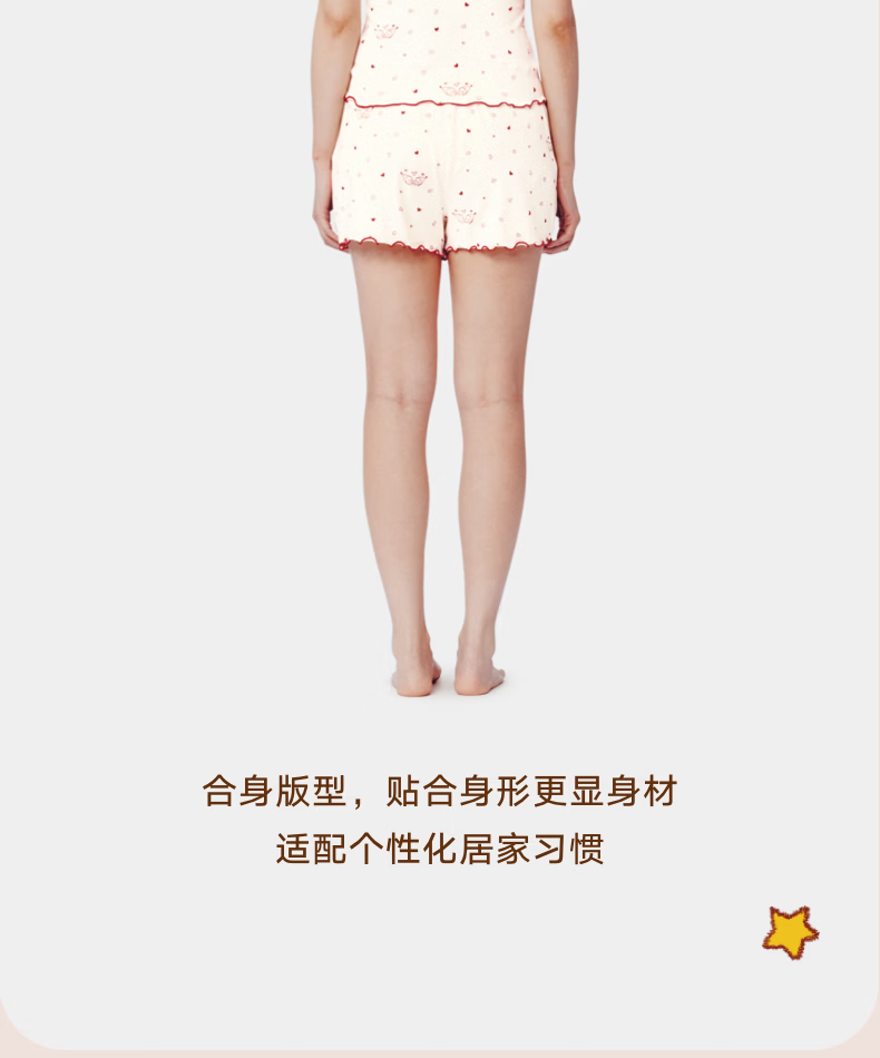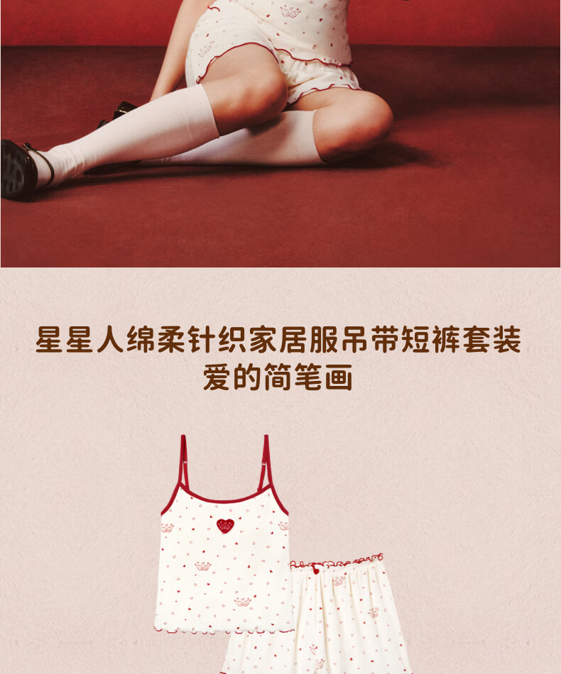 野兽派家居(tbh)星星人绵柔针织家居服吊带短裤套装带胸垫莫代尔棉睡衣女 星星人绵柔针织家居服吊带短裤套装 爱的简笔画 M