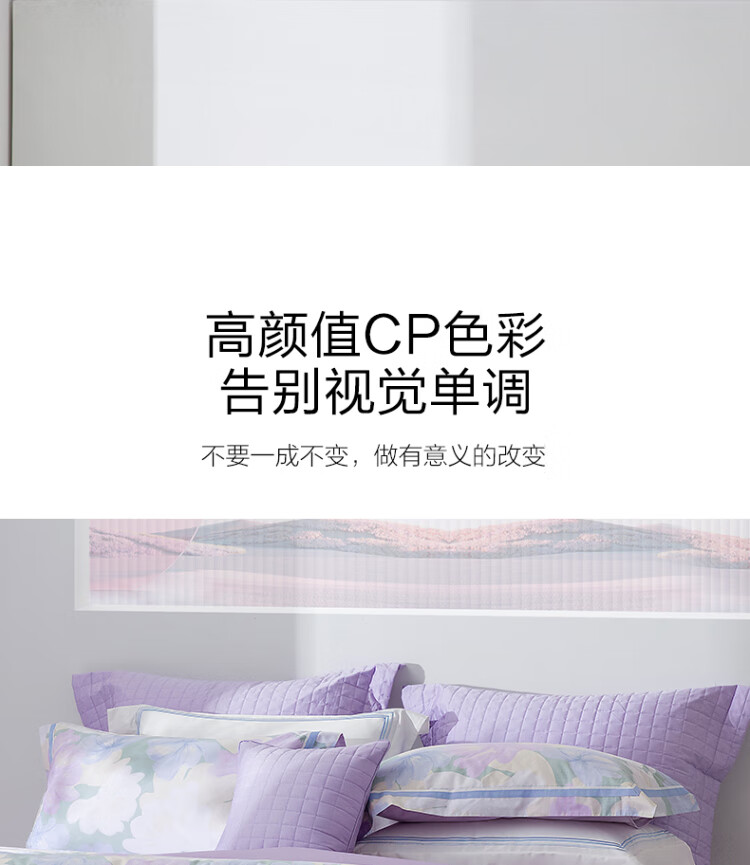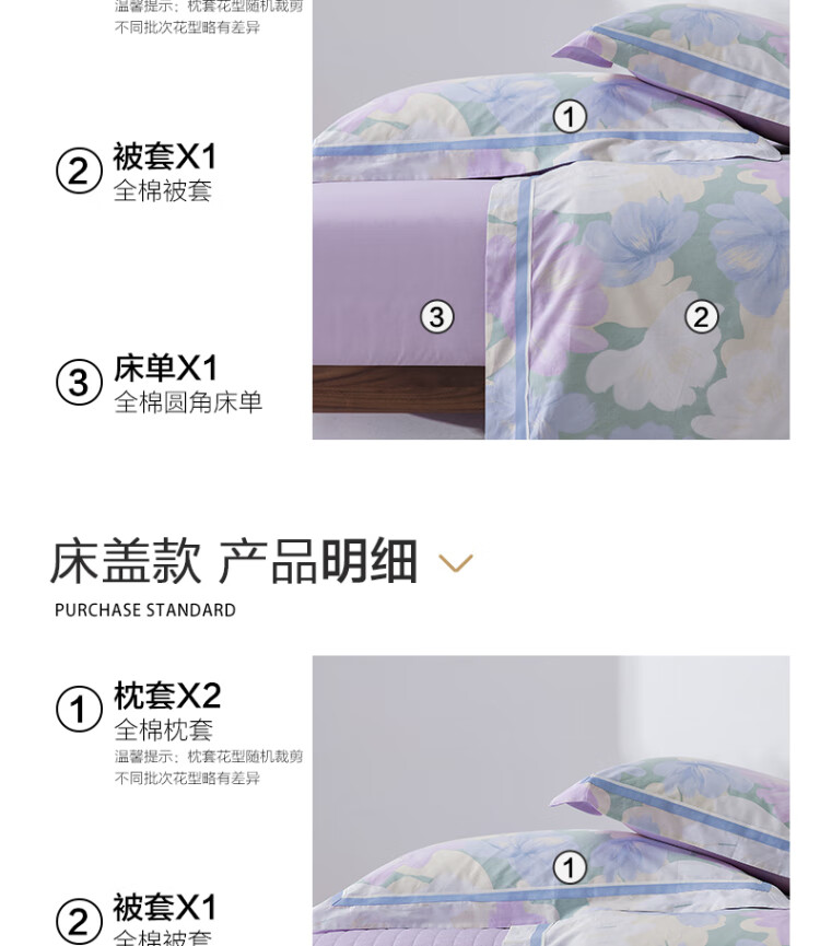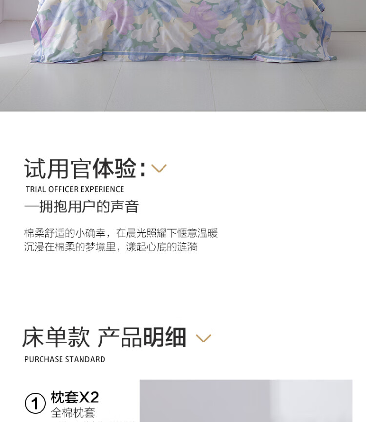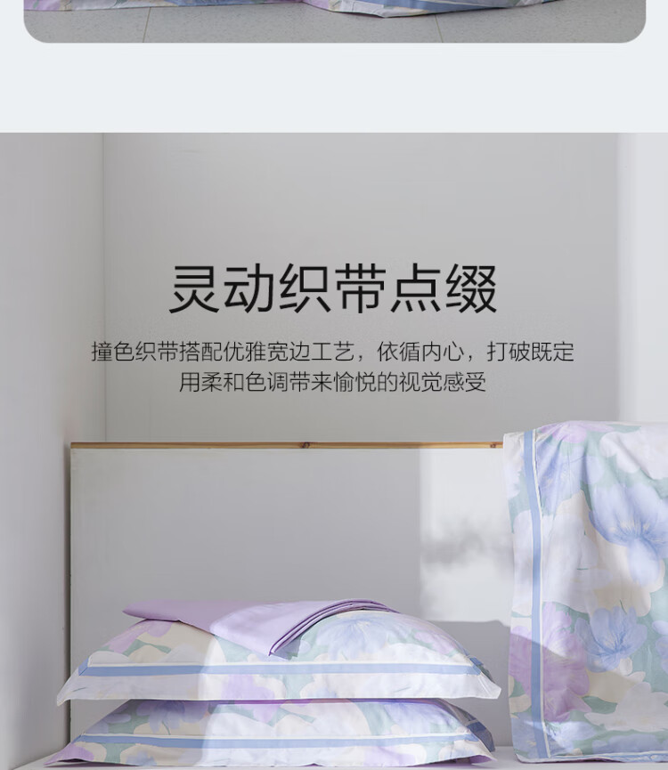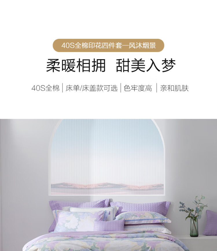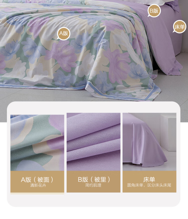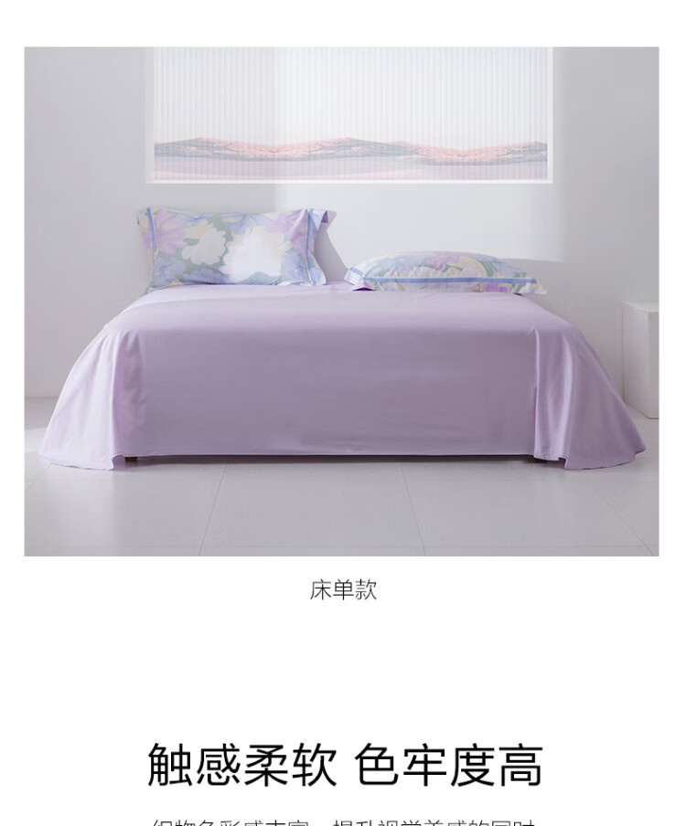 水星家纺出品百丽丝 四件套纯棉60S长绒棉居家轻柔全棉被套单件枕套套件 花楹流年【60S高密贡缎】 床单款 (被套220*240cm) 1.8床
