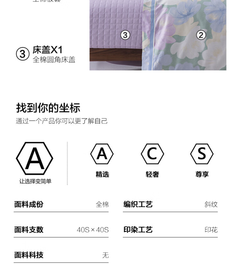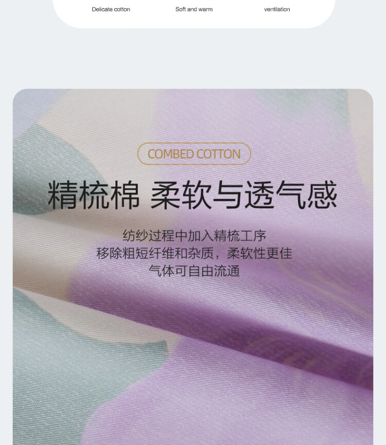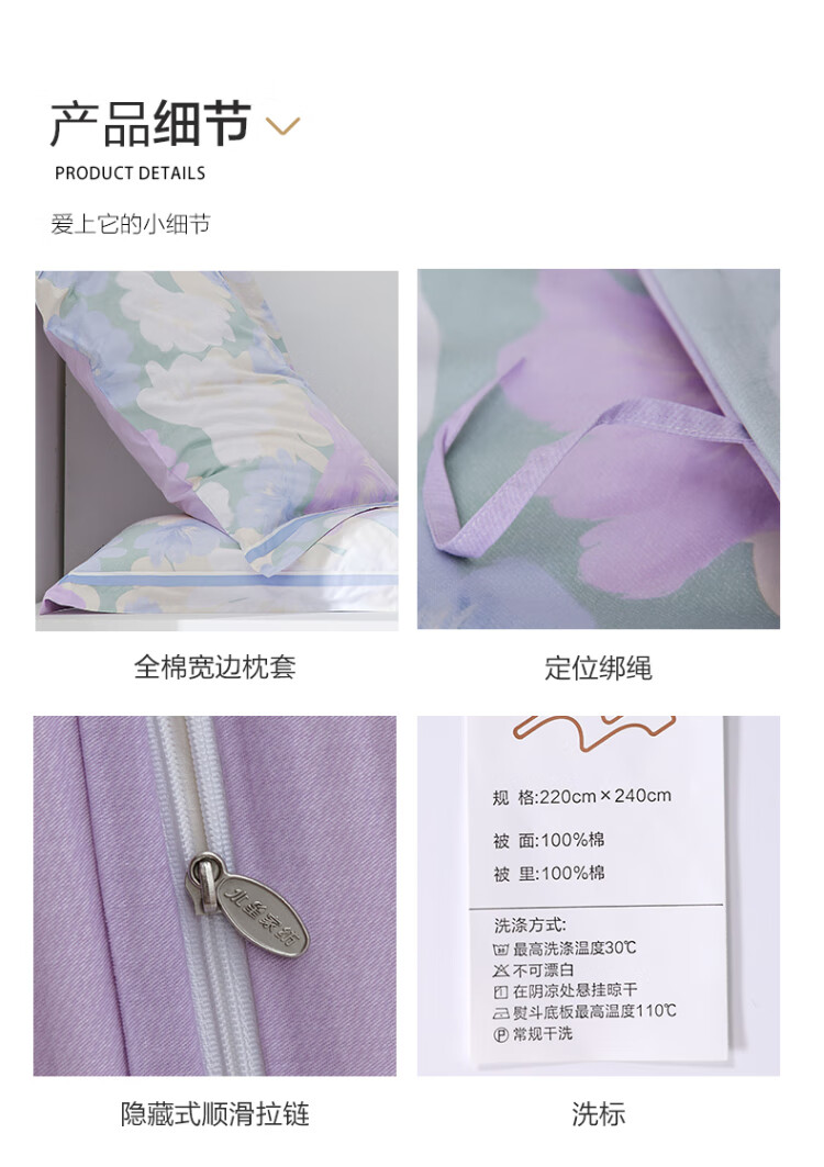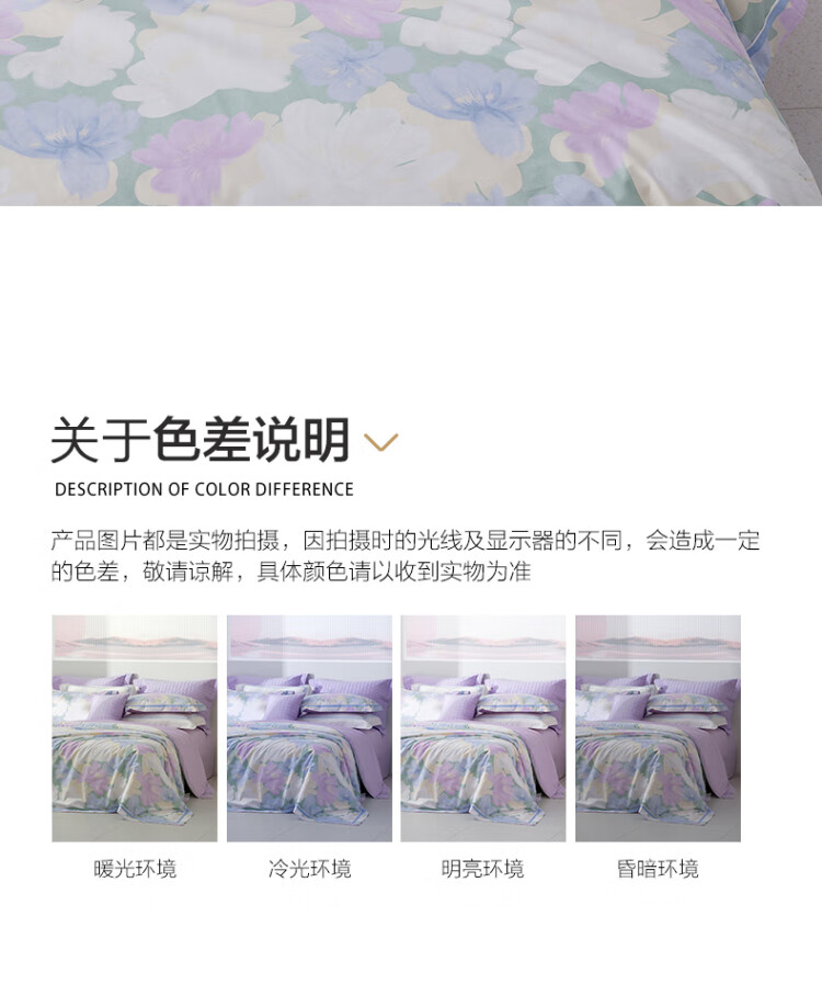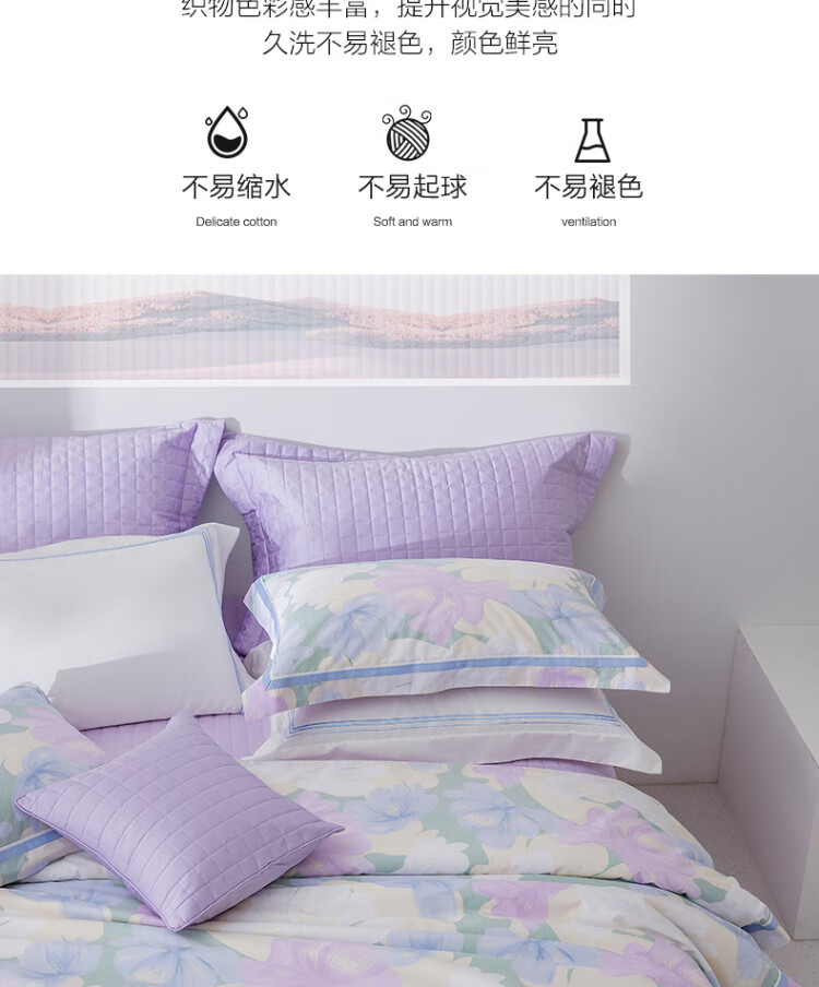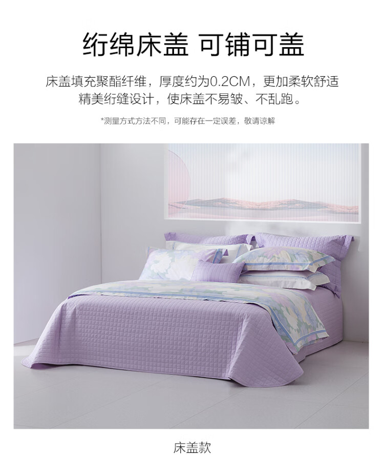 水星家纺出品百丽丝 四件套纯棉60S长绒棉居家轻柔全棉被套单件枕套套件 花楹流年【60S高密贡缎】 床单款 (被套220*240cm) 1.8床