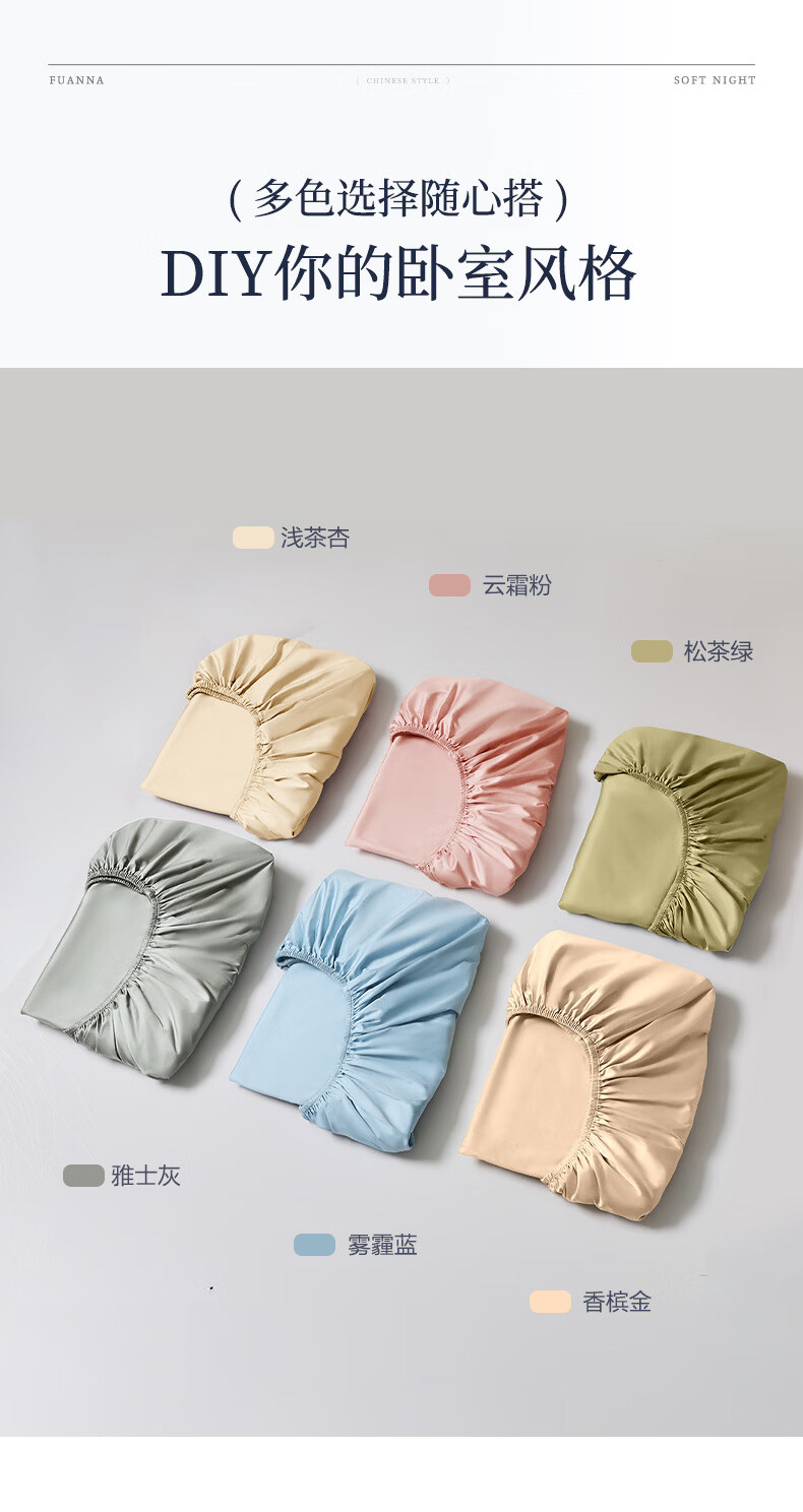 富安娜 全棉床笠罩单件 纯棉床单床罩隔脏床垫保护套 可水洗床罩 【100S长绒棉】雅士灰 1.5米床 150cm*200cm