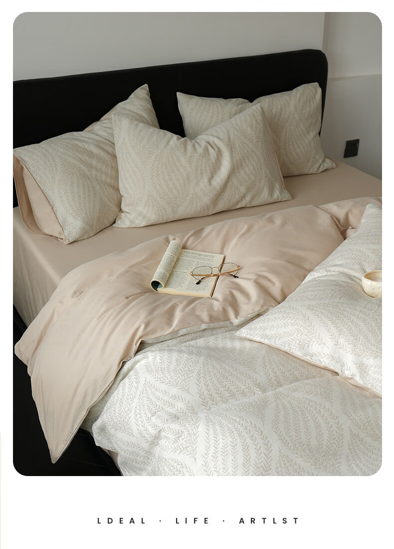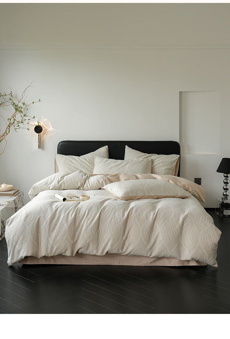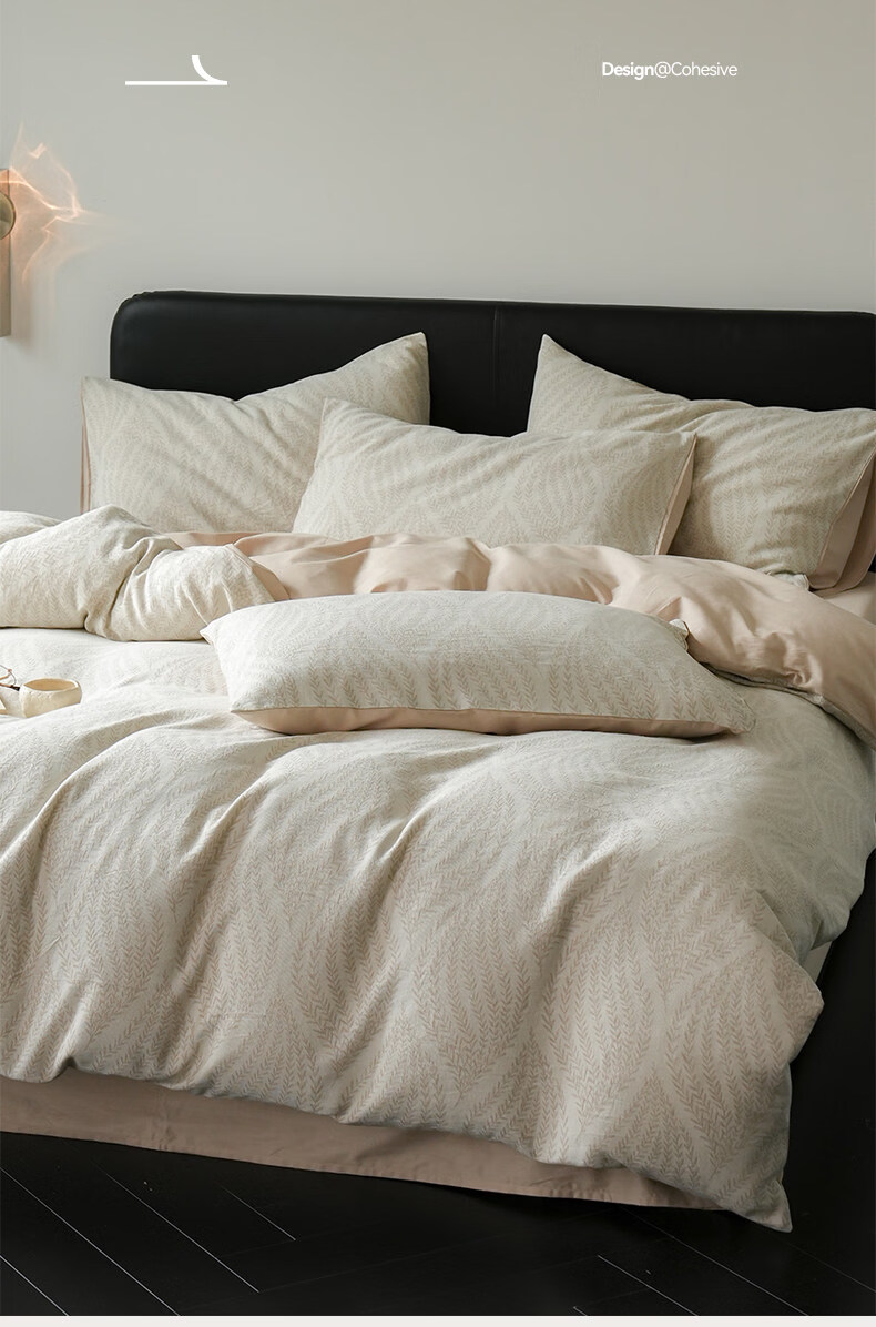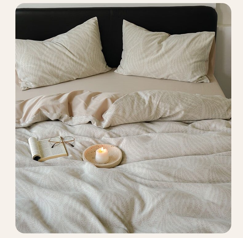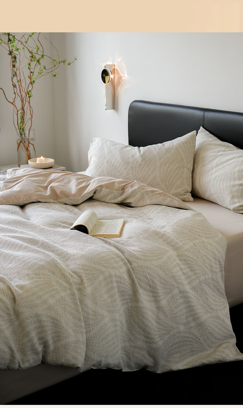 猫人(MiiOW)全棉三层纱磨毛床上四件套纯棉高级感床单被套三件套床品四季通用 春意-浅草绿【全棉三层纱磨毛】 1.8m 床单款 四件套-200x230cm被套