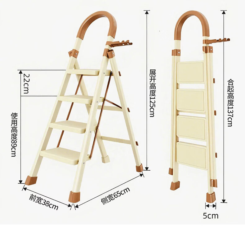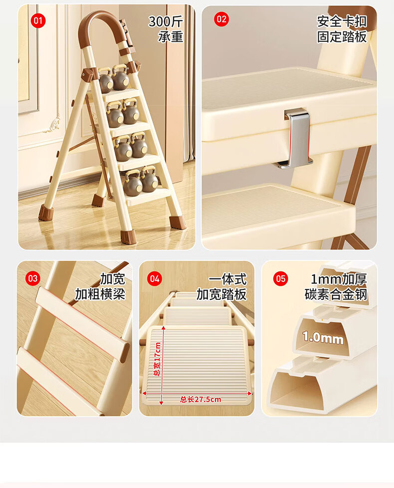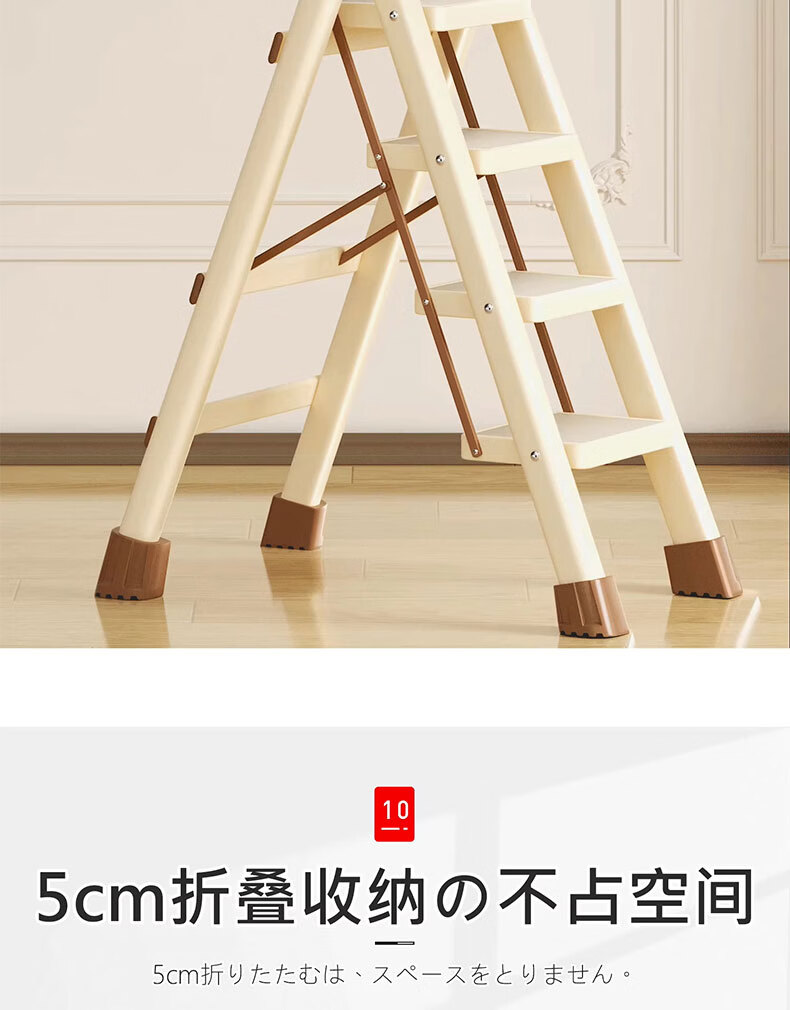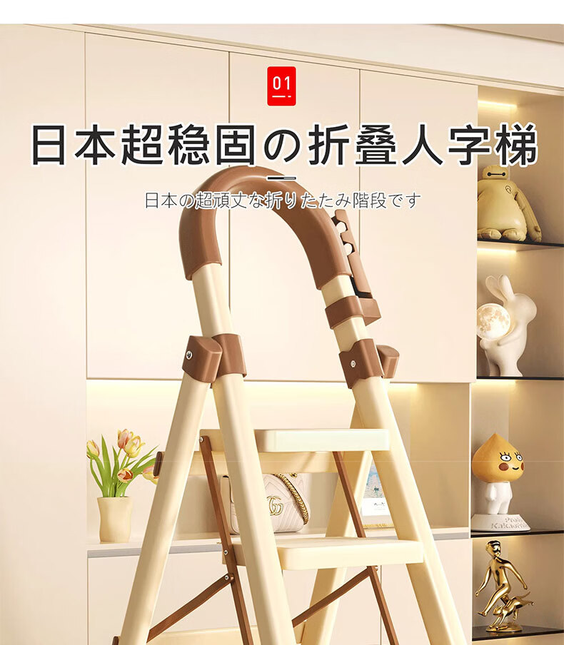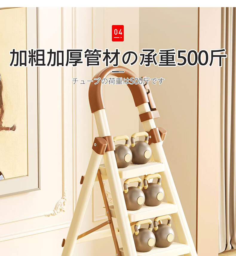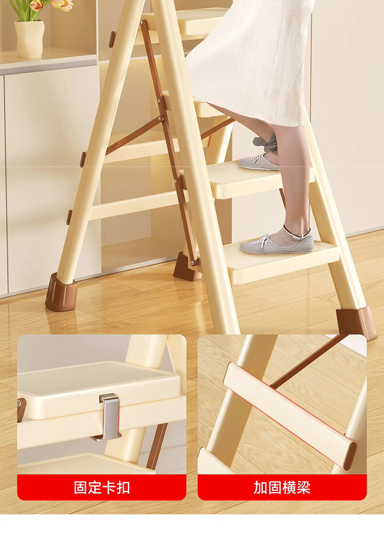 吱凡日本家用收纳折叠人字梯加厚加粗款小型轻便家庭室内多功能收纳梯 奶白色-4步梯【500斤承重 | 超稳固不摇晃】