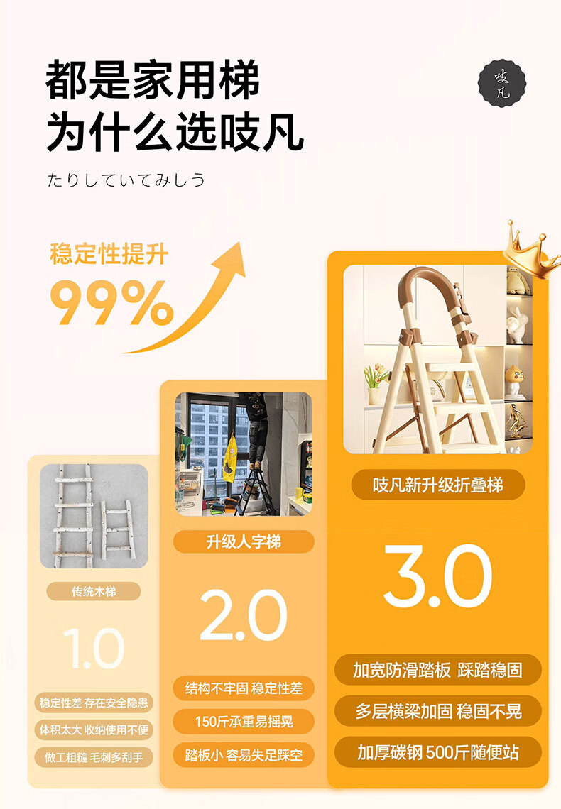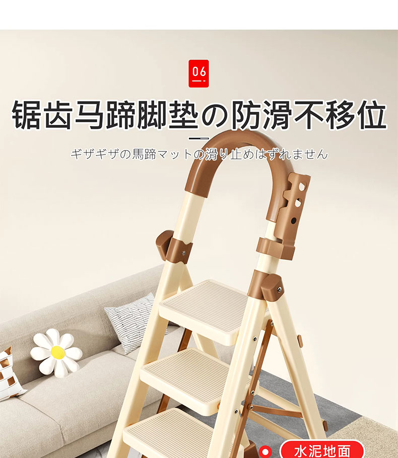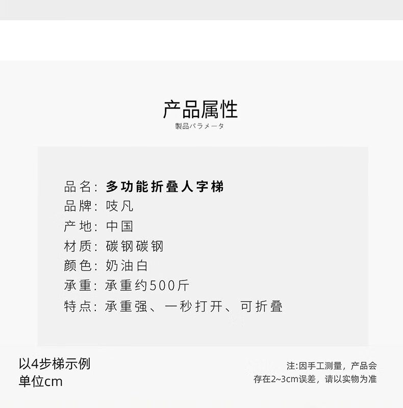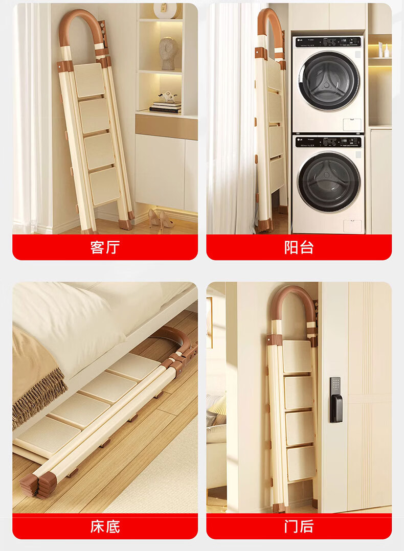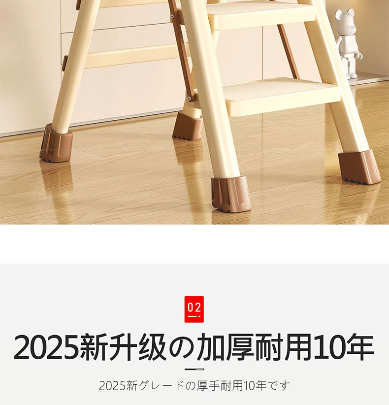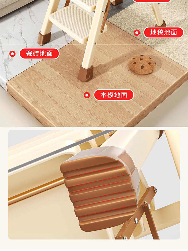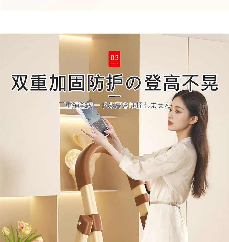 吱凡日本家用收纳折叠人字梯加厚加粗款小型轻便家庭室内多功能收纳梯 奶白色-4步梯【500斤承重 | 超稳固不摇晃】