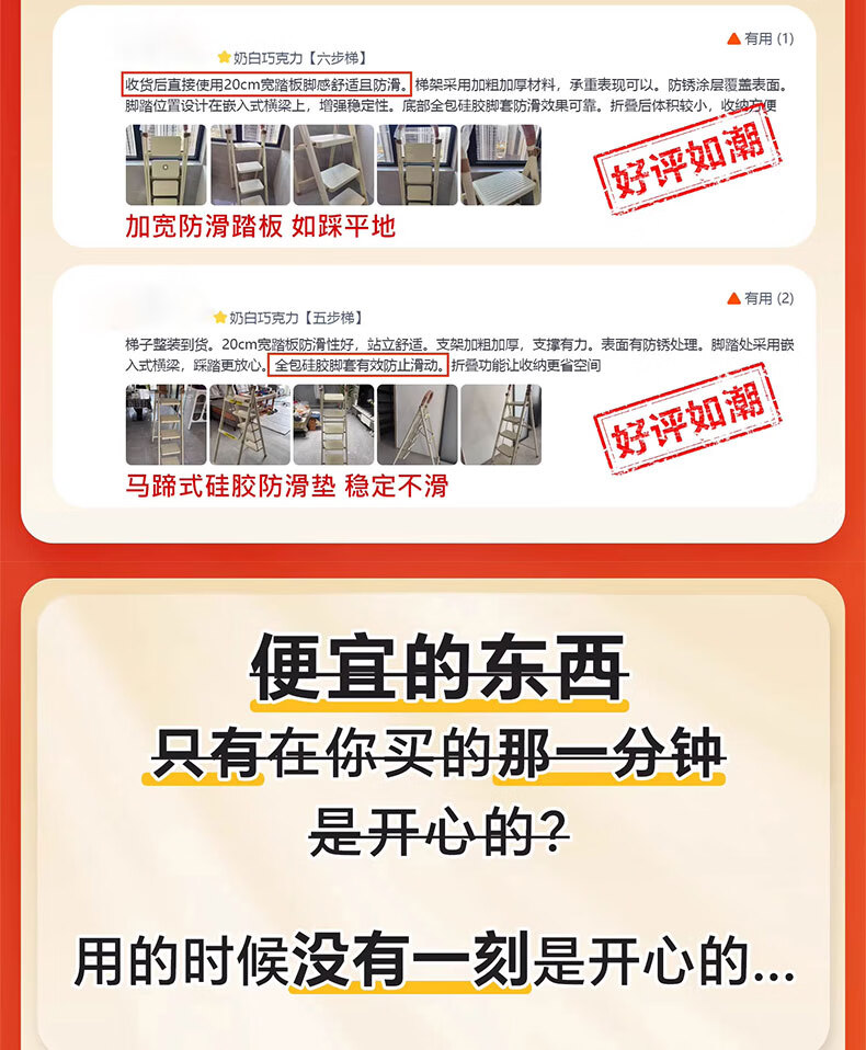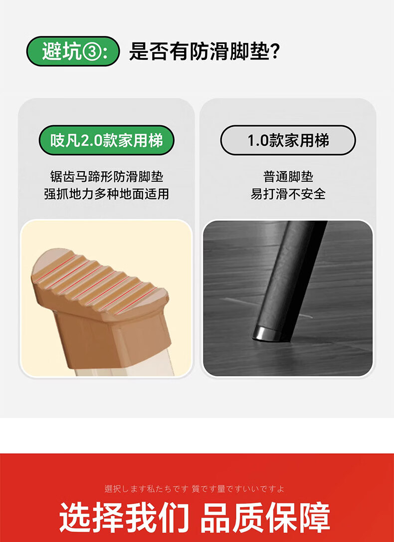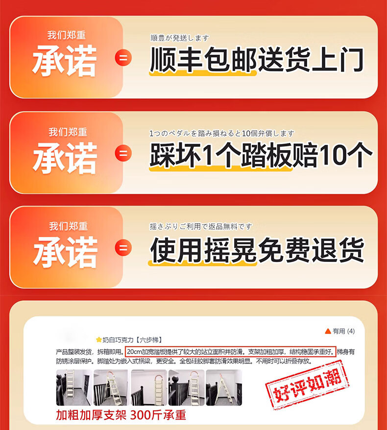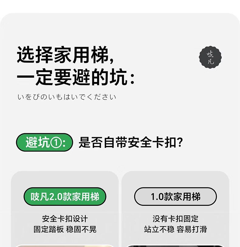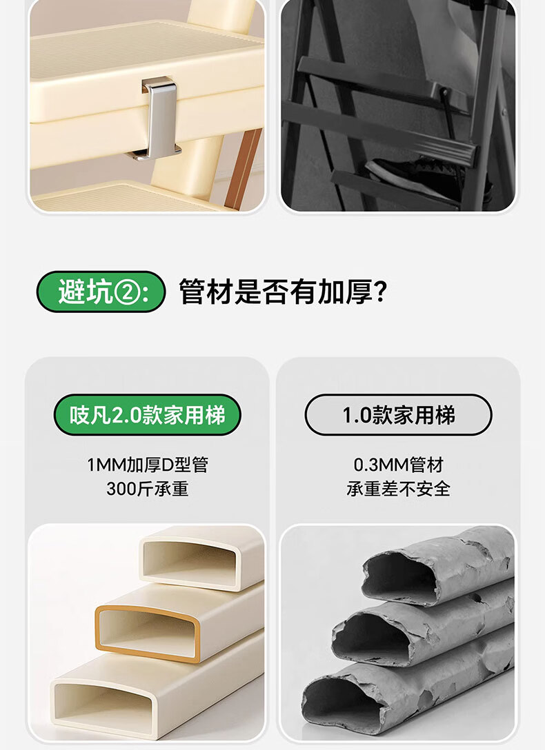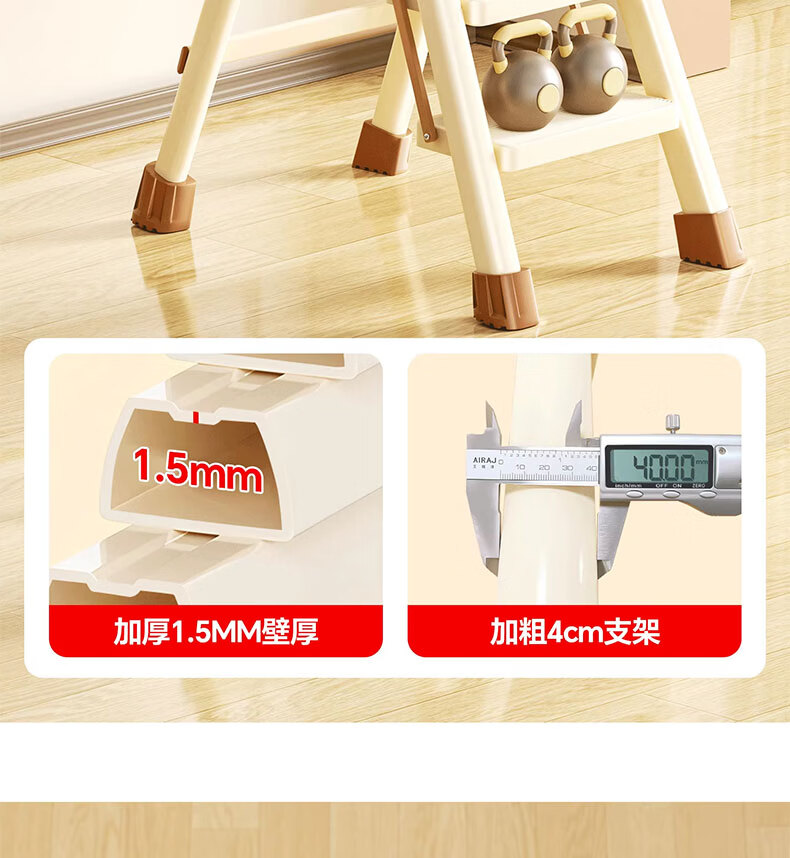 吱凡日本家用收纳折叠人字梯加厚加粗款小型轻便家庭室内多功能收纳梯 奶白色-4步梯【500斤承重 | 超稳固不摇晃】