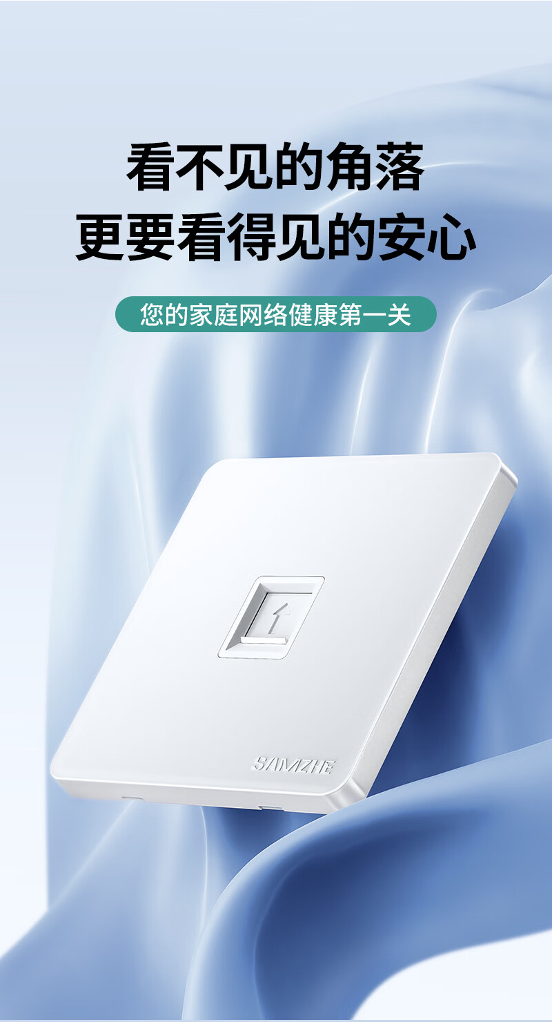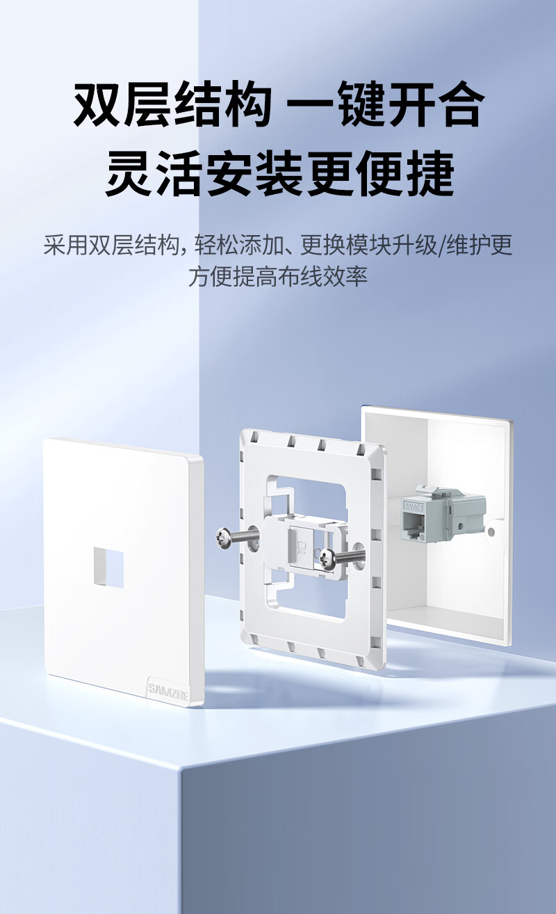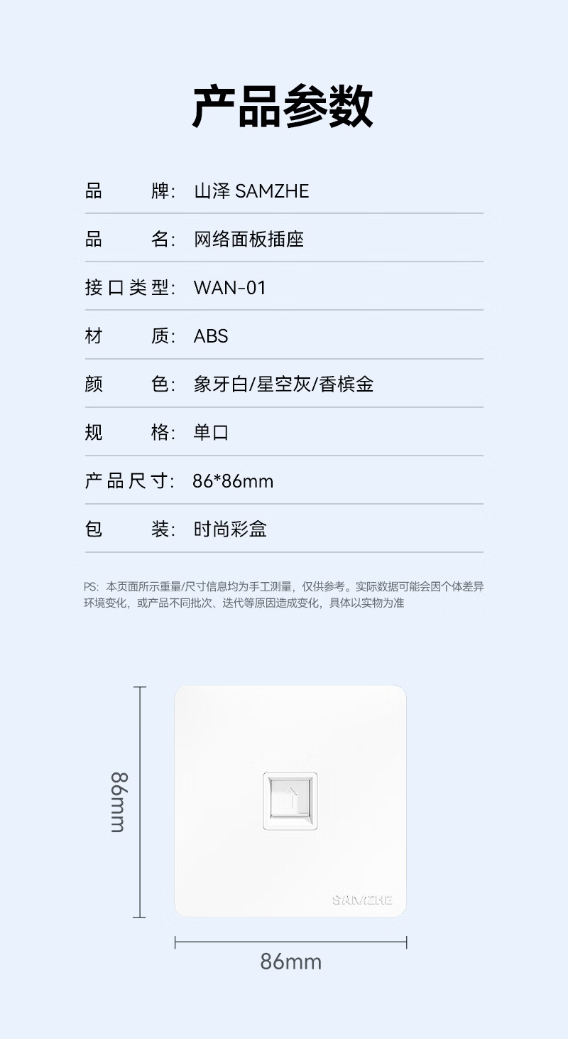 山泽网线网口网络面板 通用超五/六/七类模块加厚86型面板 适用电脑房间网络插座 一位 WAN-01