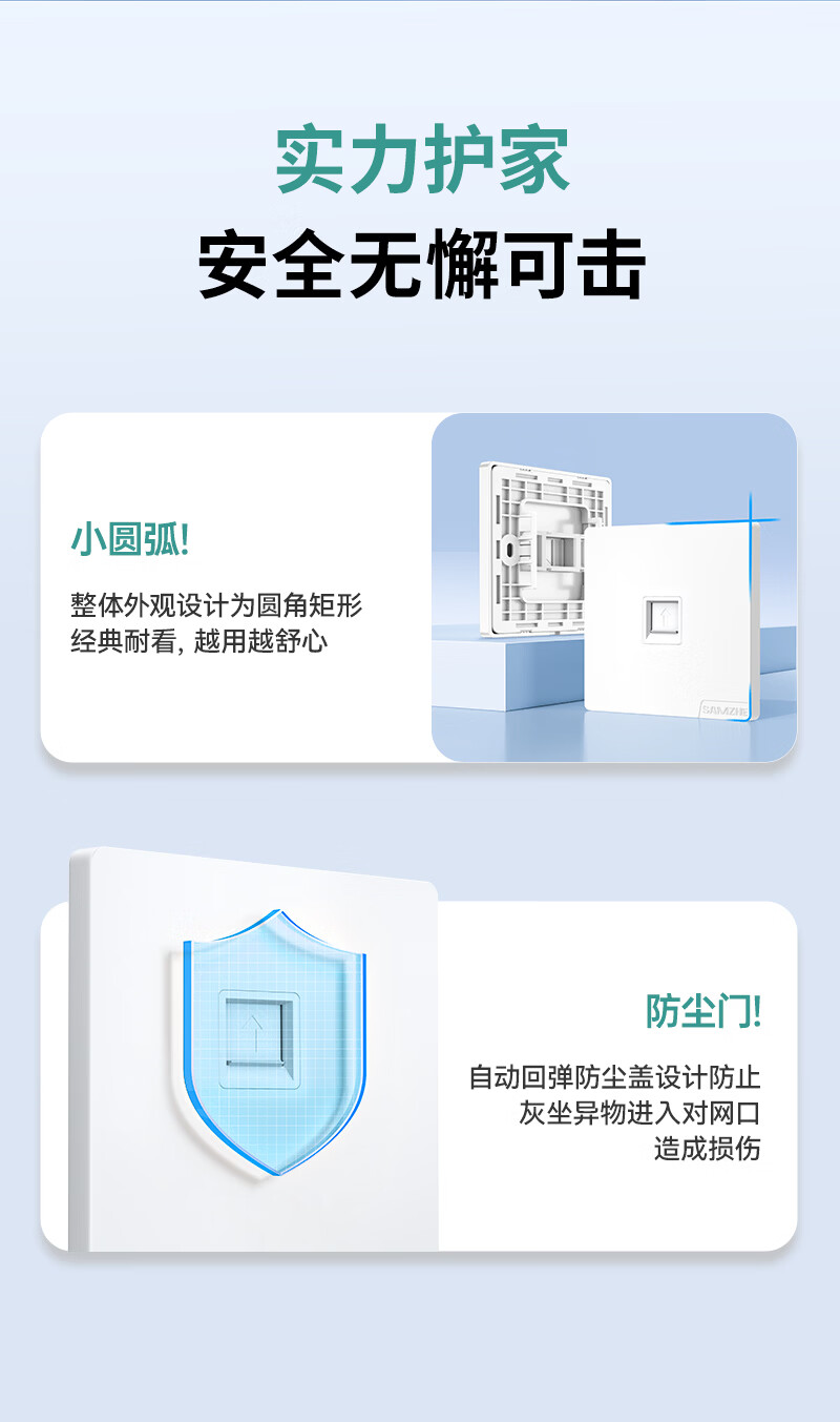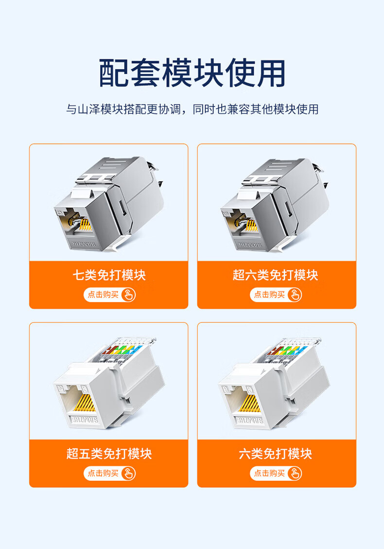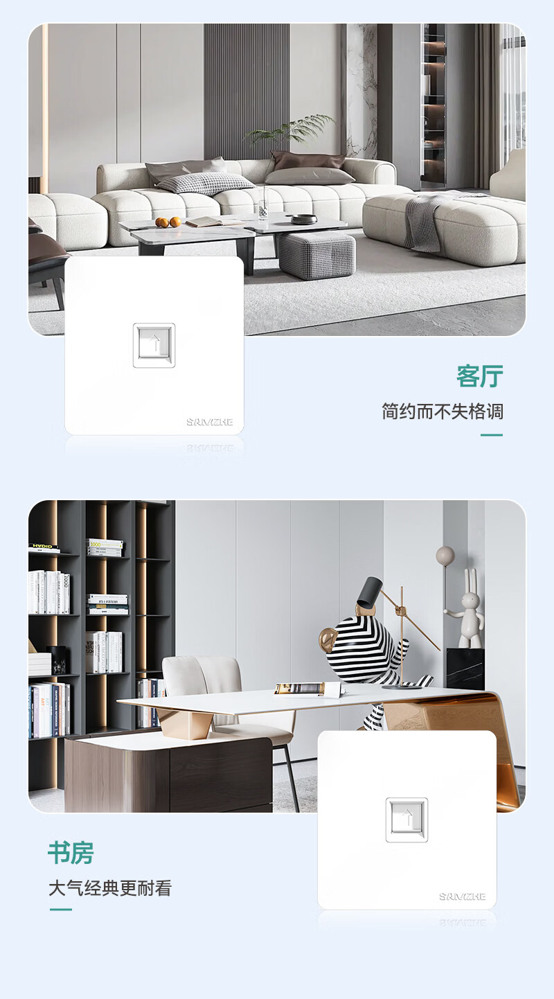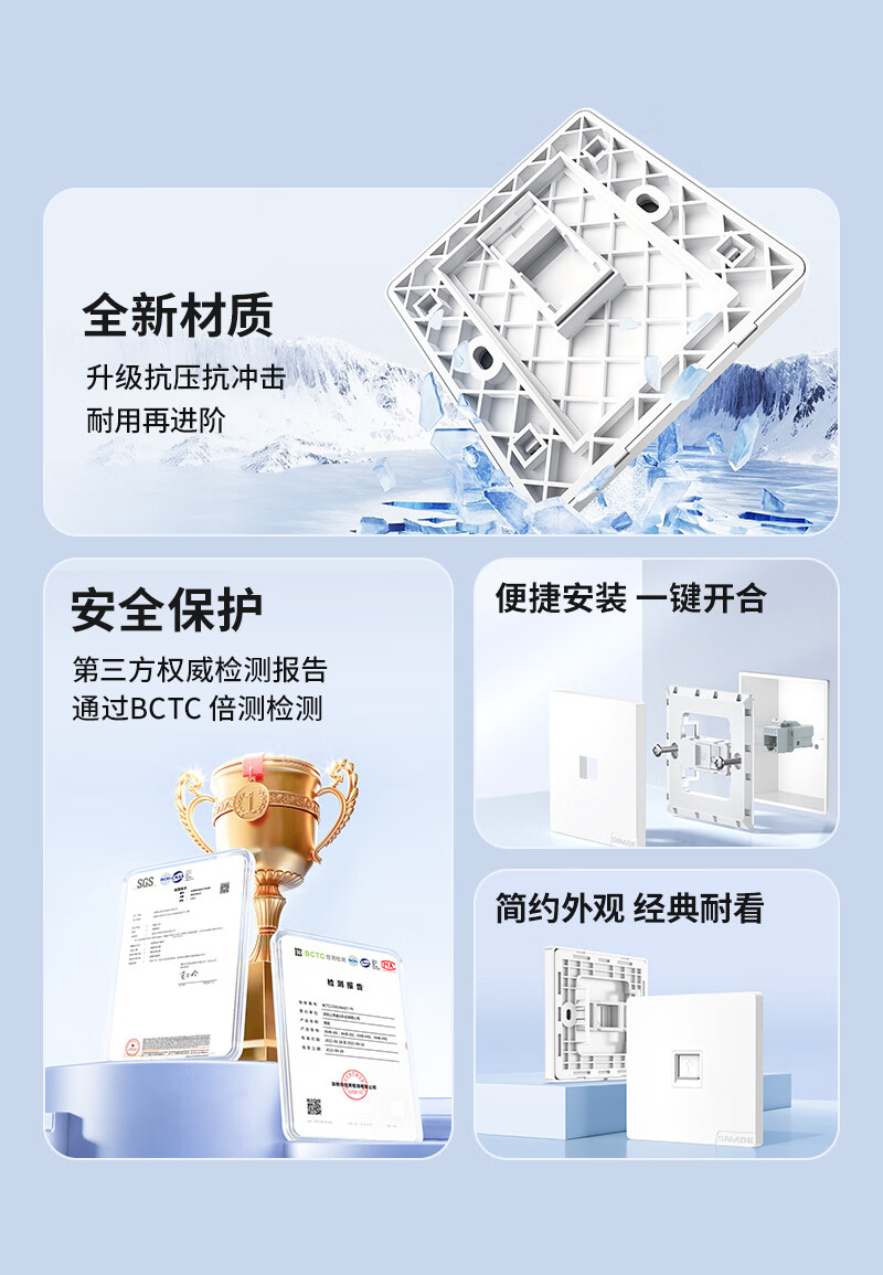 山泽网线网口网络面板 通用超五/六/七类模块加厚86型面板 适用电脑房间网络插座 一位 WAN-01