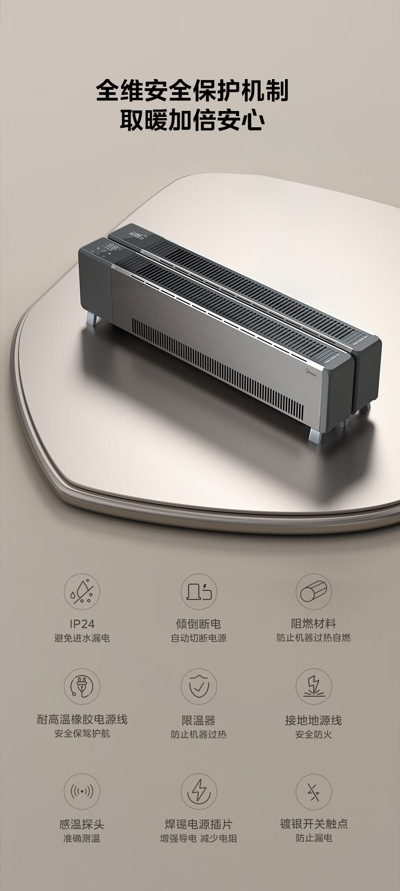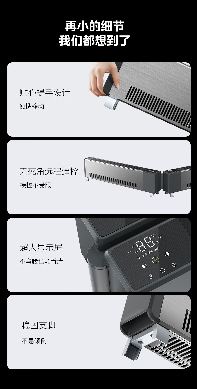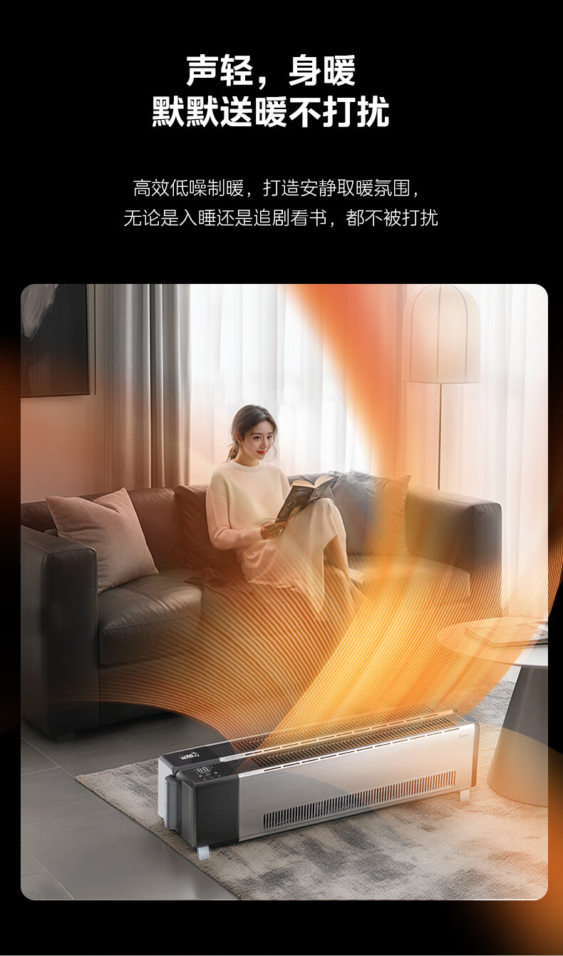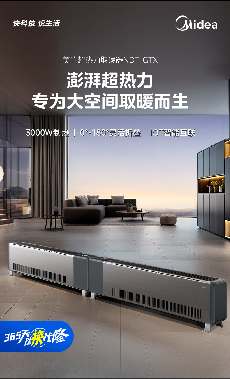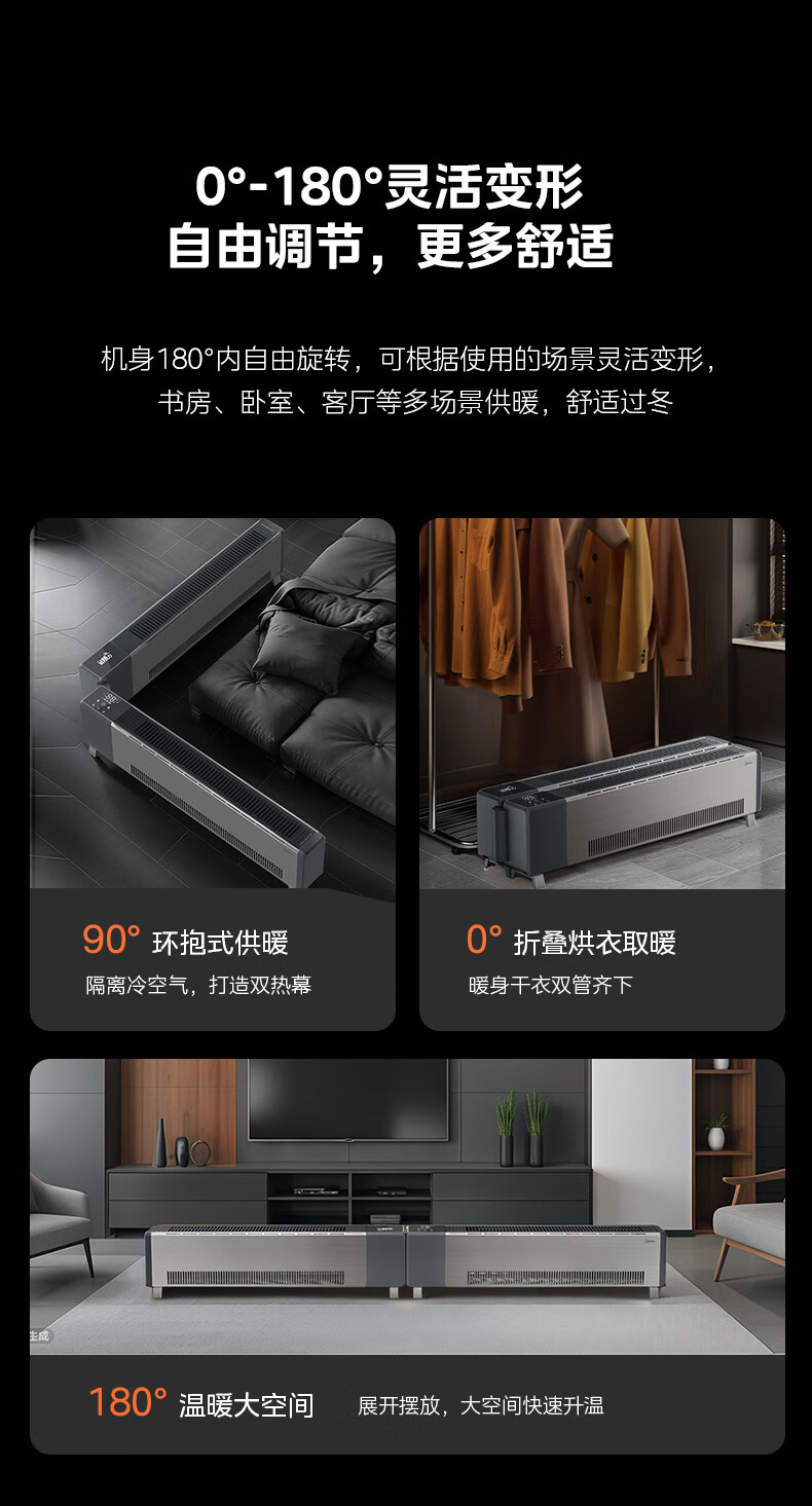 美的(Midea)石墨烯踢脚线取暖器 全屋升温大面积50平方速热3000W大功率家用电热电暖气电暖器烤火炉 NDT-GTX
