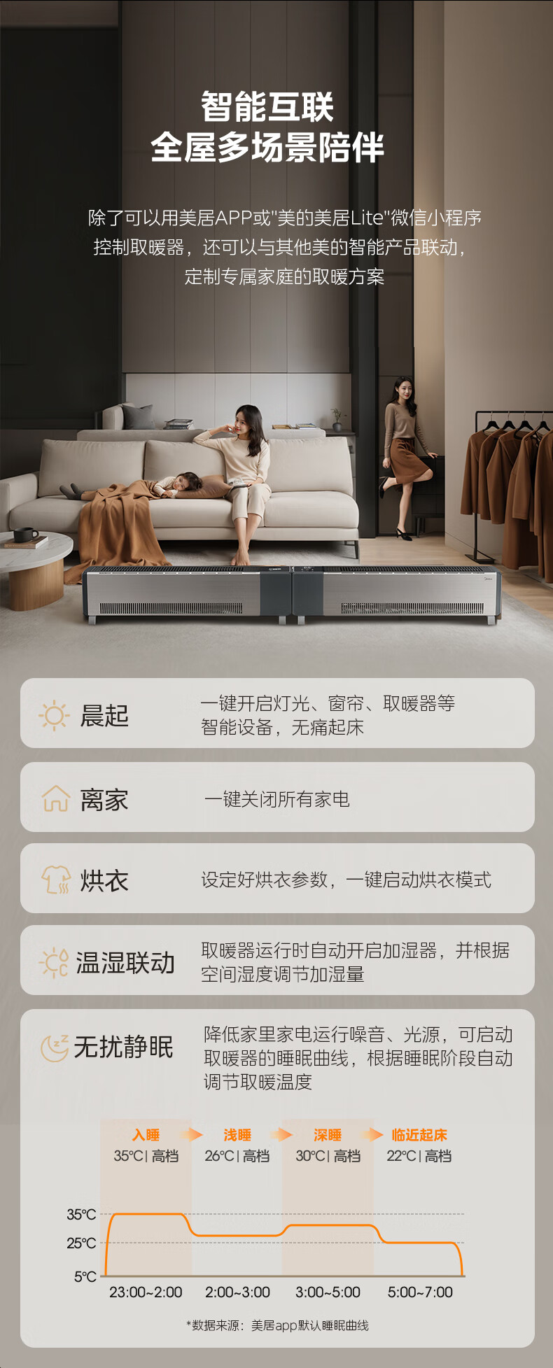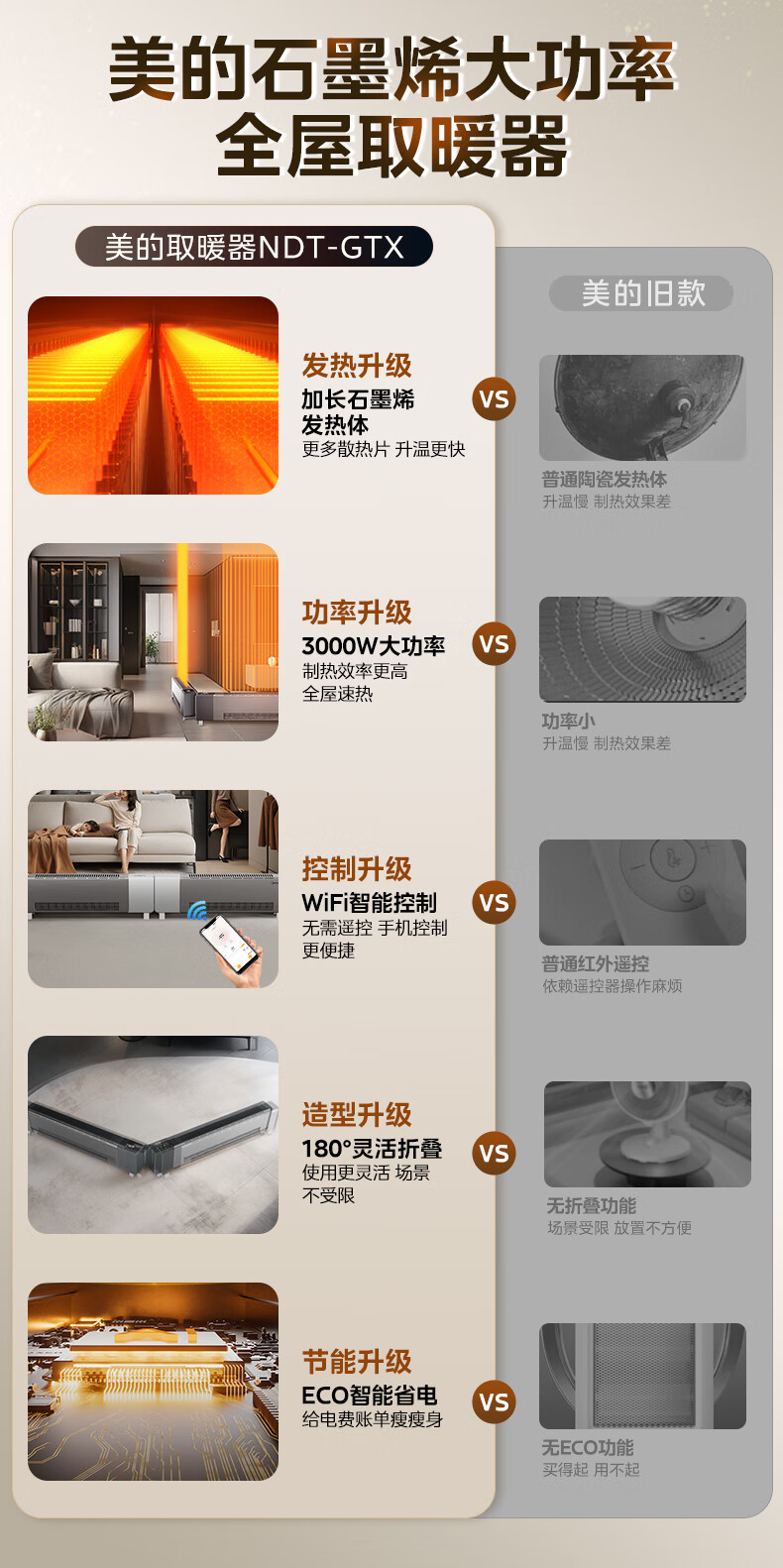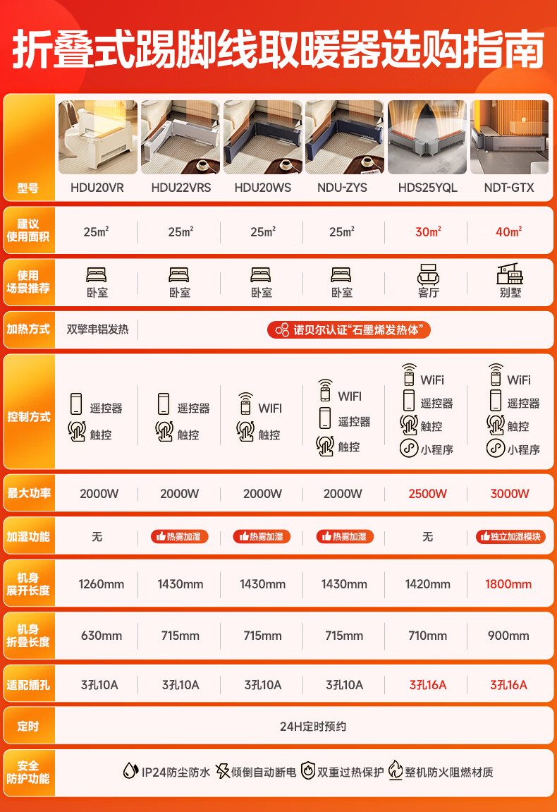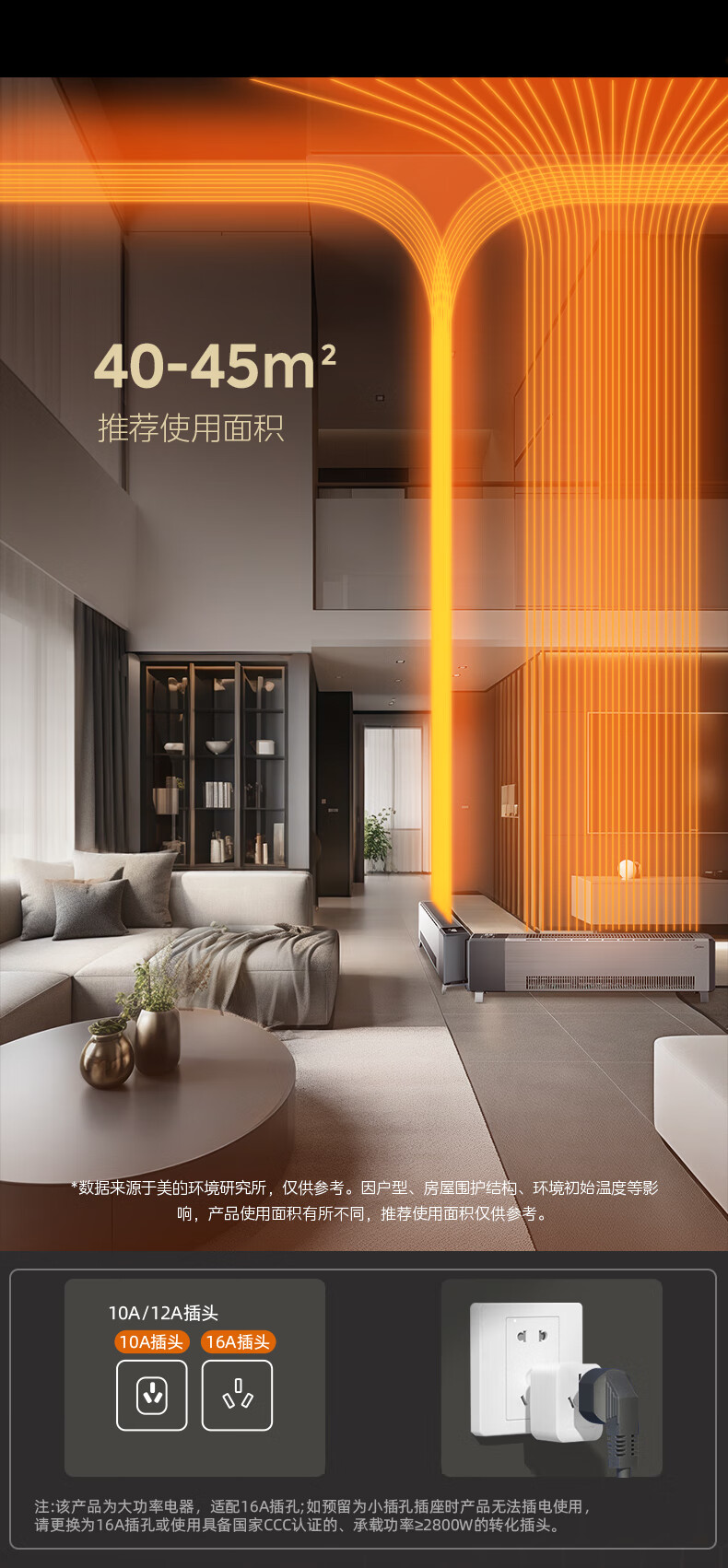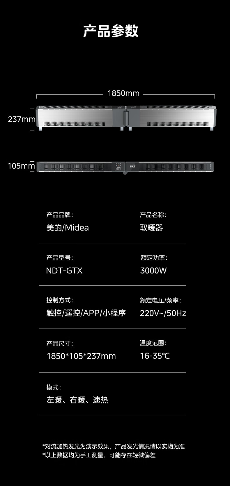 美的(Midea)石墨烯踢脚线取暖器 全屋升温大面积50平方速热3000W大功率家用电热电暖气电暖器烤火炉 NDT-GTX