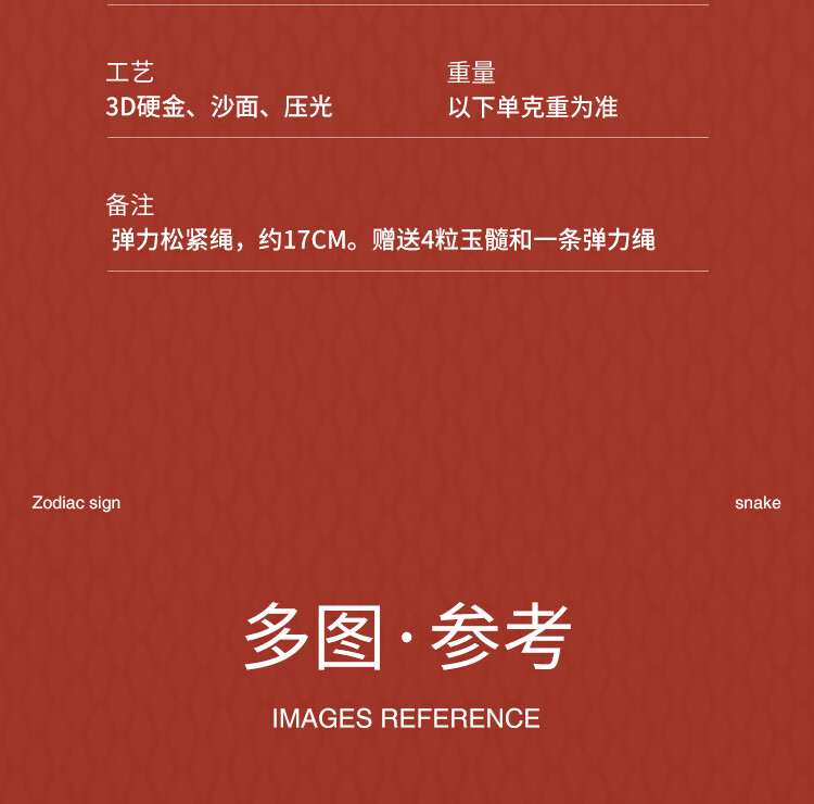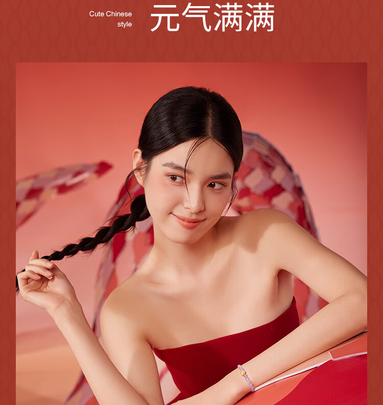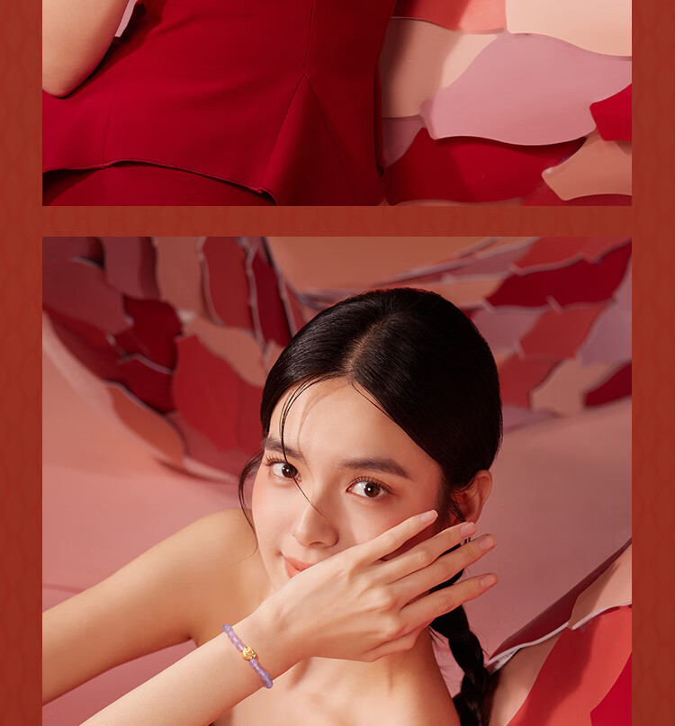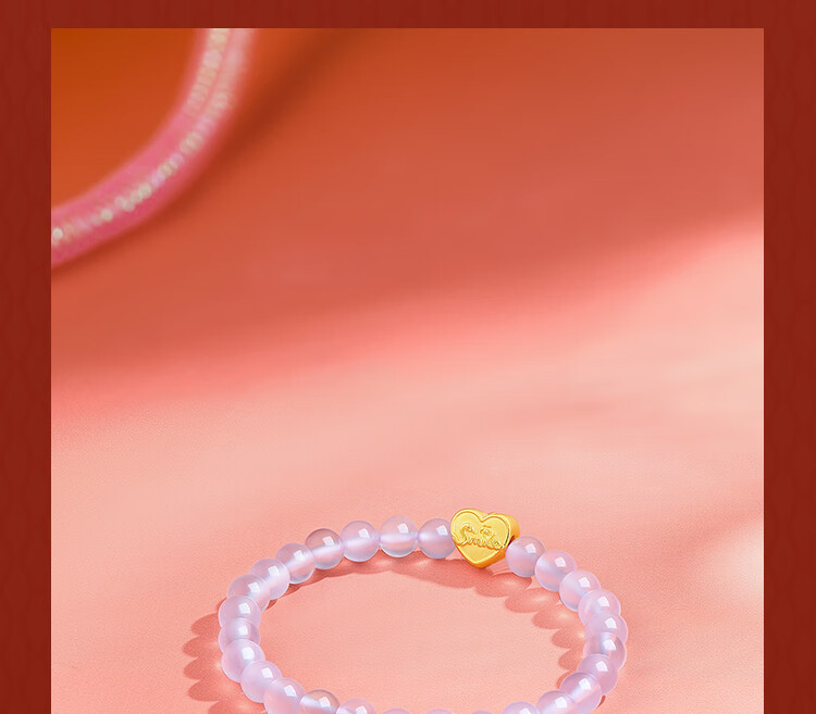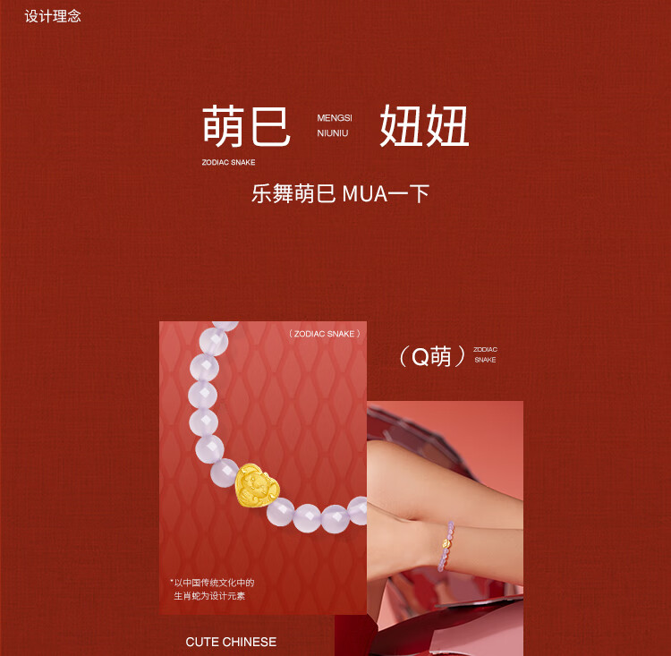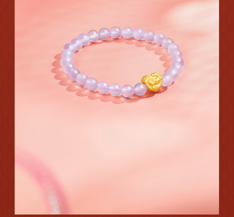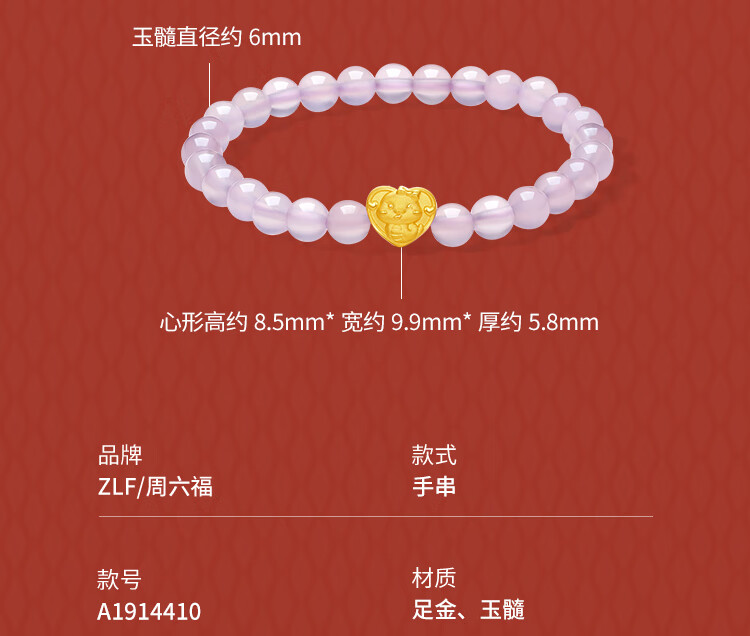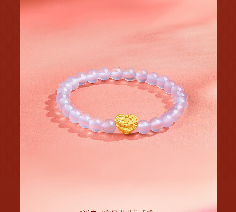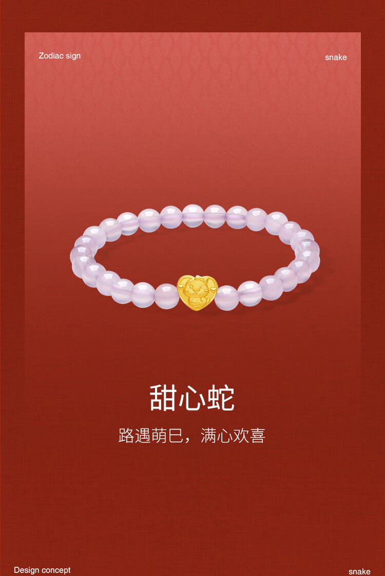 周六福新年礼物 黄金转运珠女款3D硬金生肖本命年甜心蛇玉髓手串 定价T 0.76g