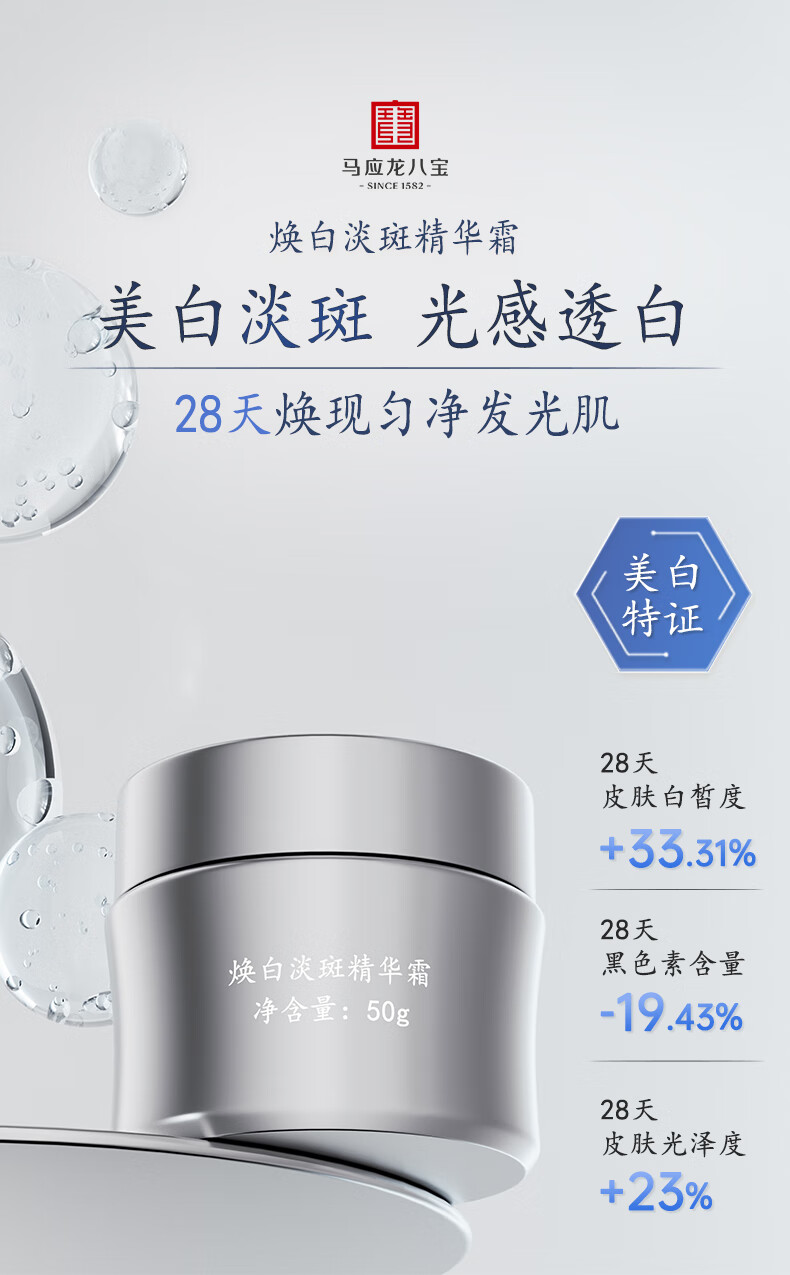 马应龙八宝焕白淡斑精华霜50g提亮肤色补水保湿美白淡斑新年礼物