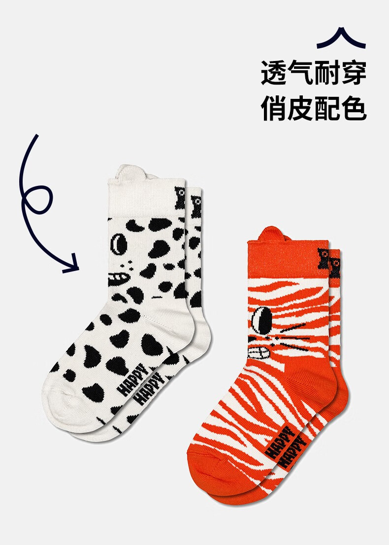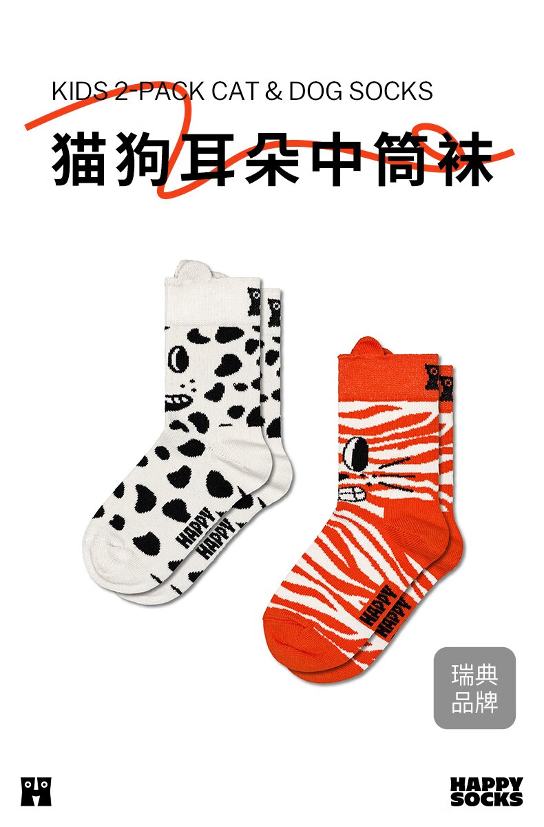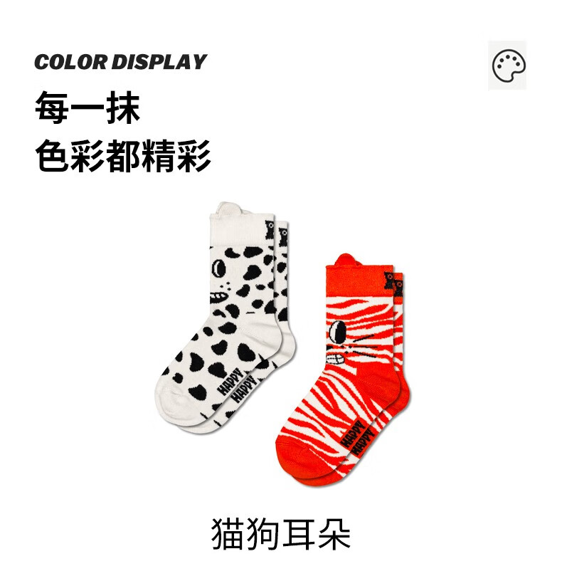 Happy Socks秋冬款童袜多巴胺立体短袜中筒袜2双装 猫狗耳朵 均码 7-9Y