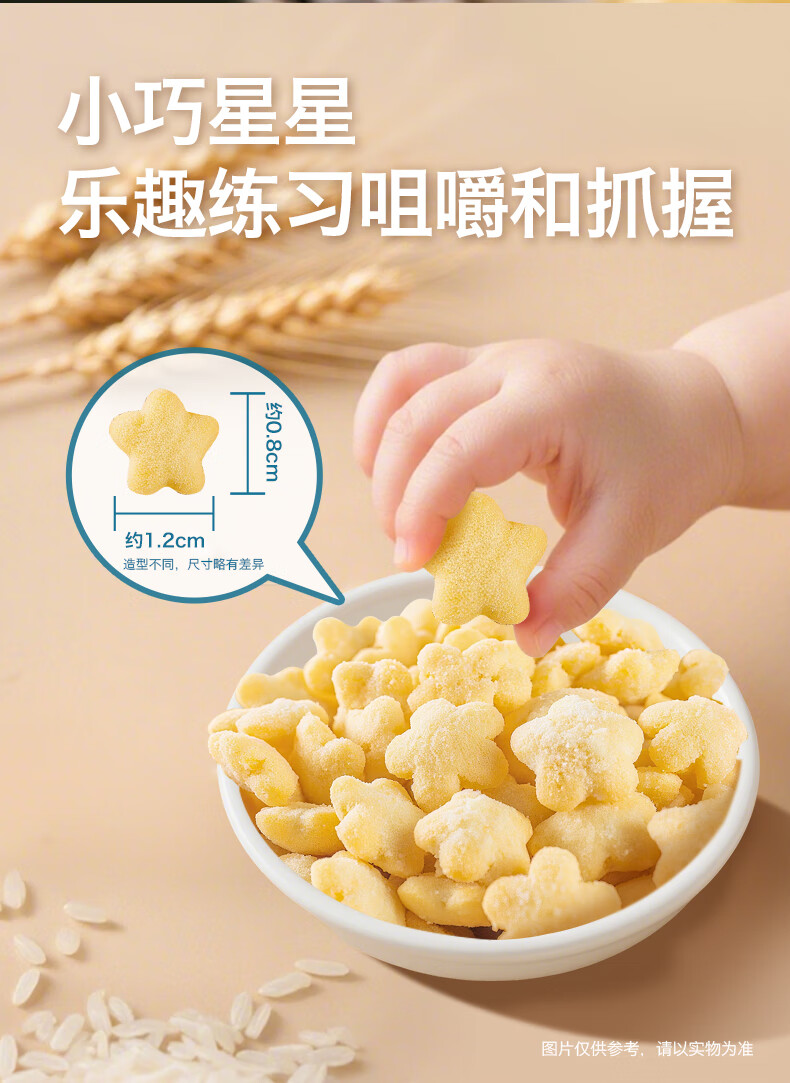 禾泱泱婴幼儿稻鸭原生星星泡芙原味16g高钙高蛋白宝宝零食小巧易抓