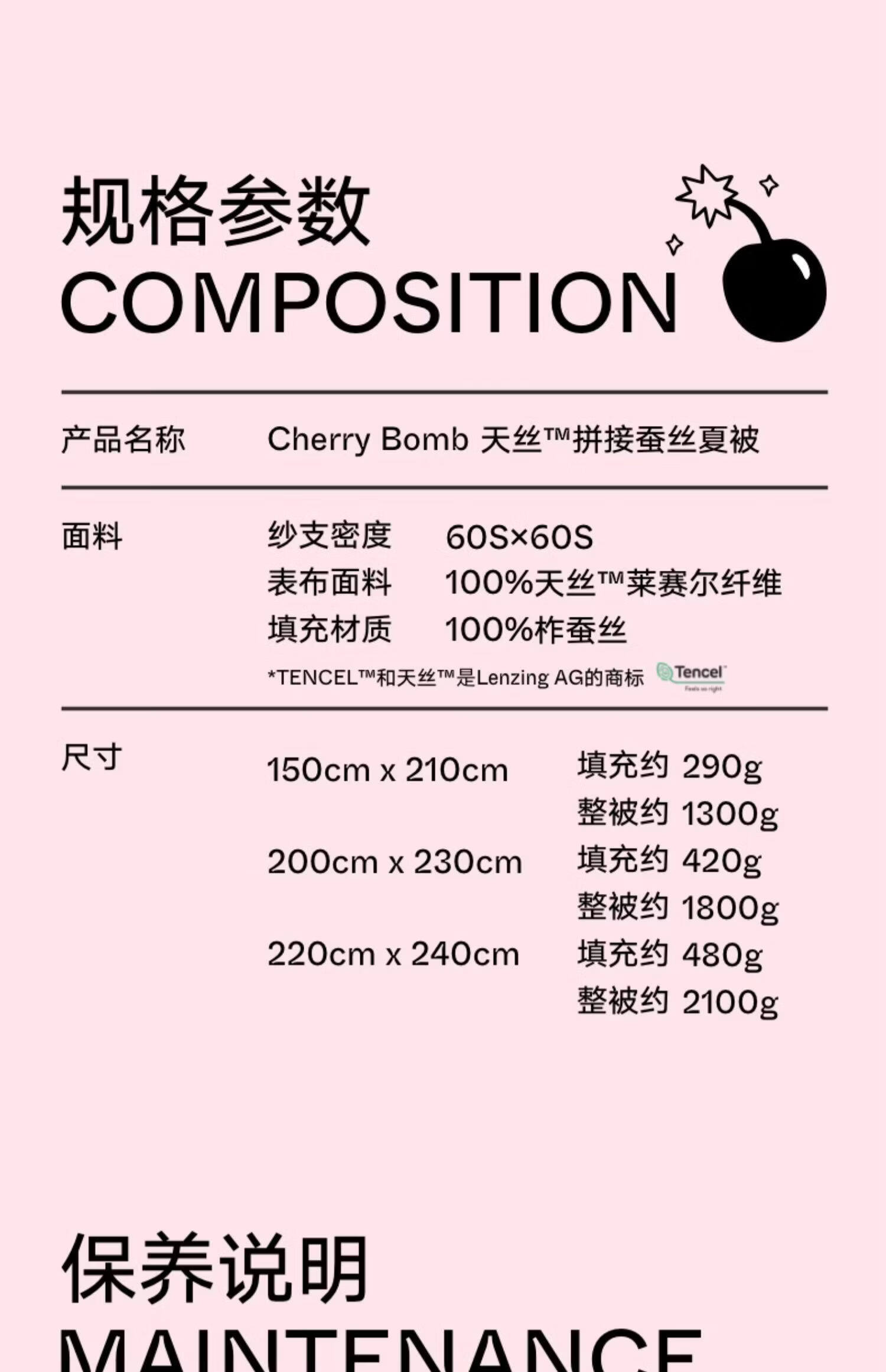野兽派家居(tbh)蚕丝被樱桃天丝拼接被子可机洗空调被凉感夏被 天丝拼接蚕丝夏被 酒渍樱桃 220cm*240cm