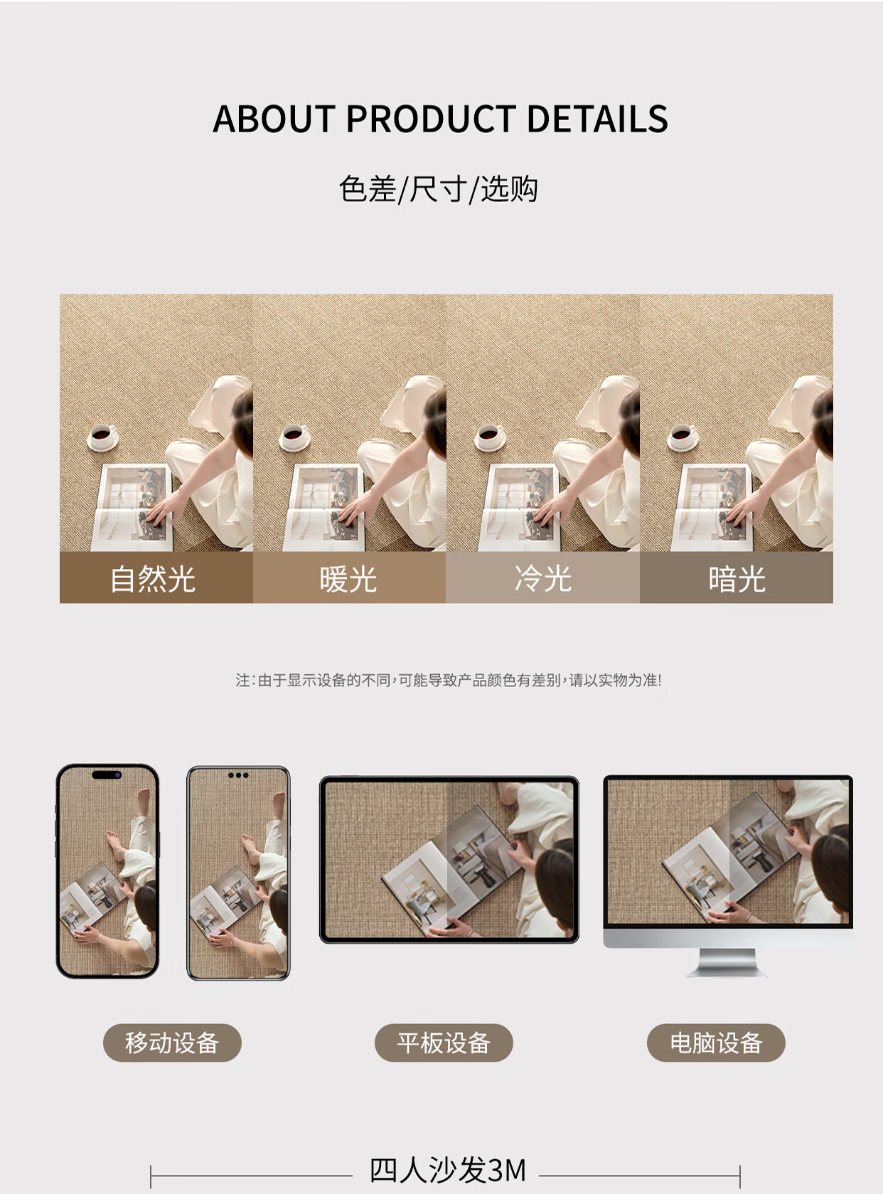 著忆地毯客厅2026新款简约现代轻奢高级大面积全铺沙发奶油风卧室地垫 S波斯绒-烟云 定制尺寸【联系客服】