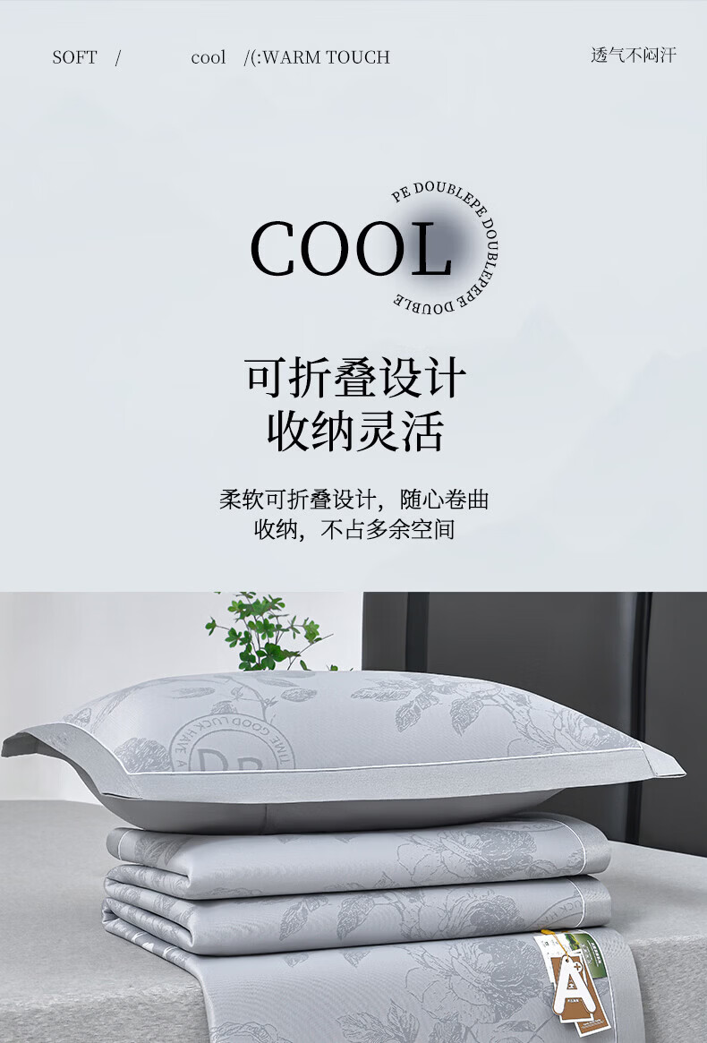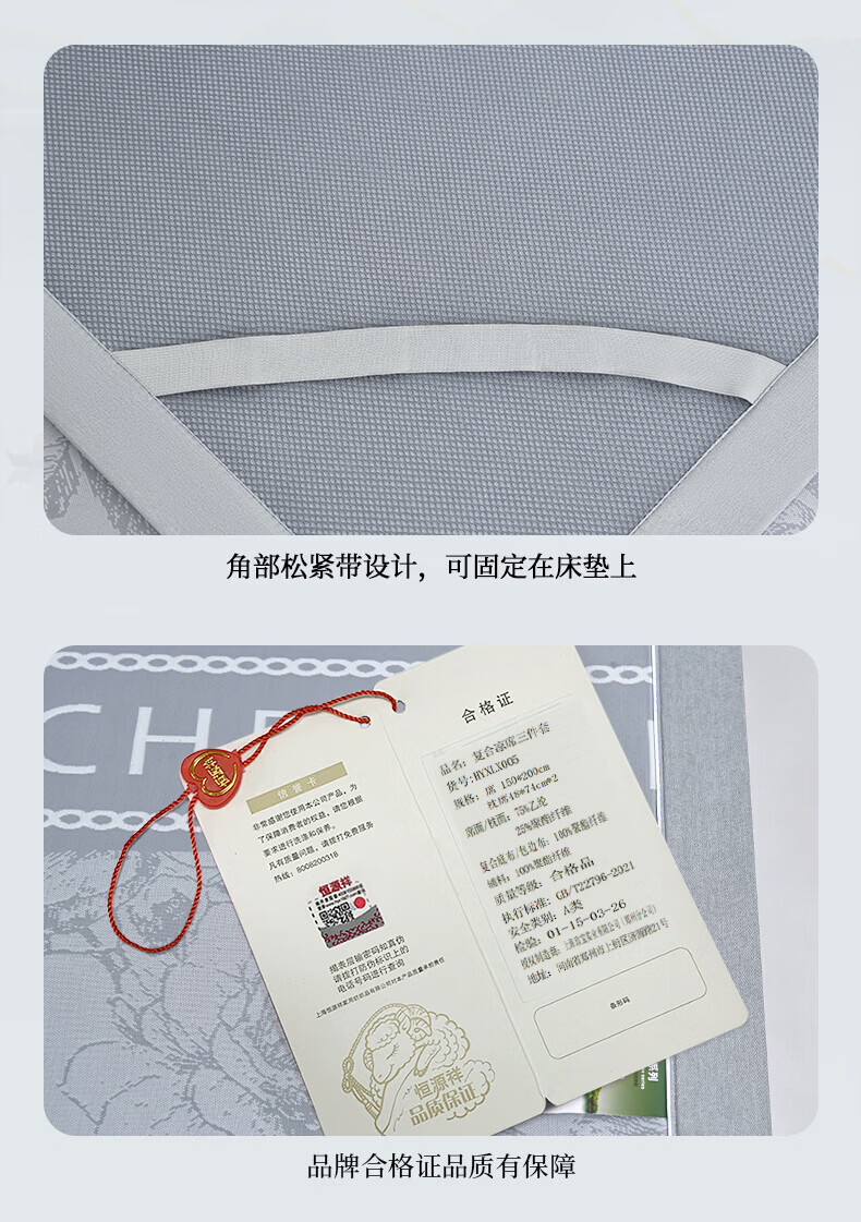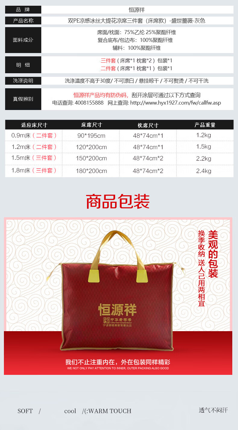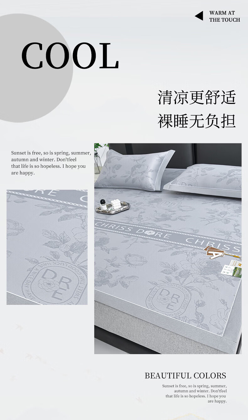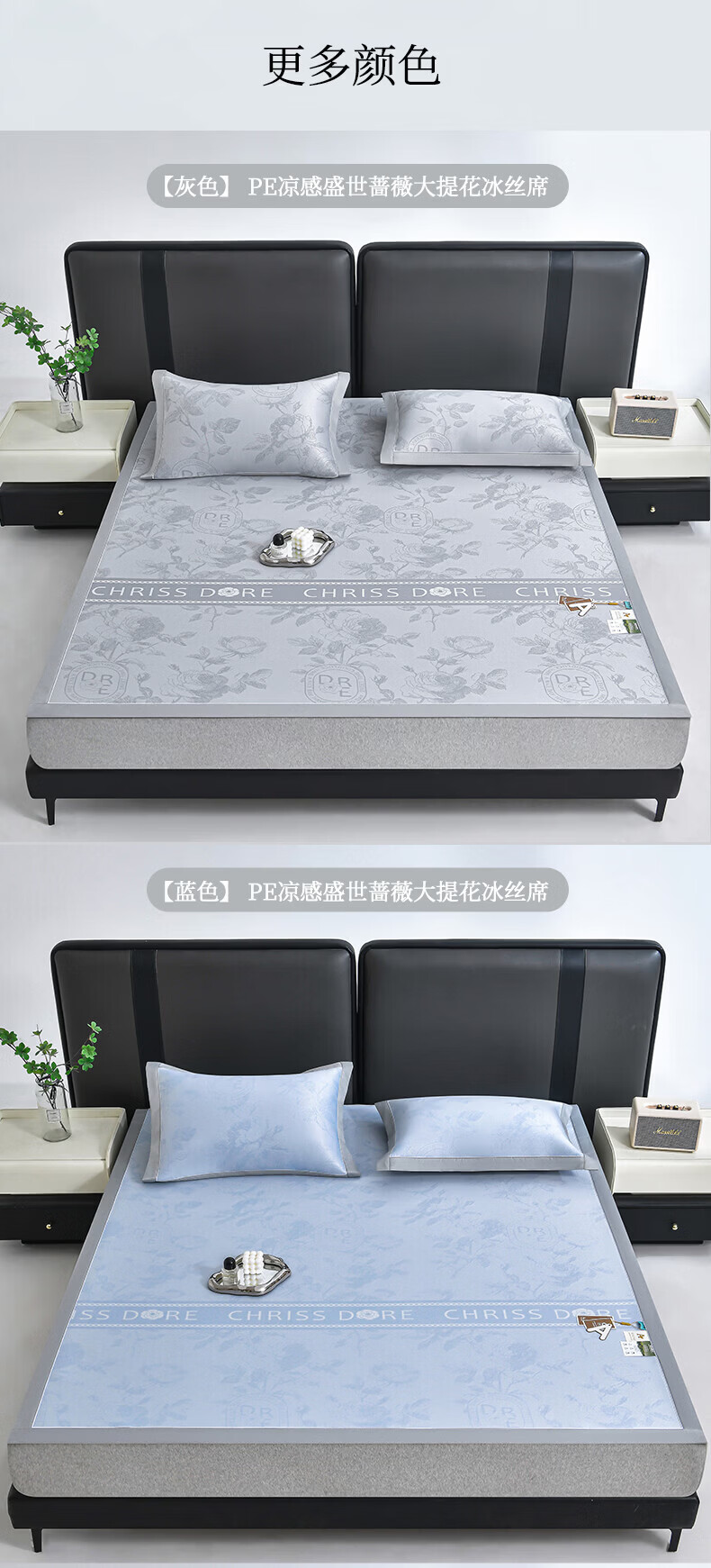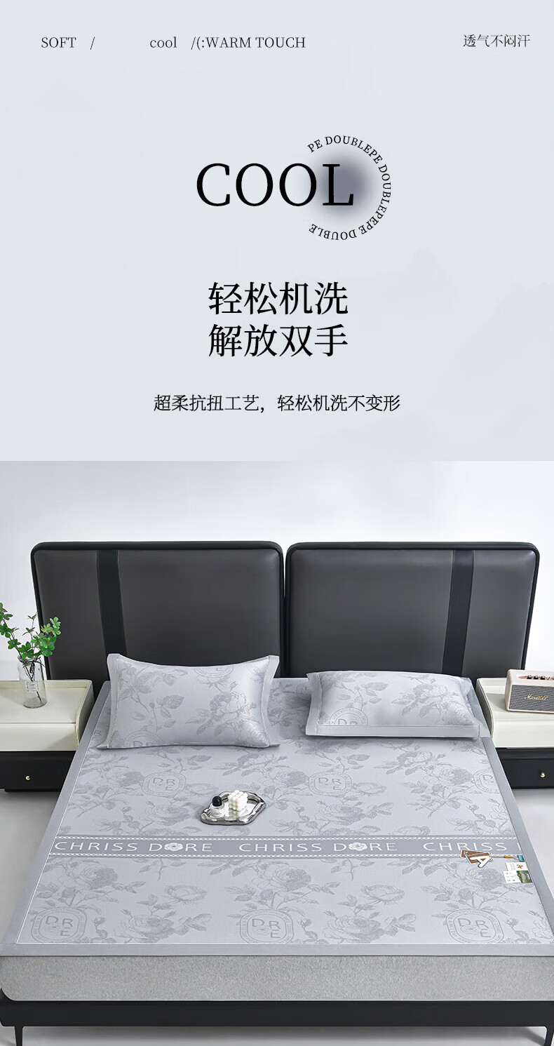 恒源祥冰丝凉席 A类夏季凉感可机洗刺绣学生宿舍单双人丝滑裸感凉席 香槟色【床笠款】 三件套180cm*200cm【一席二枕套】