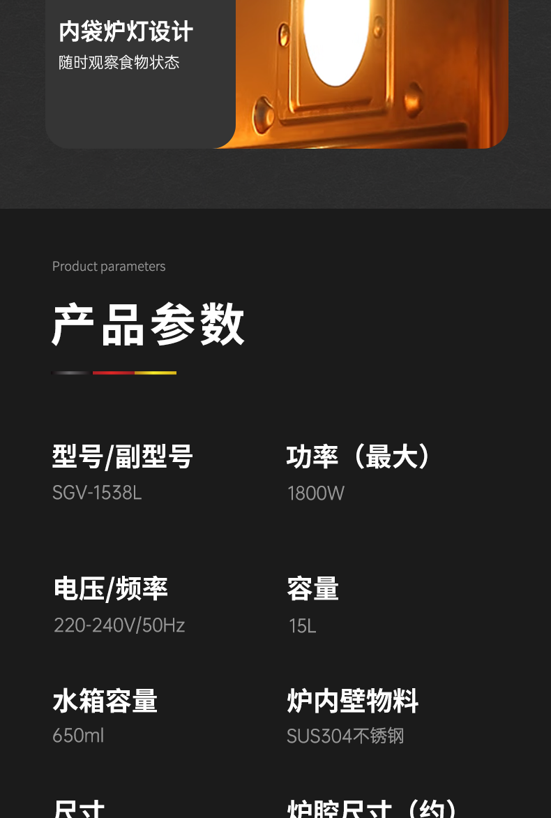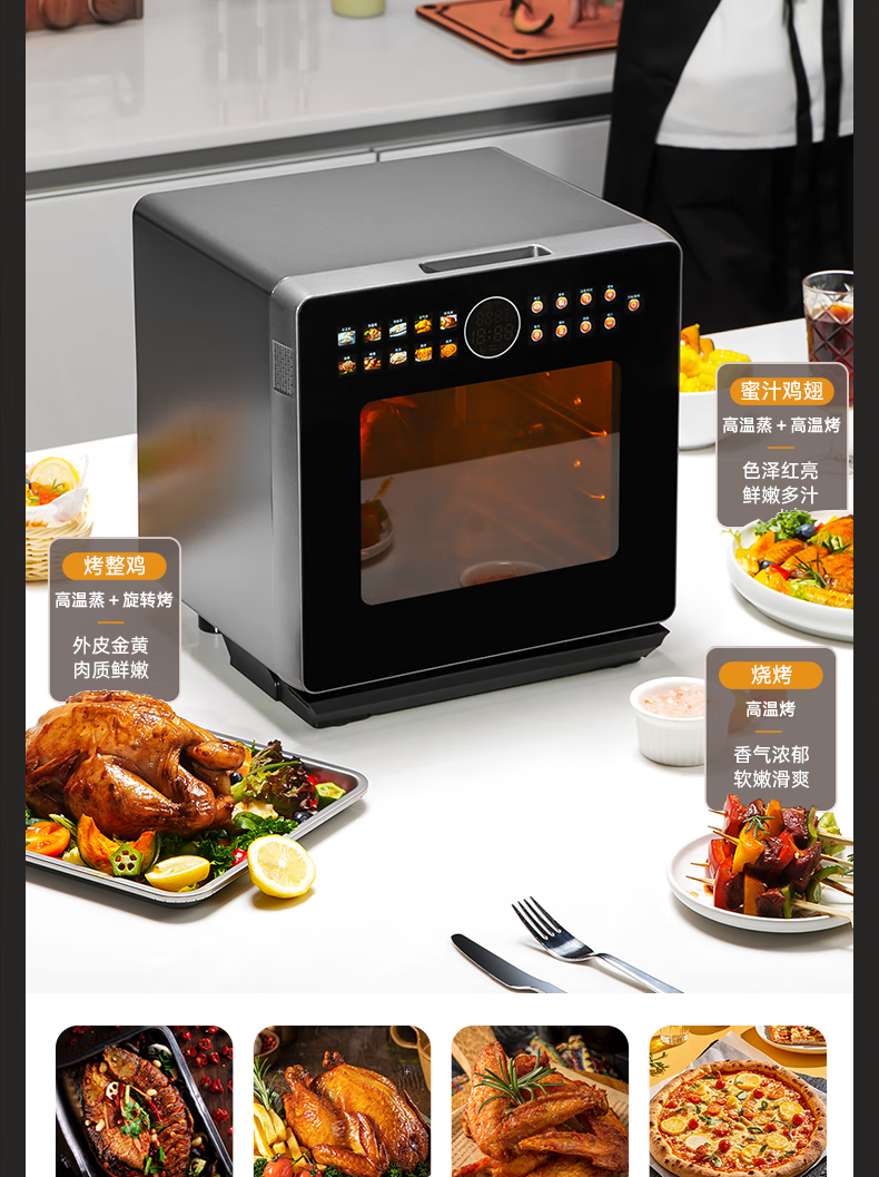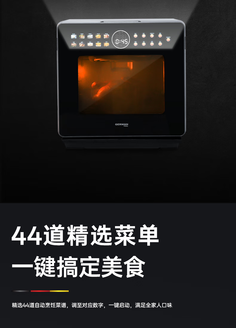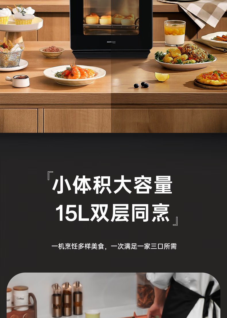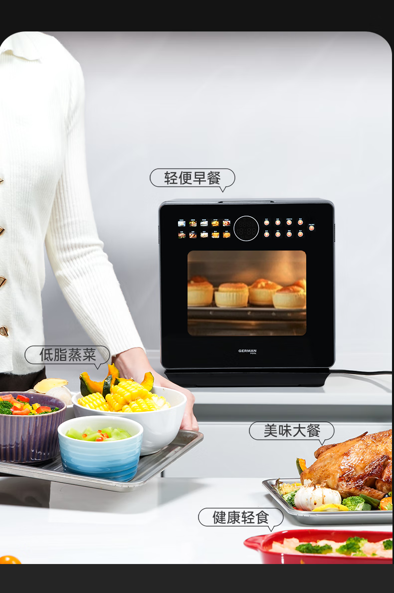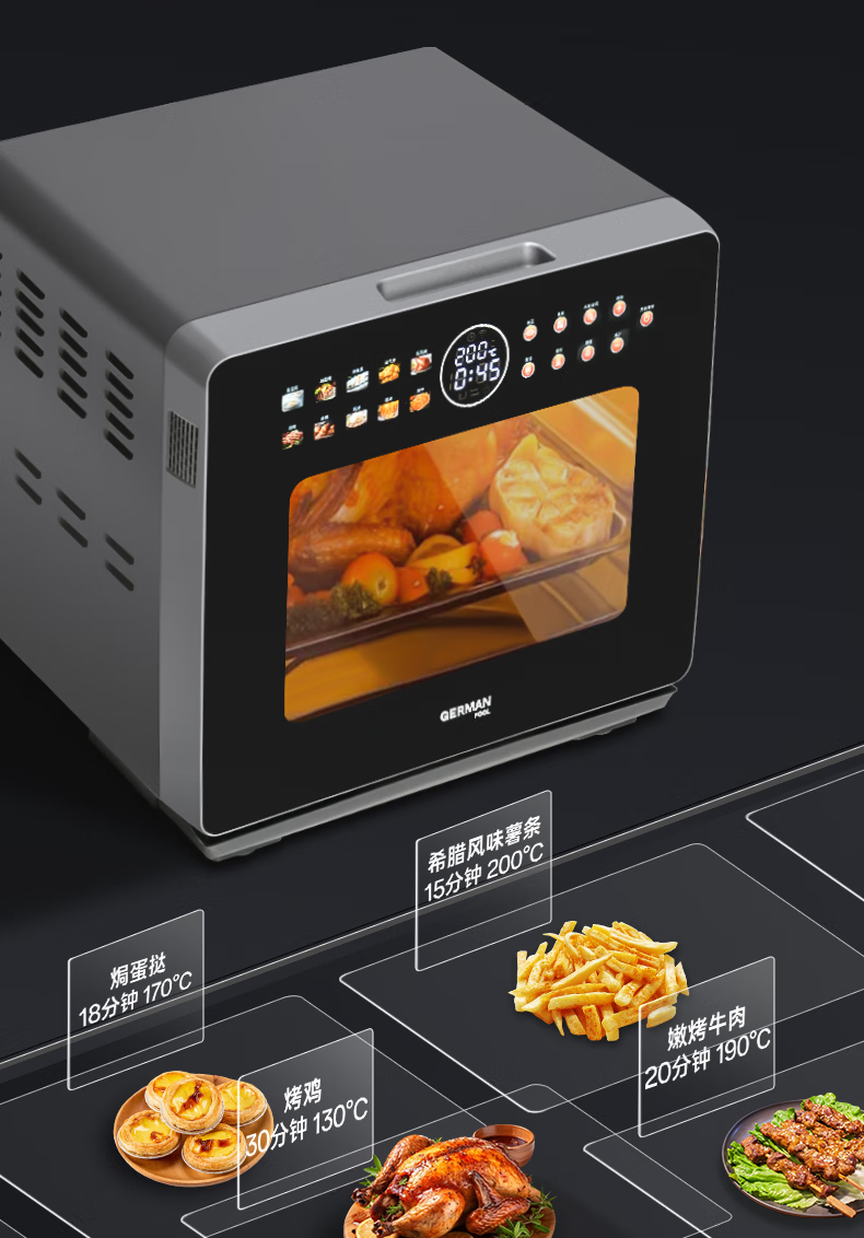 德国宝(German Pool)免翻面空气炸锅 15L专业蒸烤一体蒸烤箱 家用气炸电烤箱 多功能蒸烤焗炉 带旋转烤笼叉 SGV-1538L 蒸烤空气炸 15L