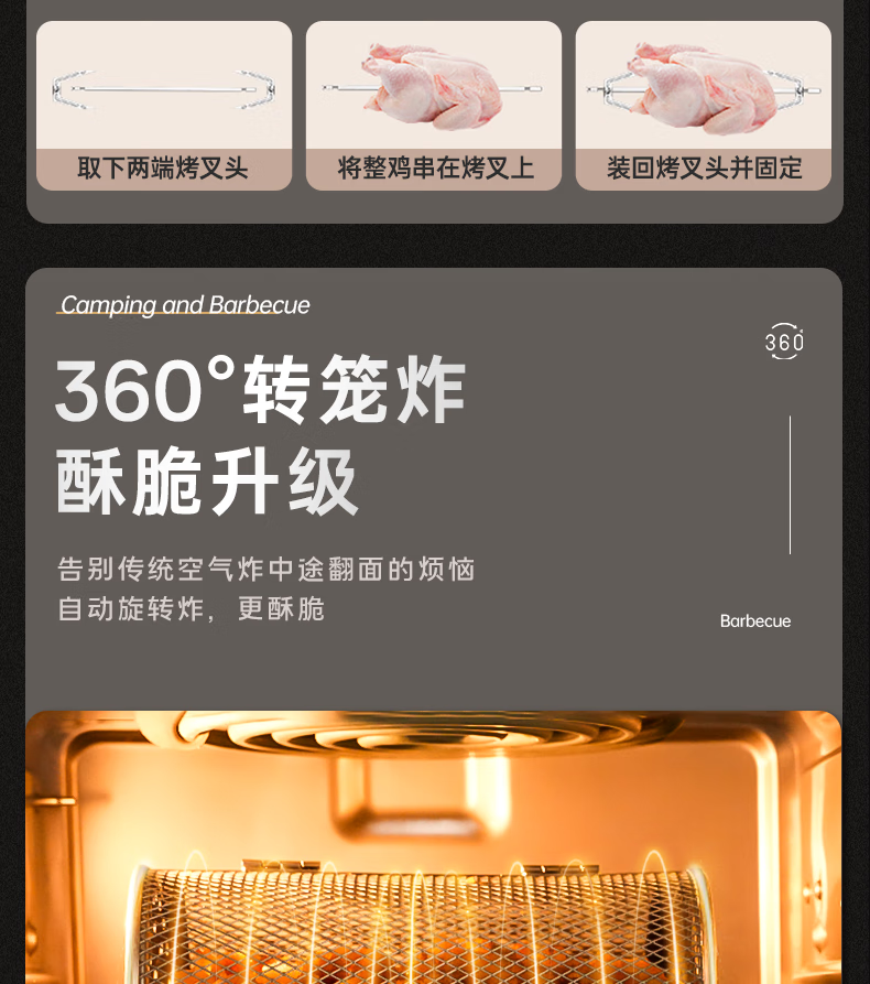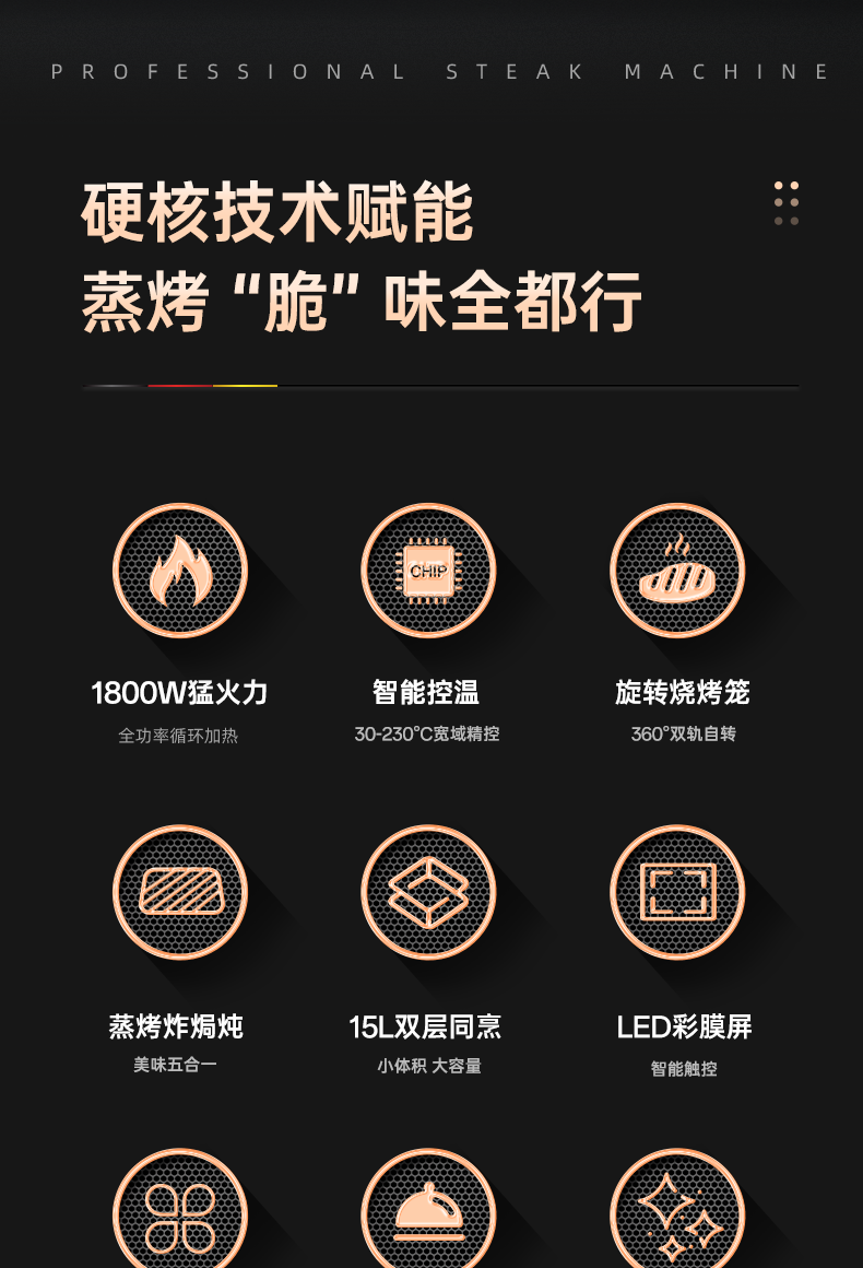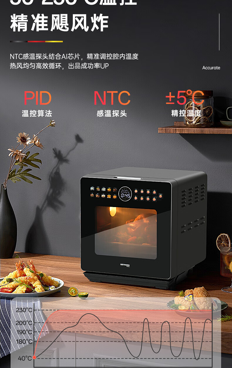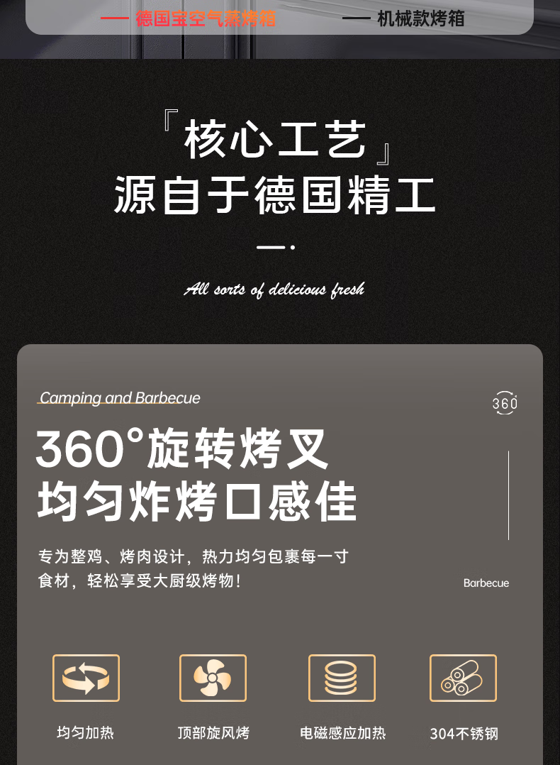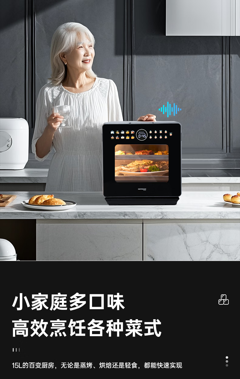 德国宝(German Pool)免翻面空气炸锅 15L专业蒸烤一体蒸烤箱 家用气炸电烤箱 多功能蒸烤焗炉 带旋转烤笼叉 SGV-1538L 蒸烤空气炸 15L