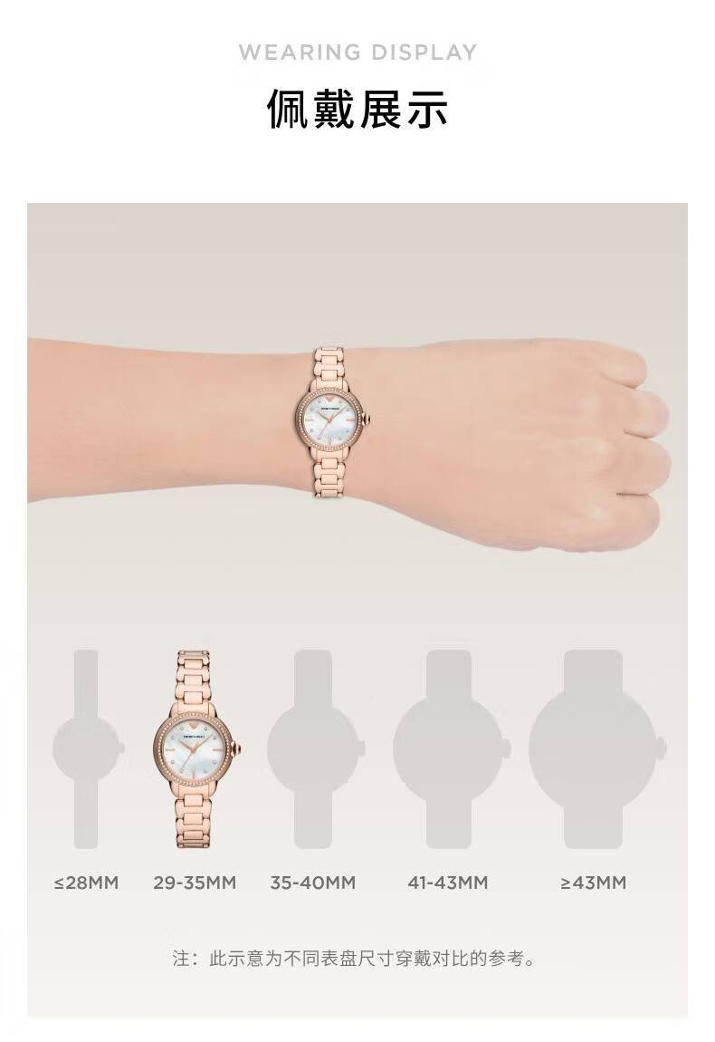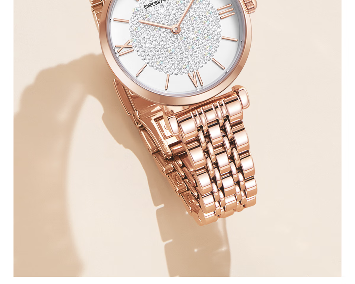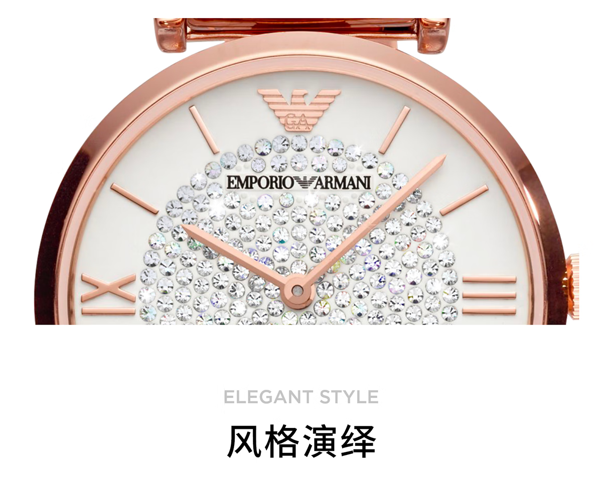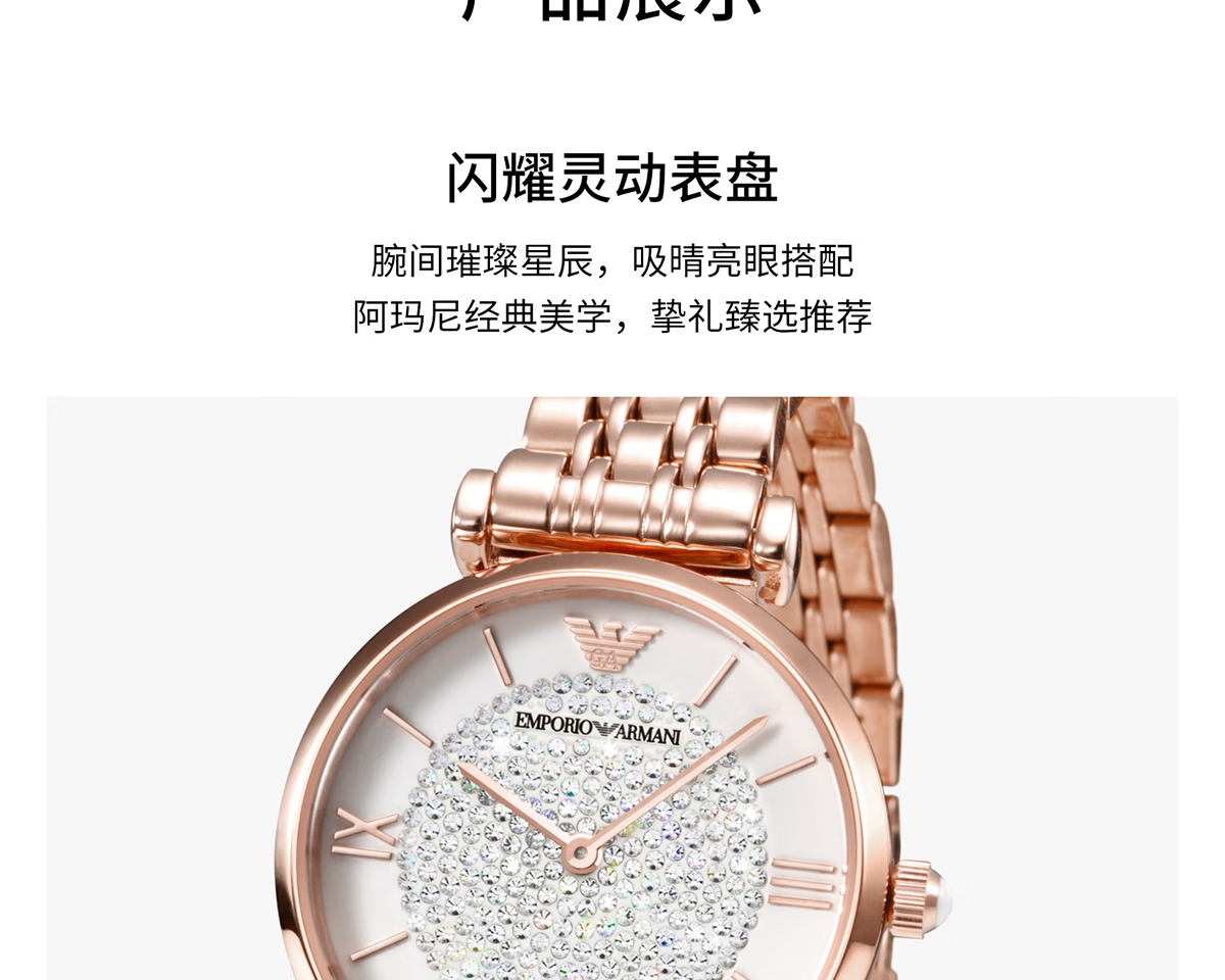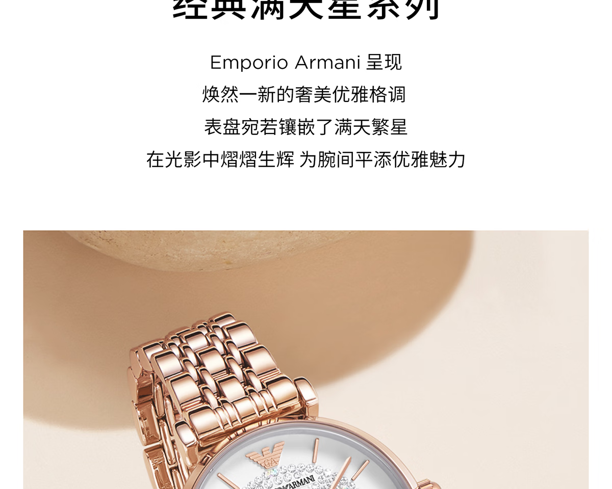 EMPORIO ARMANI手表女士满天星白月光玫瑰金镶钻石英轻奢腕表送女友情人节礼物 贝母满天星AR11701 34mm