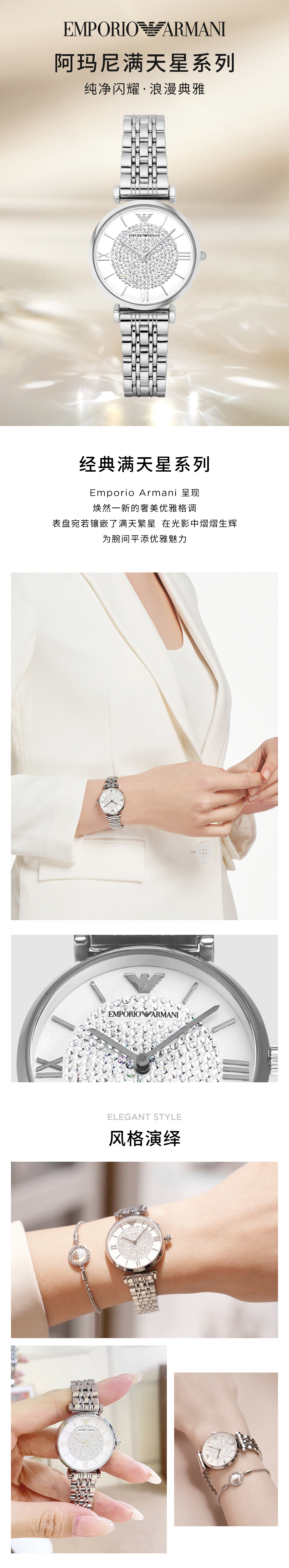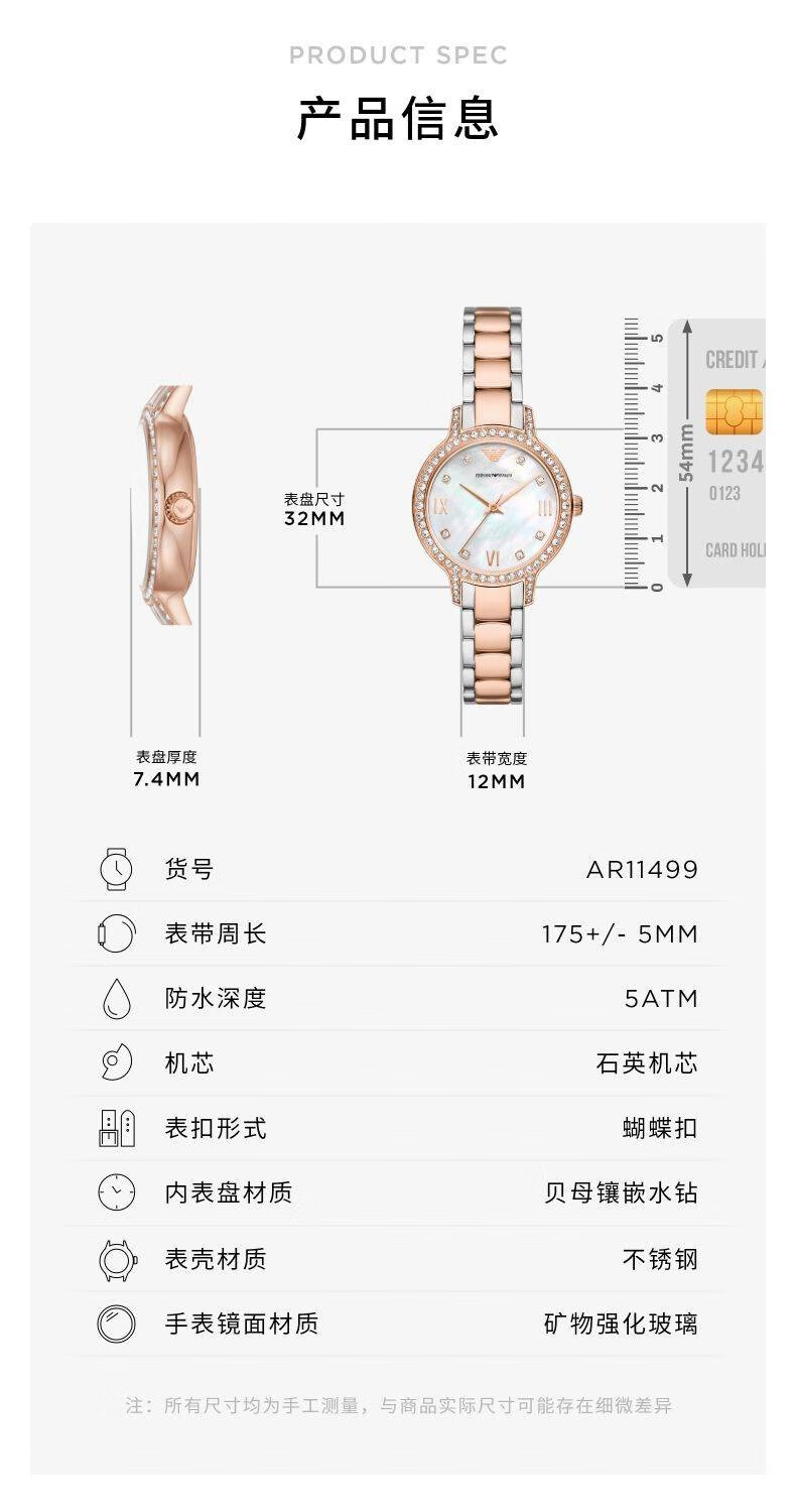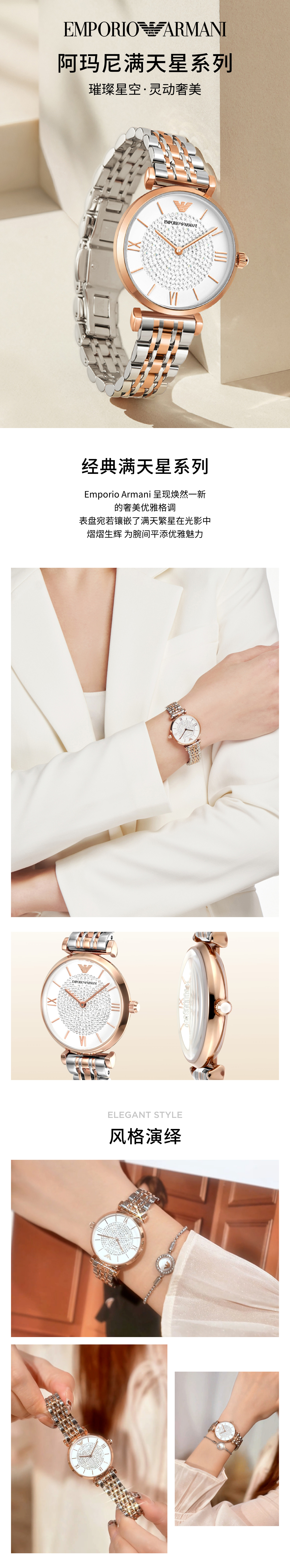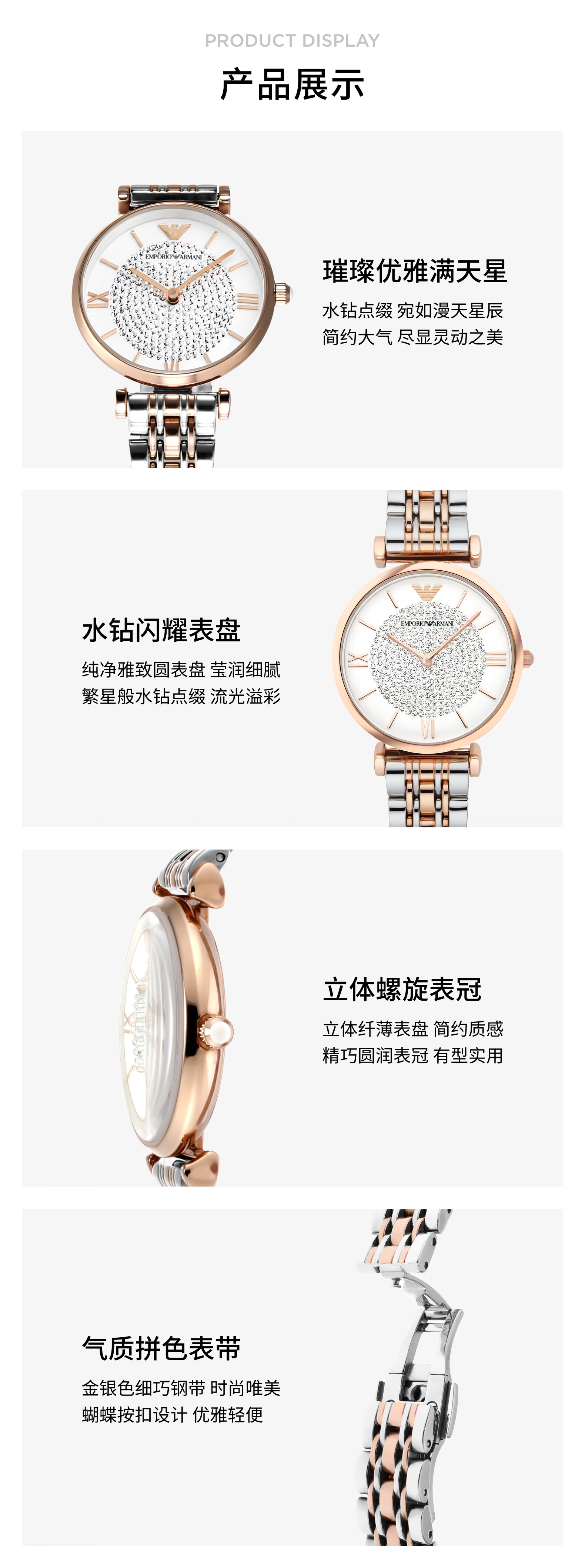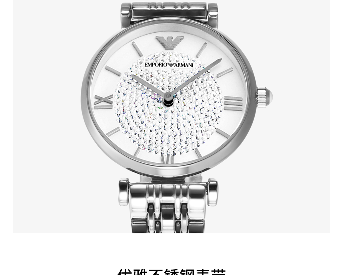 EMPORIO ARMANI手表女士满天星白月光玫瑰金镶钻石英轻奢腕表送女友情人节礼物 贝母满天星AR11701 34mm