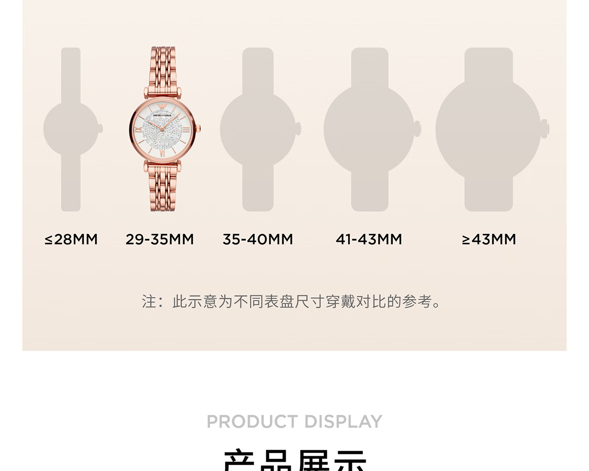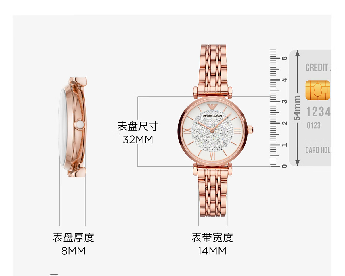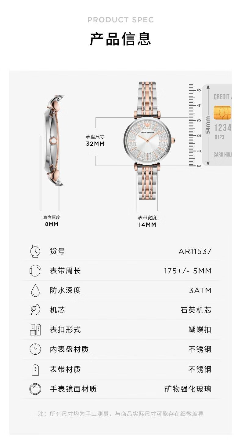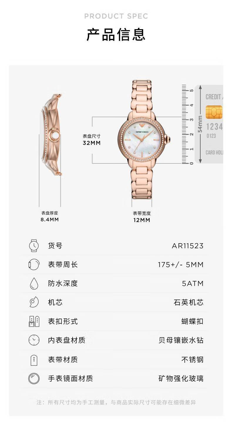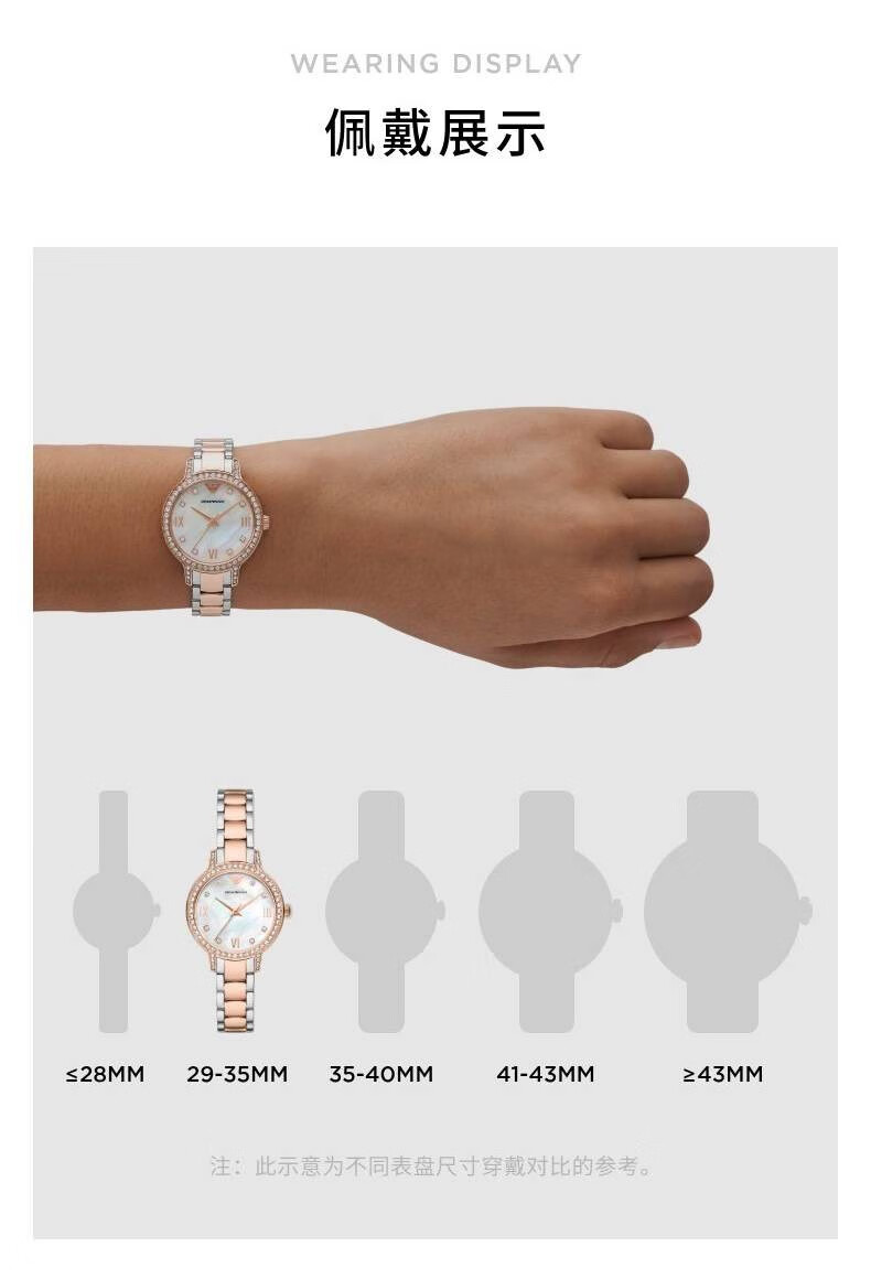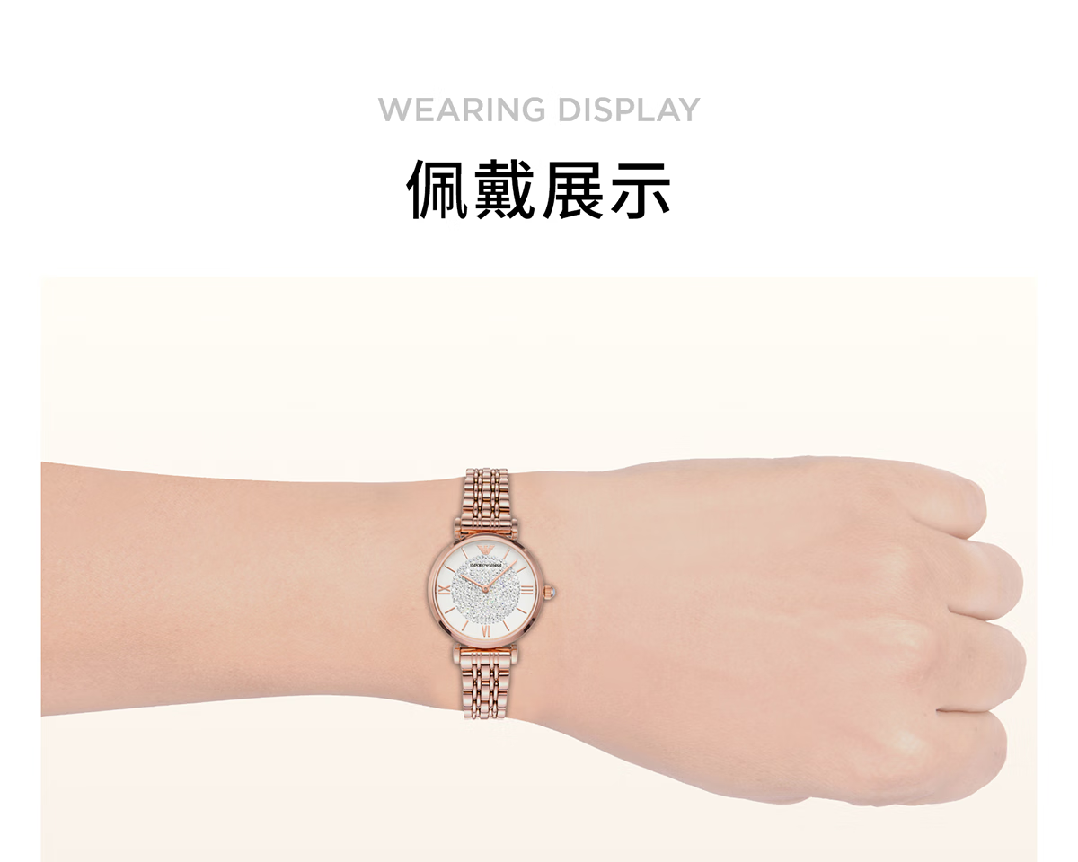 EMPORIO ARMANI手表女士满天星白月光玫瑰金镶钻石英轻奢腕表送女友情人节礼物 贝母满天星AR11701 34mm