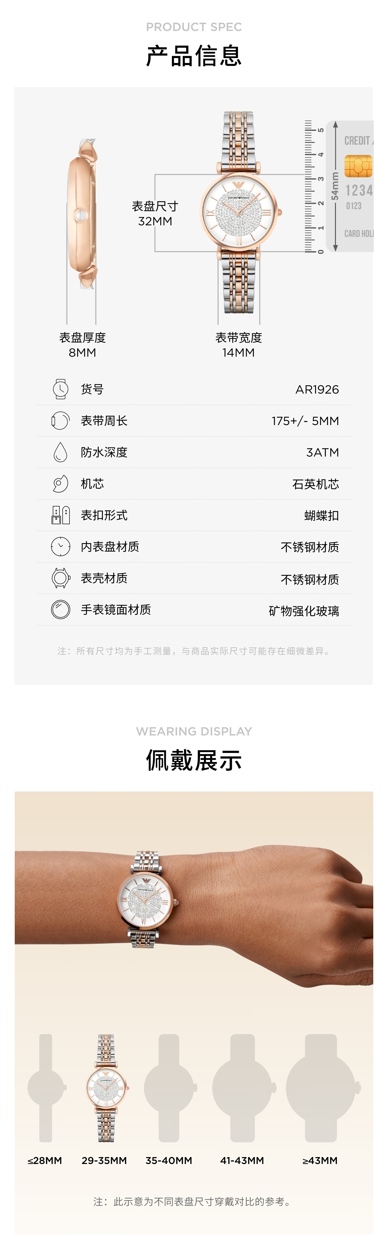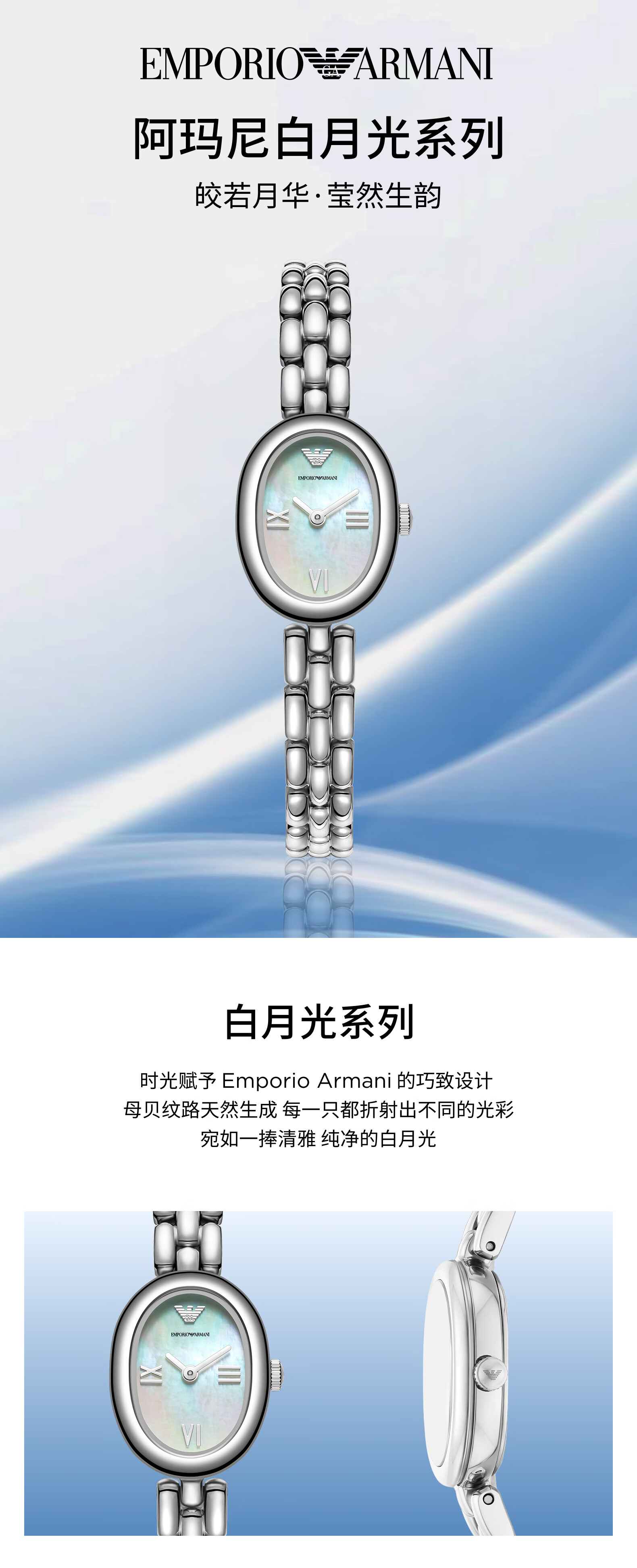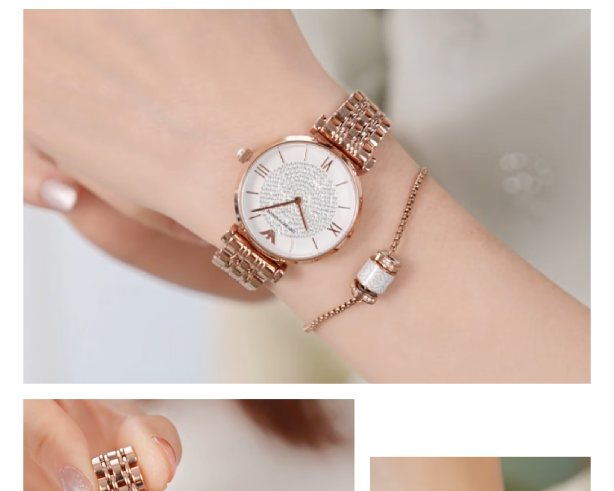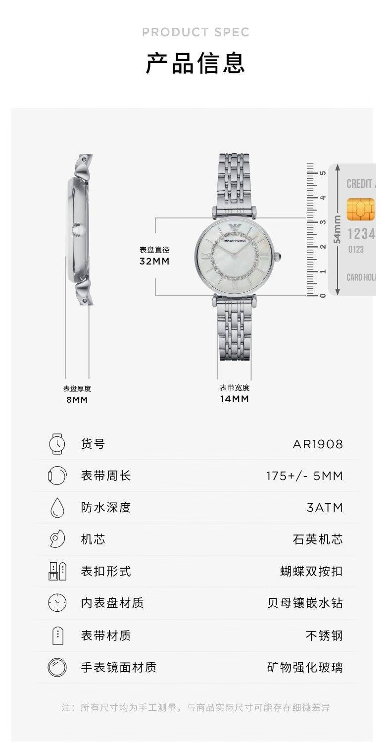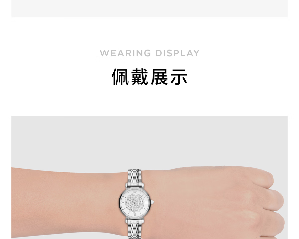 EMPORIO ARMANI手表女士满天星白月光玫瑰金镶钻石英轻奢腕表送女友情人节礼物 贝母满天星AR11701 34mm