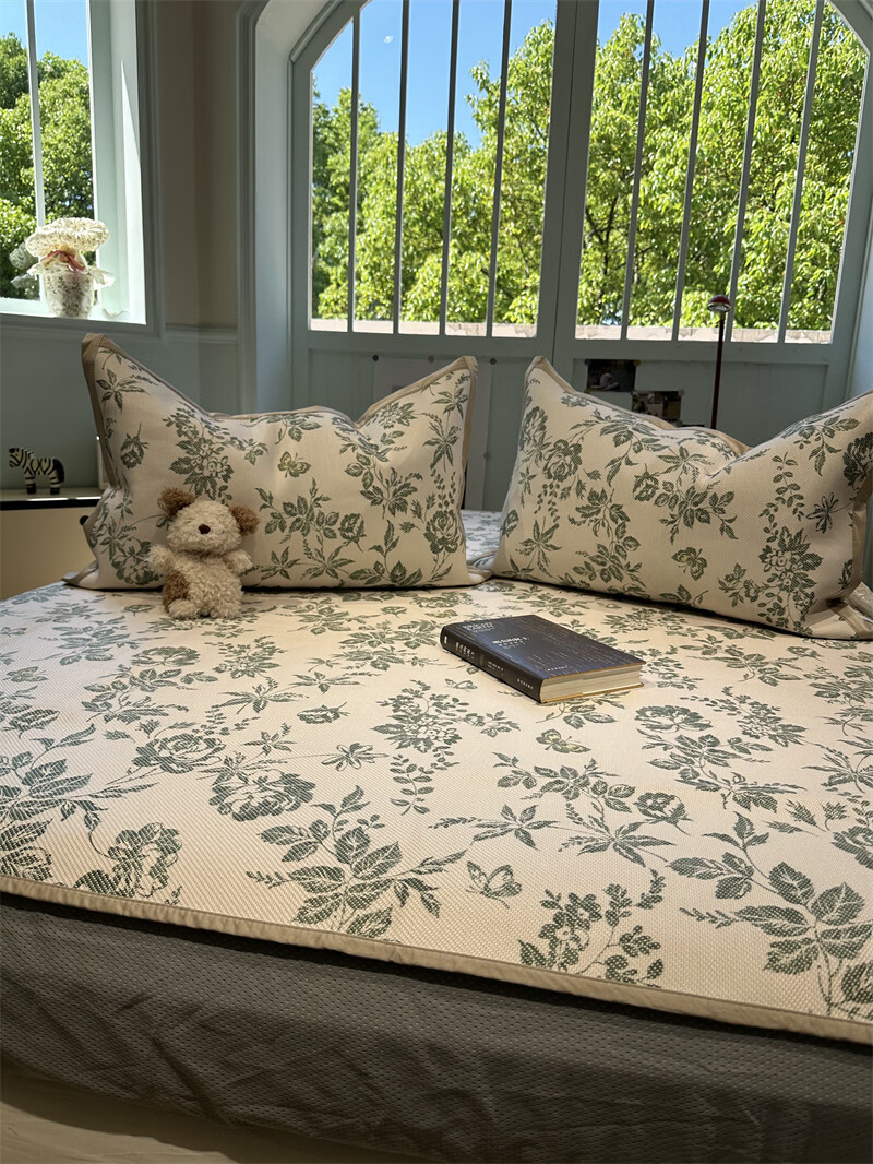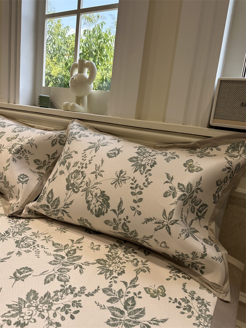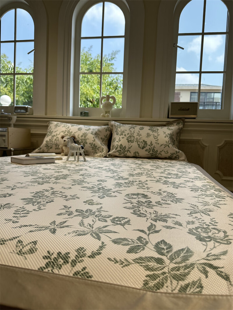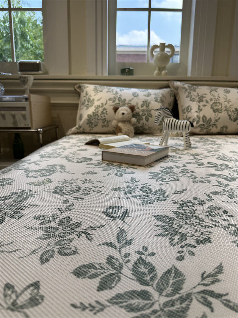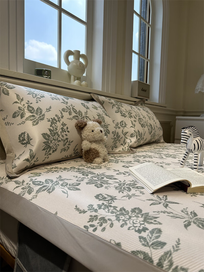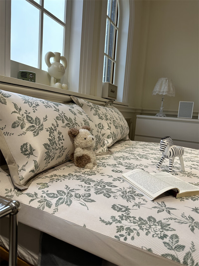 藤席天然纯藤冰法式茶歇绿色碎花可机洗夏凉席三件套空 YAG-冰藤席法式茶歇绿床笠款 1.8m(6英尺)床