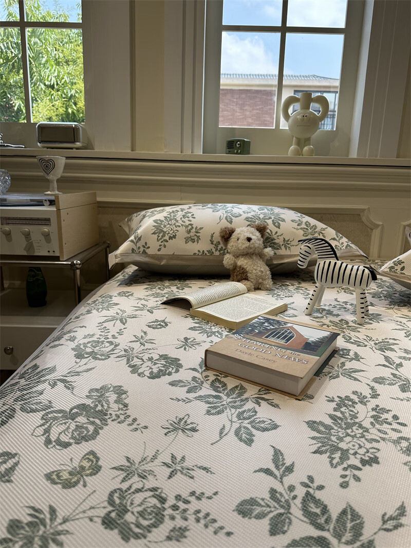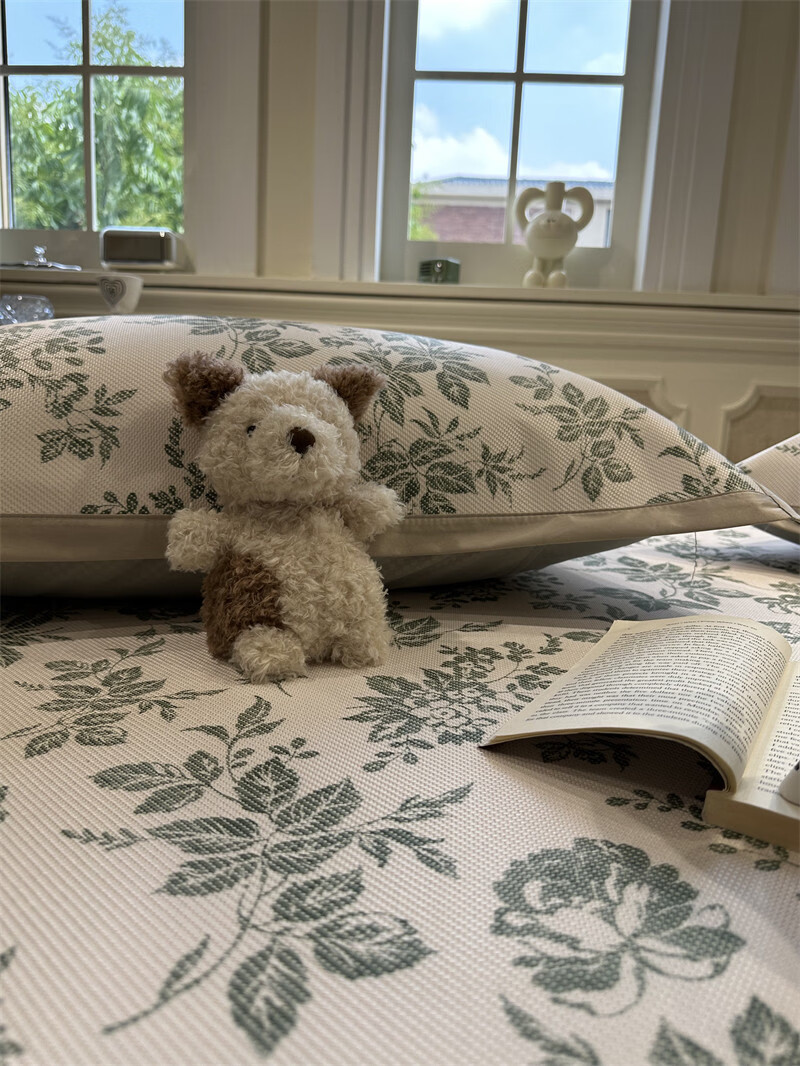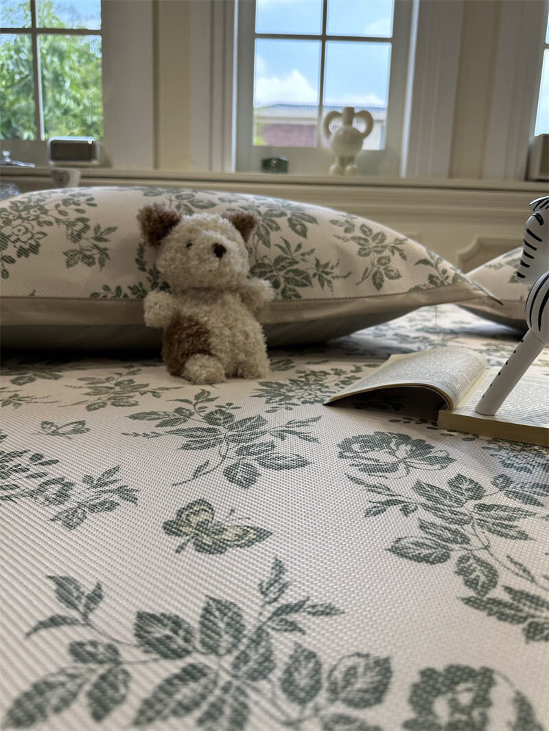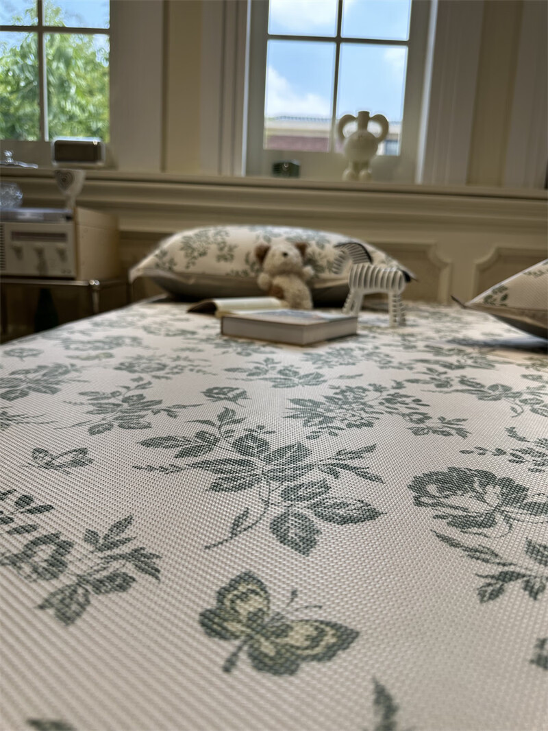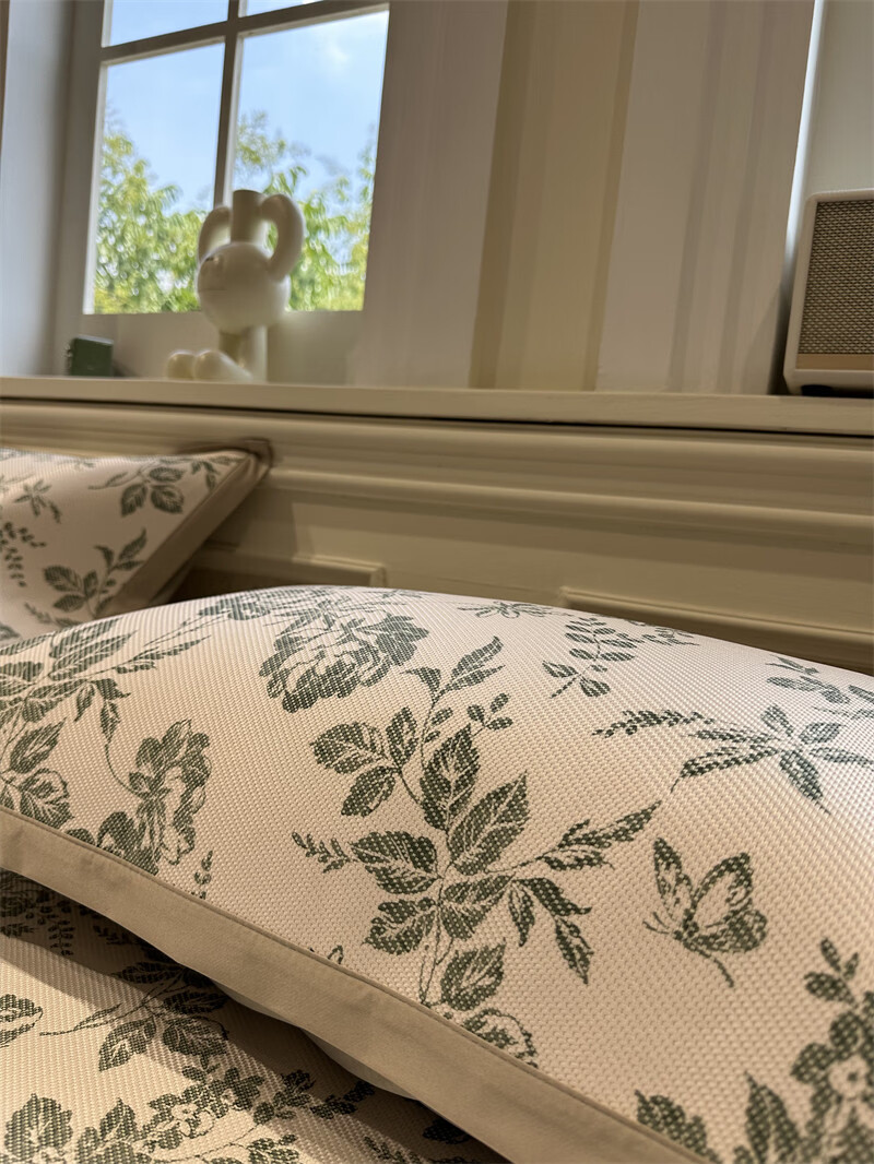 藤席天然纯藤冰法式茶歇绿色碎花可机洗夏凉席三件套空 YAG-冰藤席法式茶歇绿床笠款 1.8m(6英尺)床