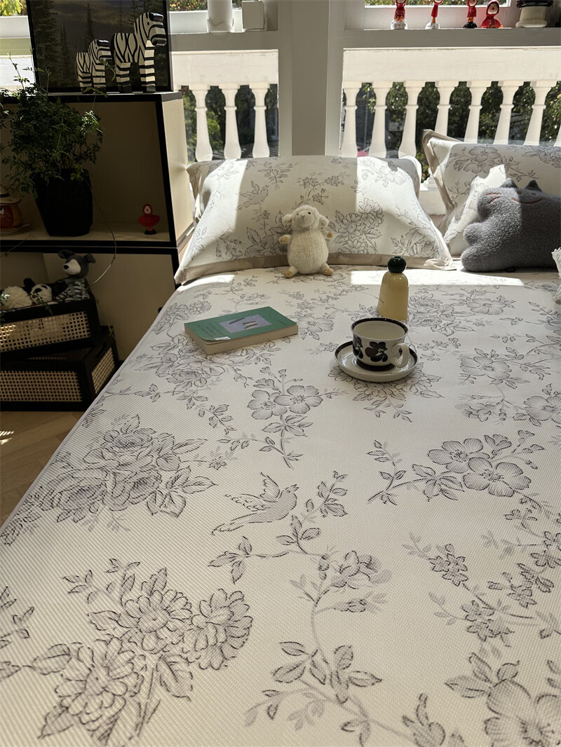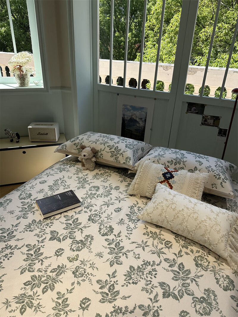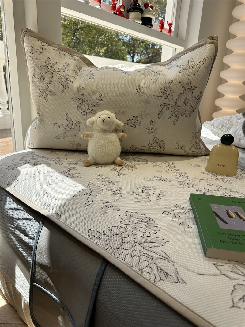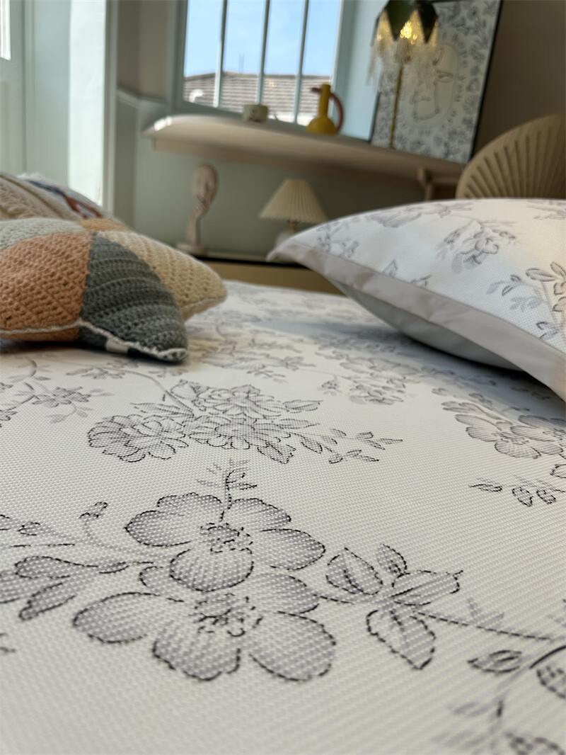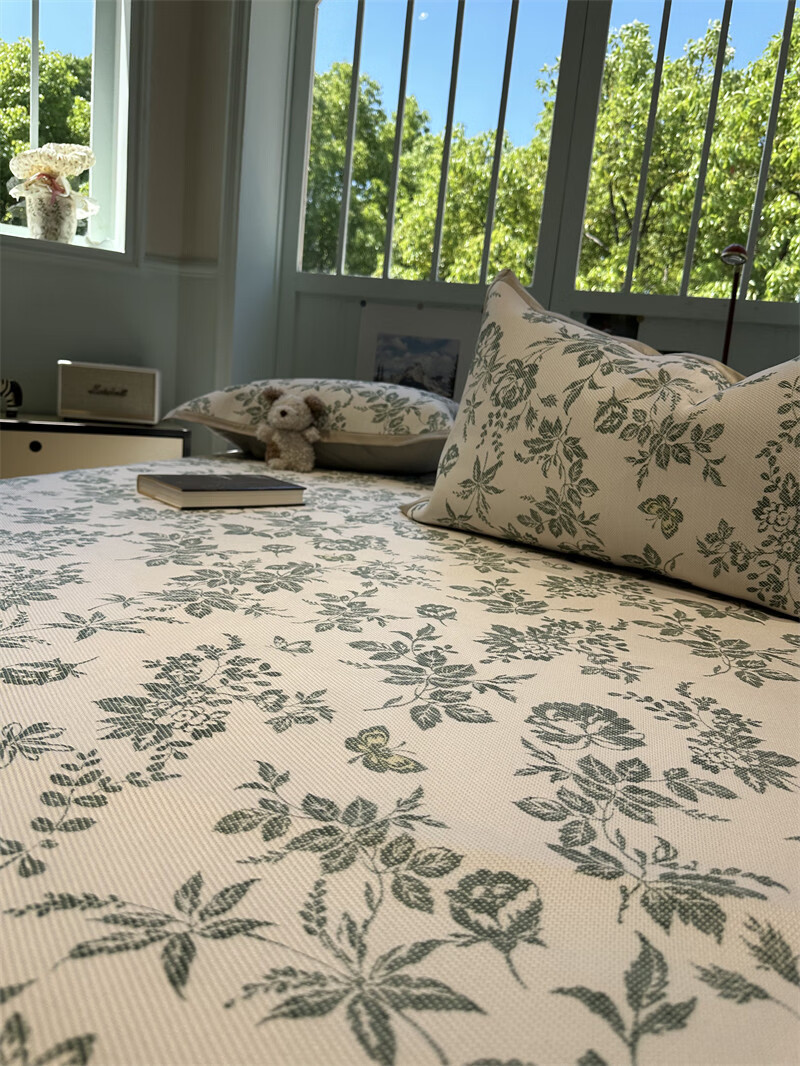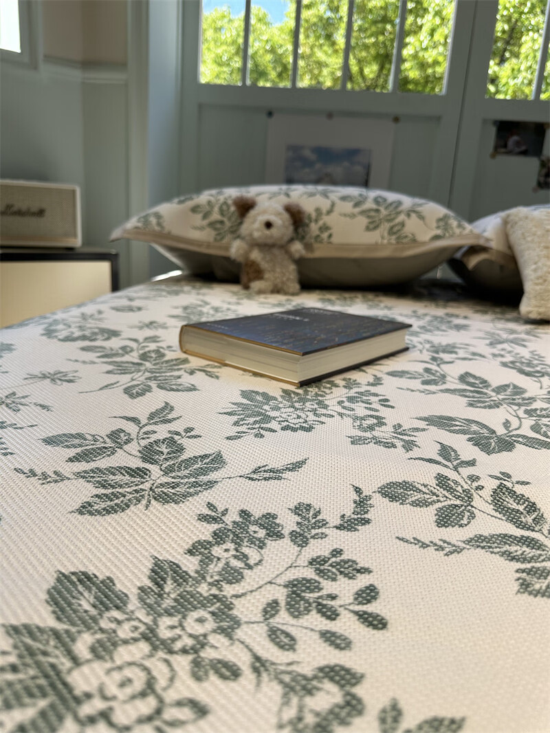 藤席天然纯藤冰法式茶歇绿色碎花可机洗夏凉席三件套空 YAG-冰藤席法式茶歇绿床笠款 1.8m(6英尺)床