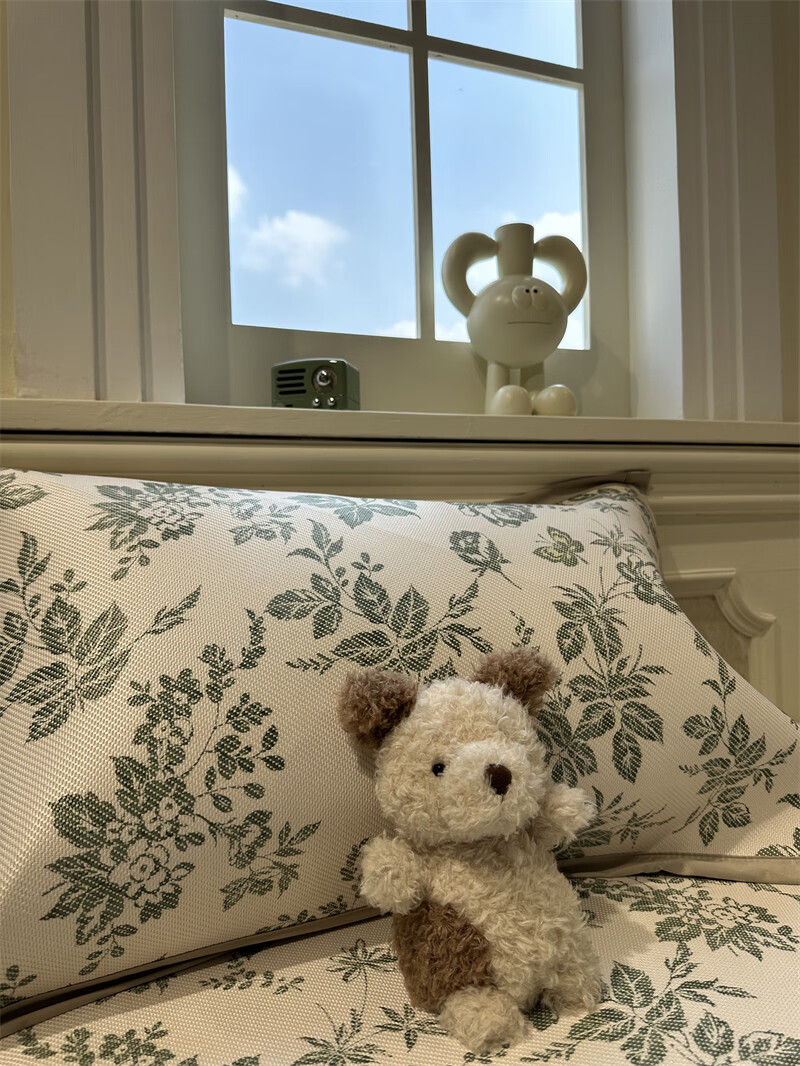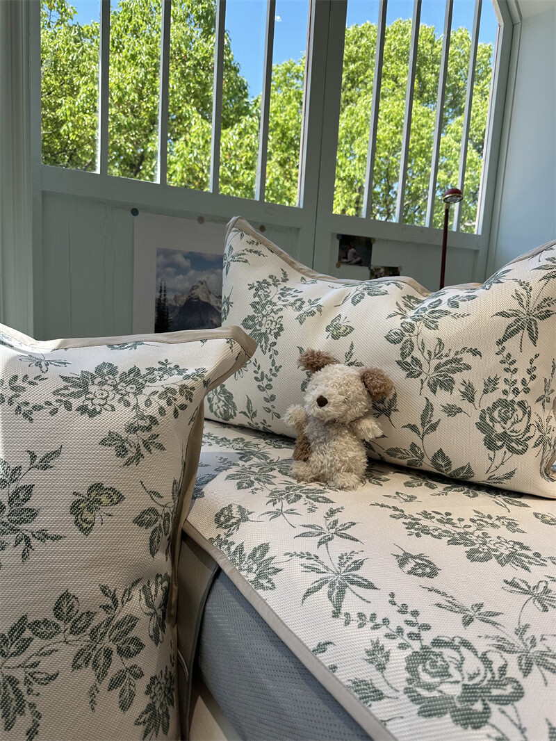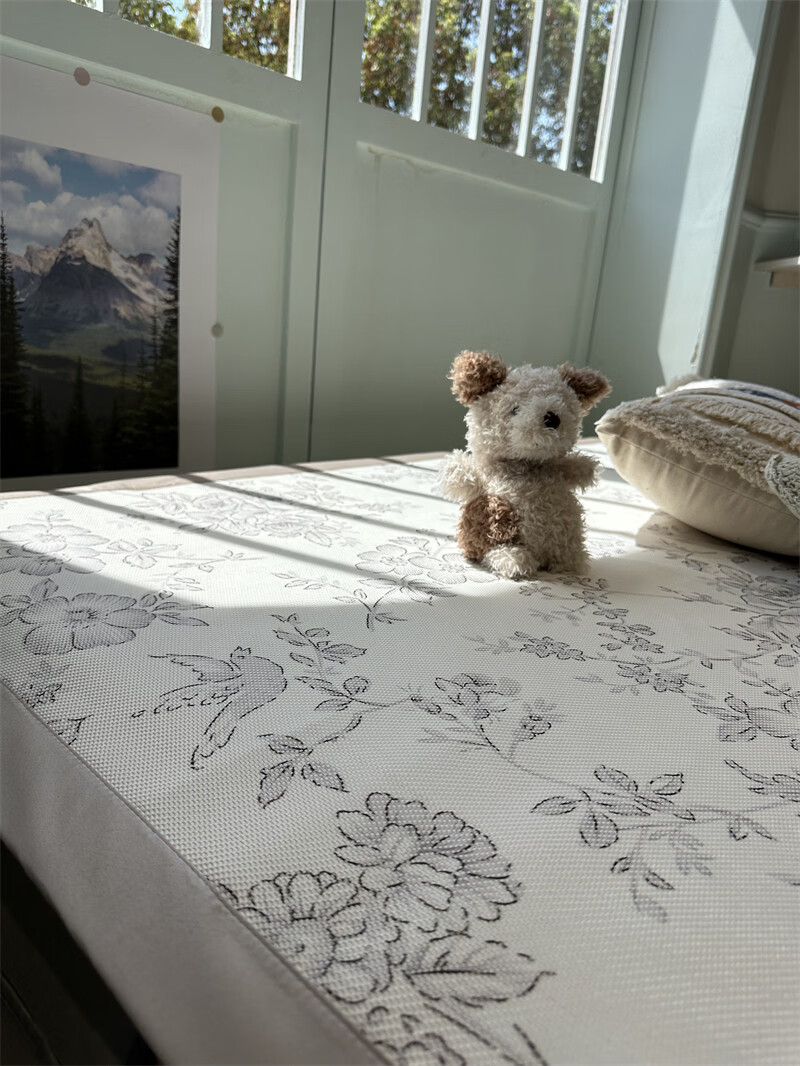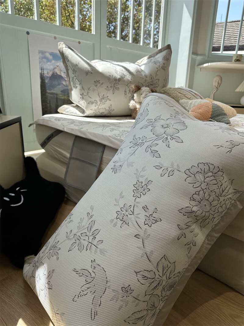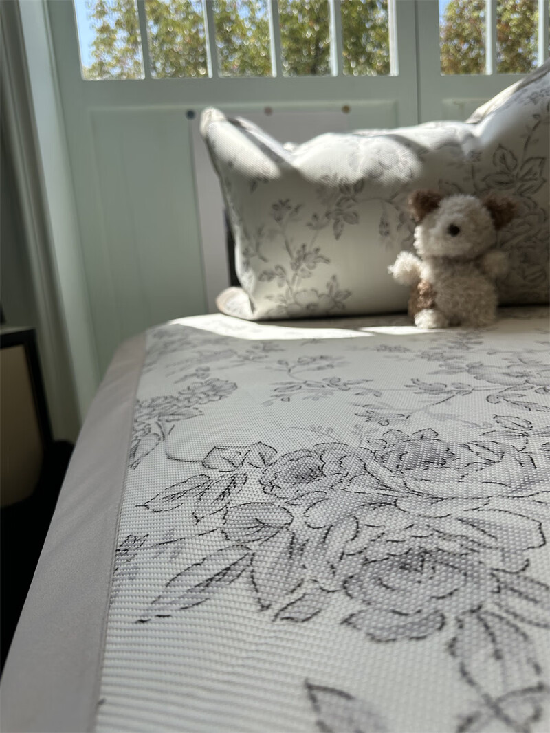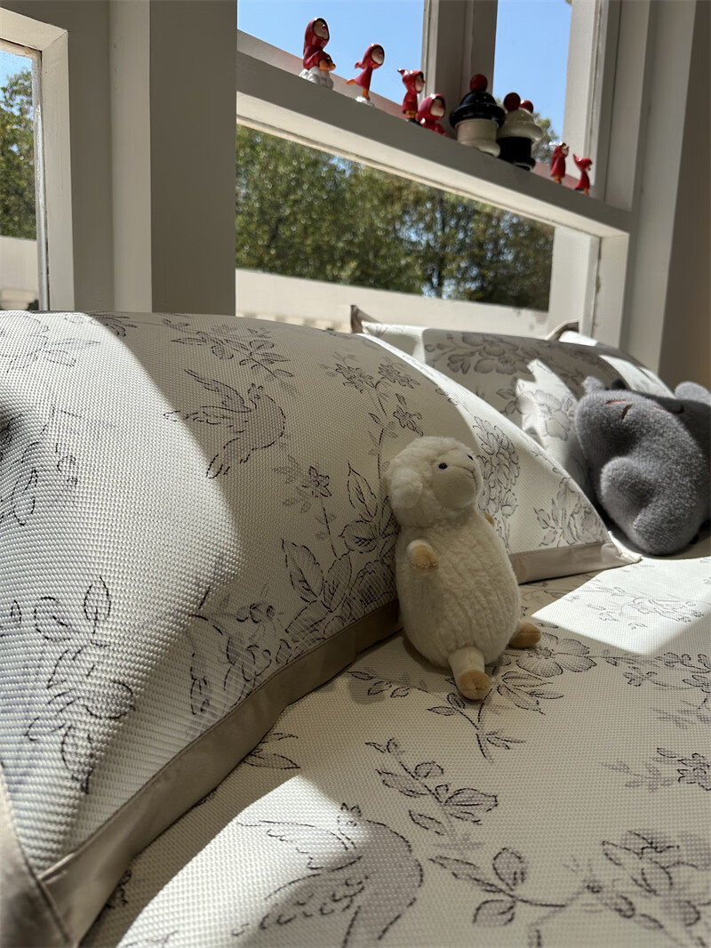藤席天然纯藤冰法式茶歇绿色碎花可机洗夏凉席三件套空 YAG-冰藤席法式茶歇绿床笠款 1.8m(6英尺)床