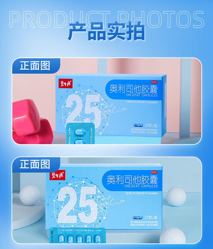 [碧生源]奥利司他胶囊 0.12g*25粒 1盒+[碧生源]奥利司他胶囊 60mg*6粒 1盒 120mg+60mg 减脂减重 准字 【划算装