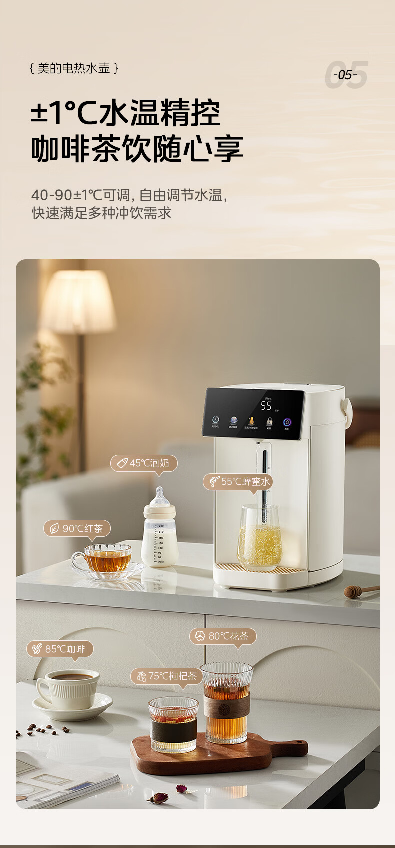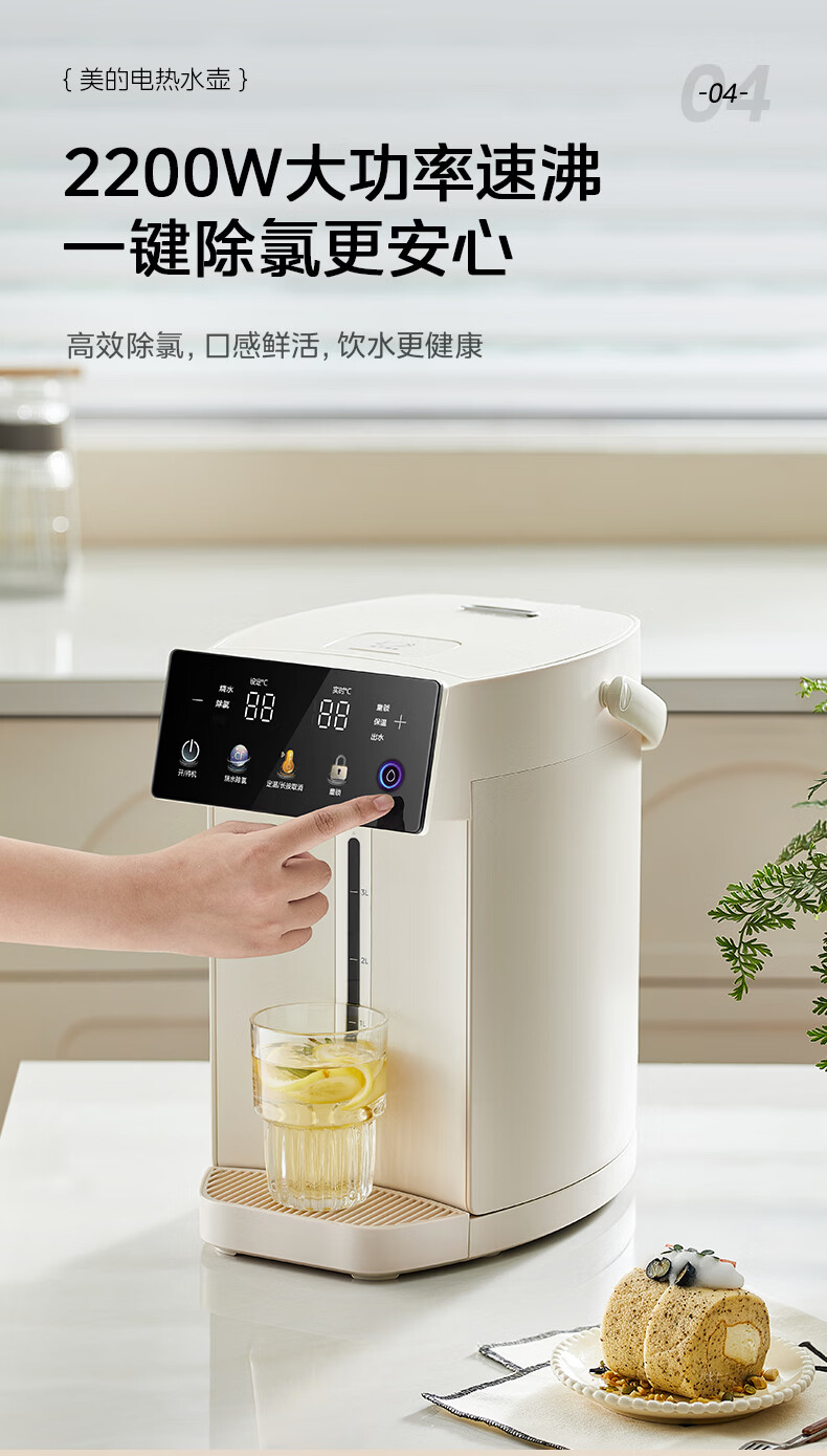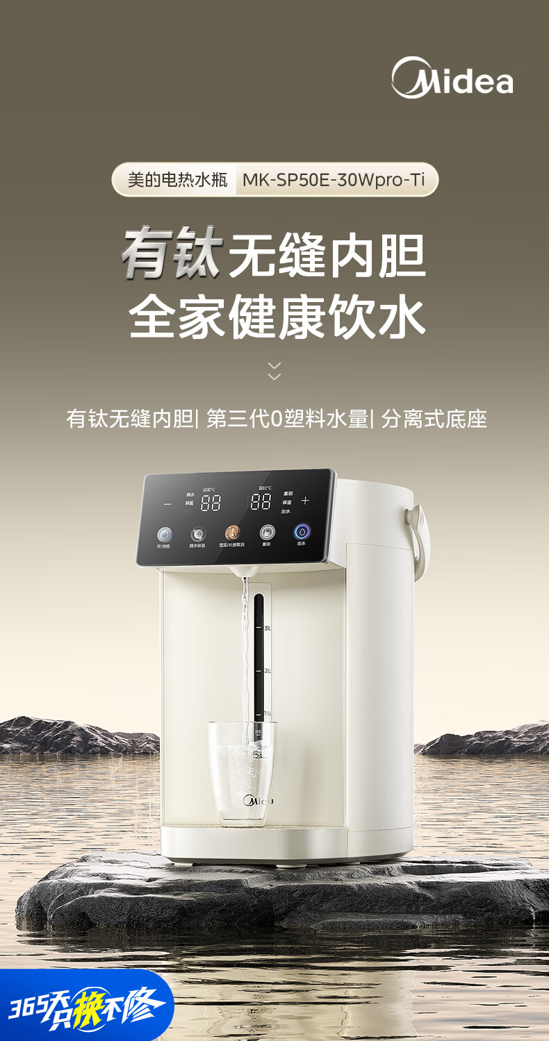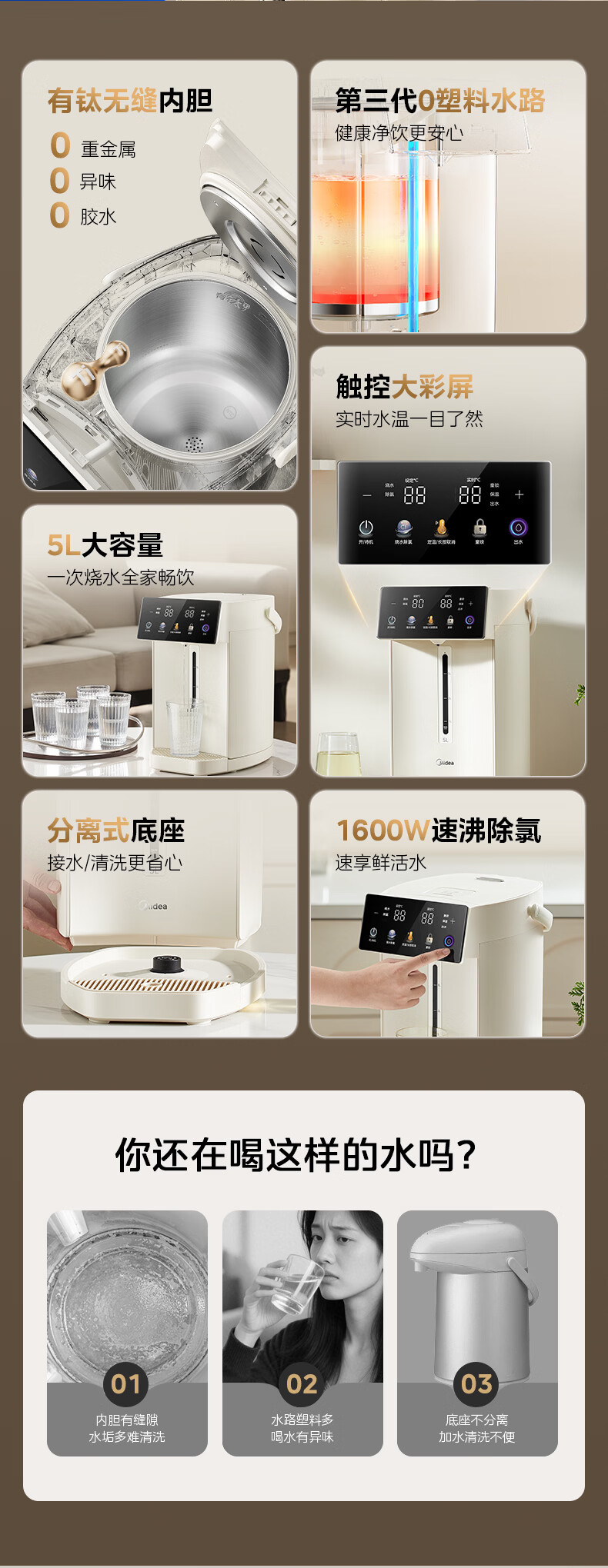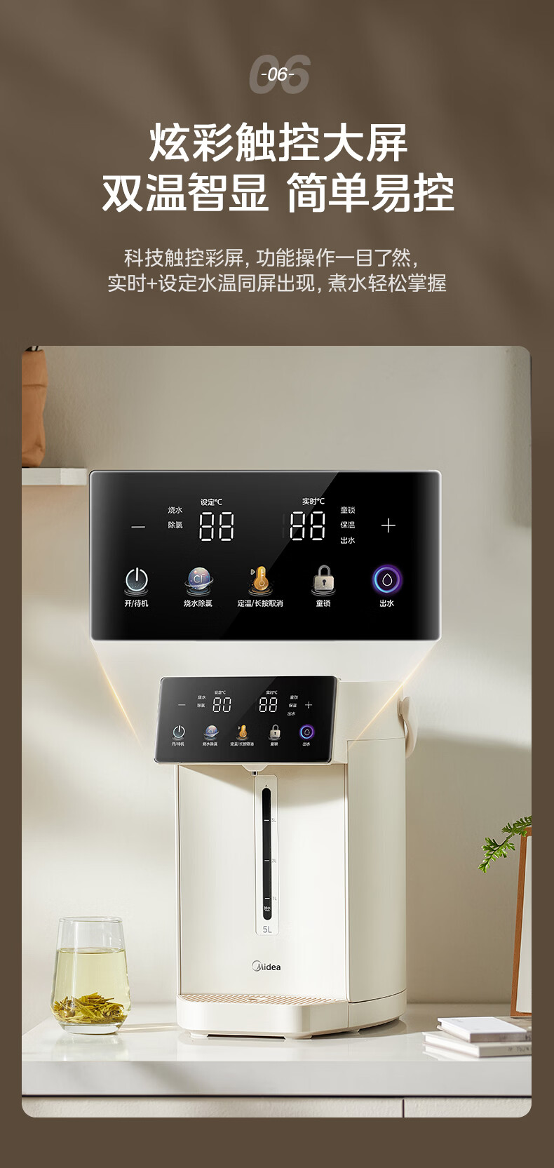 美的(Midea)钛电热水瓶 5L升大容量保温除氯电水瓶 电热水壶饮水机 家用钛烧水壶保温一体全自动恒温电热水壶 5L 【有钛升级款】316L不锈钢