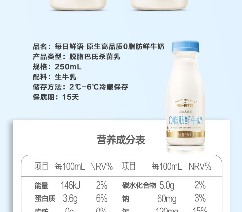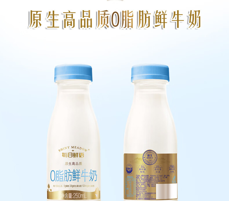 每日鲜语【肖战推荐】3.6蛋白质全脂250ml+0脂鲜奶组合装小瓶鲜奶高钙营养 3.6*6瓶+0脂*6瓶-小瓶