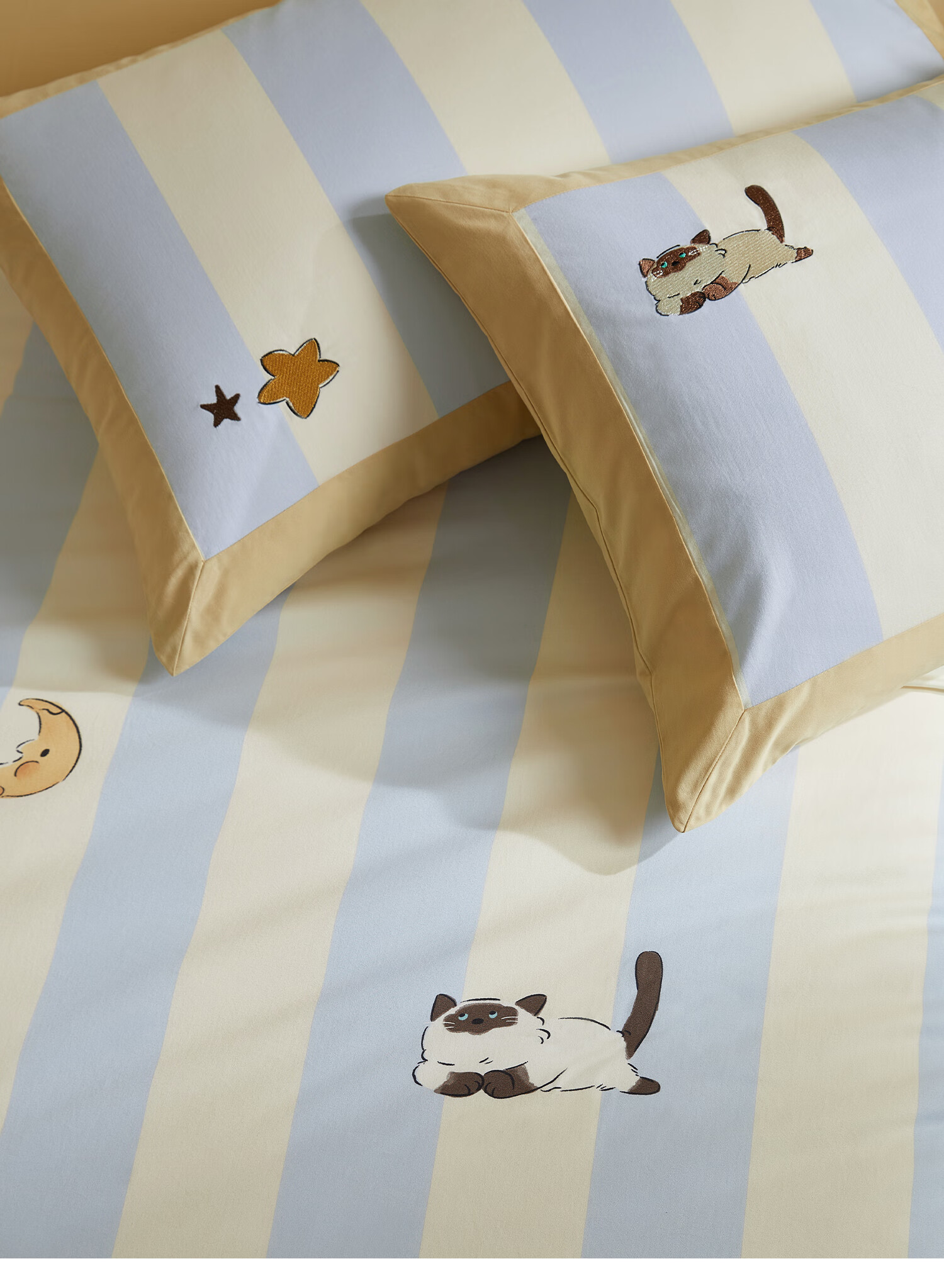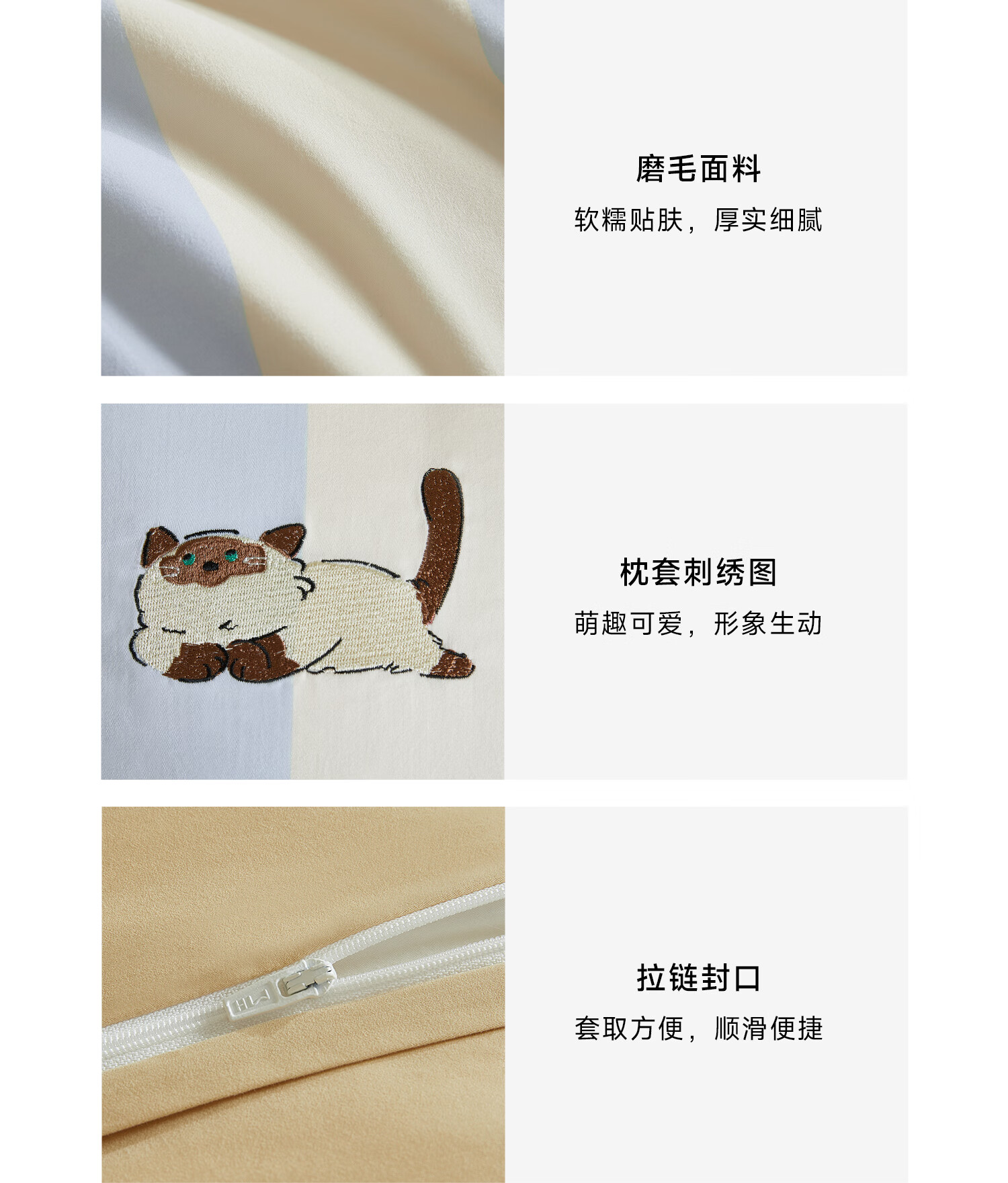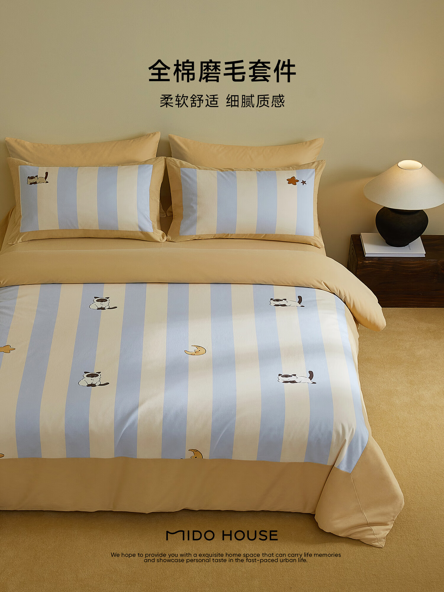 MIDO HOUSE铭都床上四件套100%纯棉全棉秋冬磨毛柔软亲肤床单被套罩床品套件 【买就送被子】喵星人 1.5m 床笠款 (被套200*230cm)