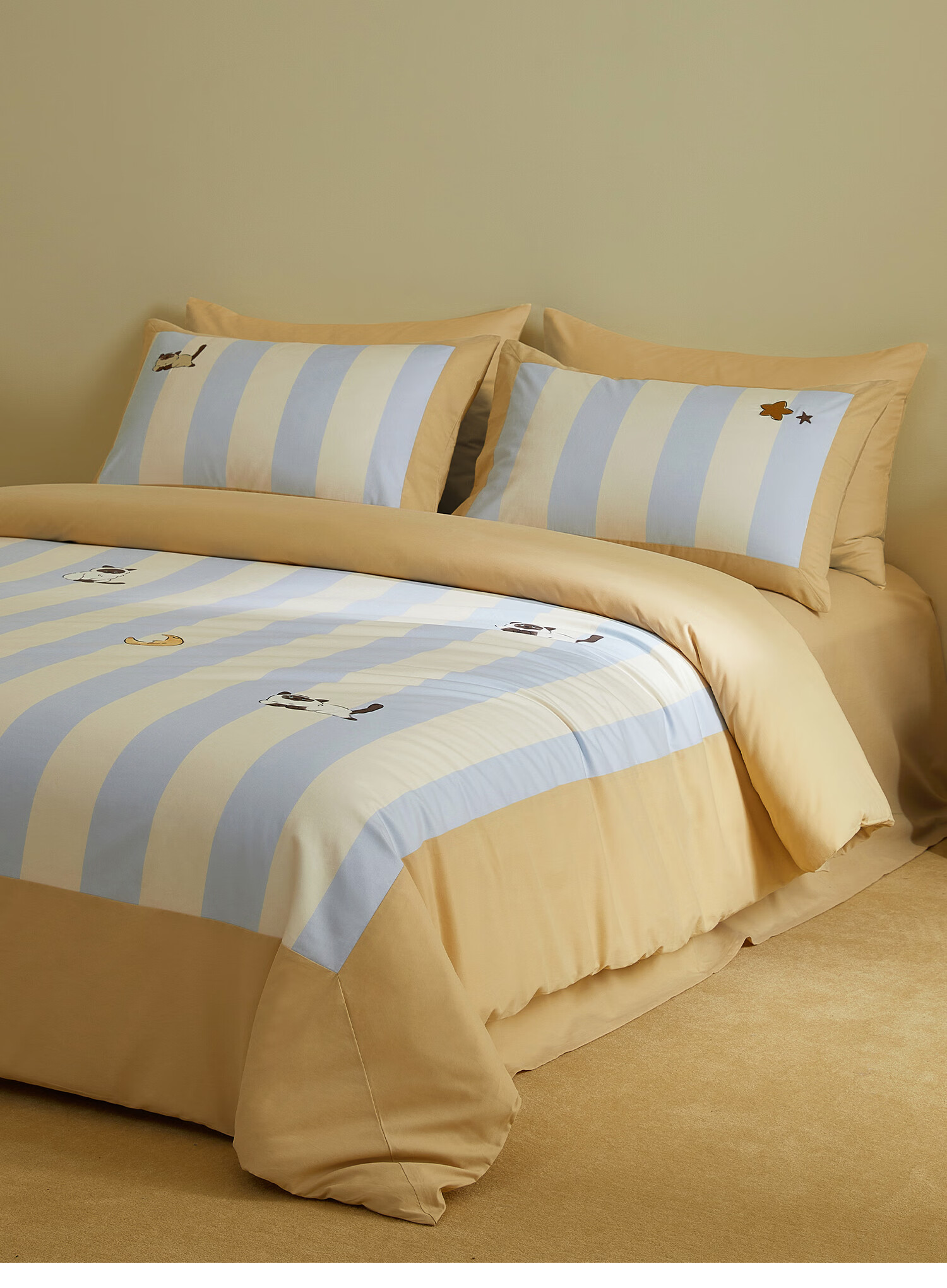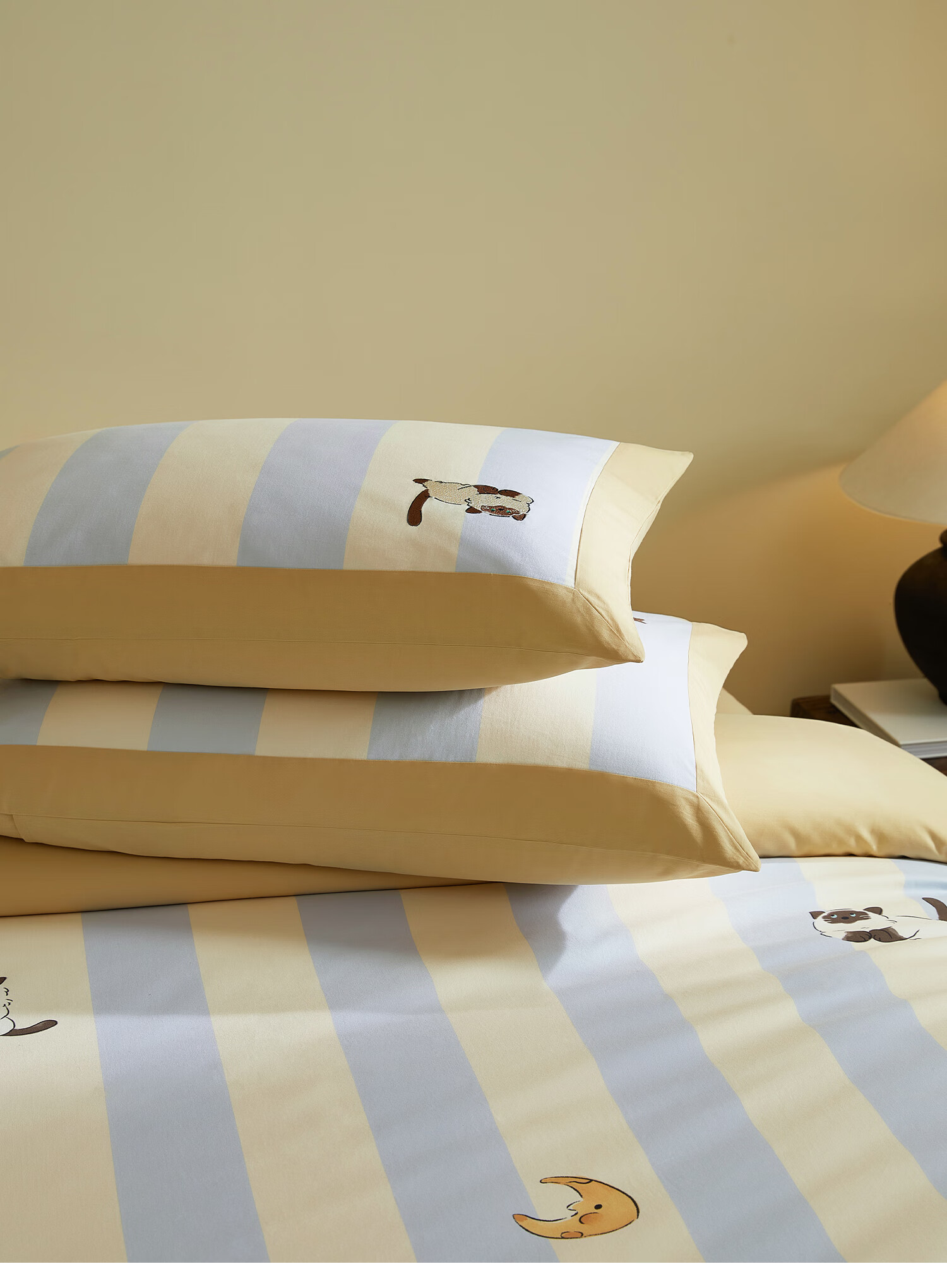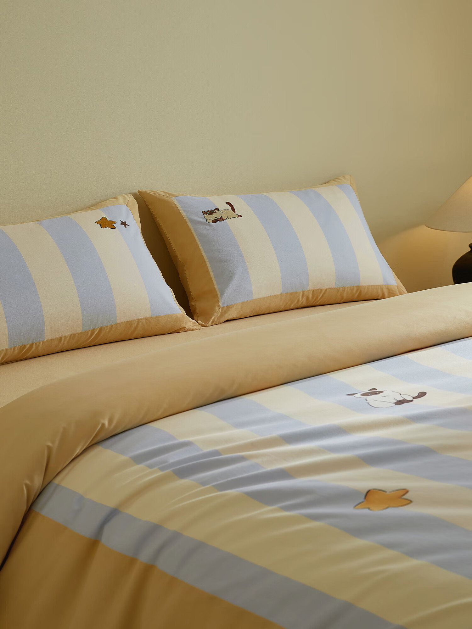 MIDO HOUSE铭都床上四件套100%纯棉全棉秋冬磨毛柔软亲肤床单被套罩床品套件 【买就送被子】喵星人 1.5m 床笠款 (被套200*230cm)