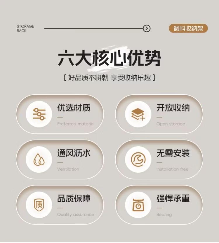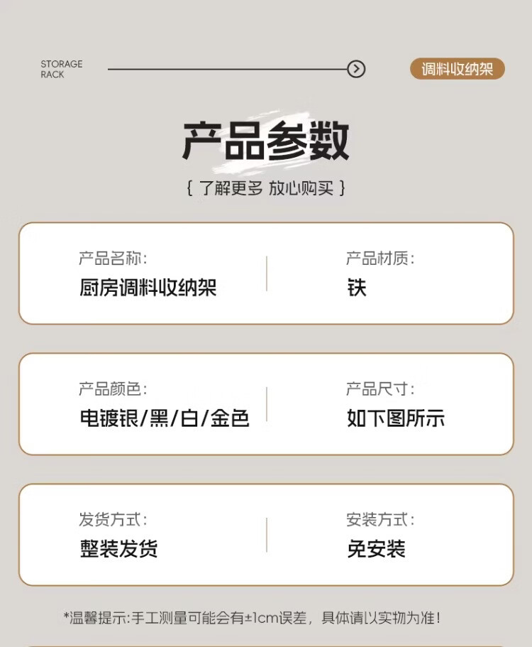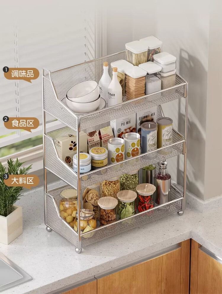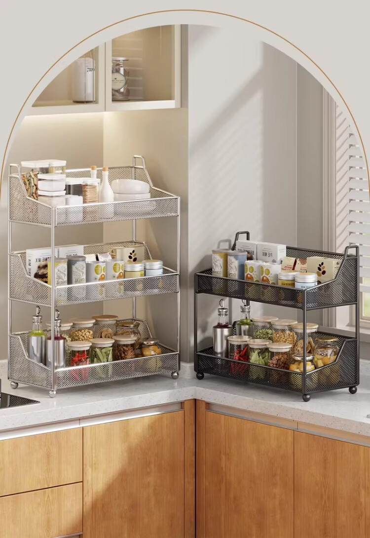 尔思家厨房调料置物架台面放油盐酱醋的架子调味品收纳家用多功能储物架 白色双层大号