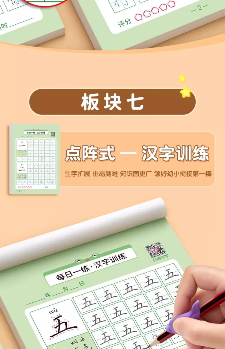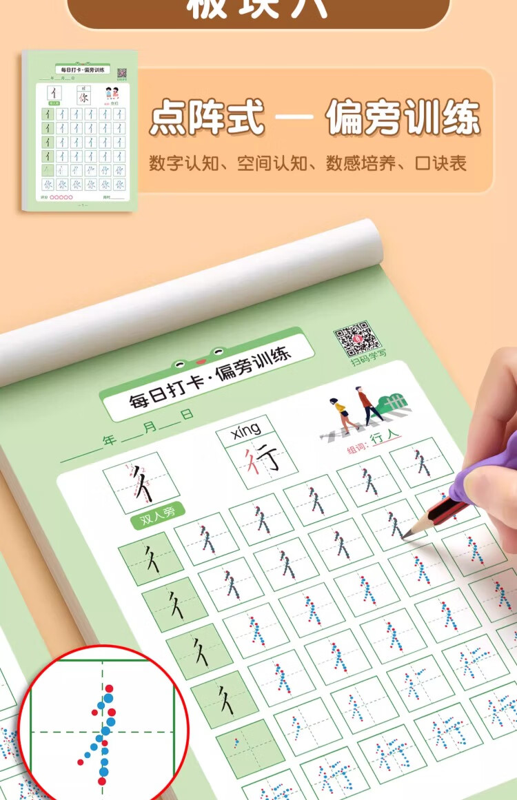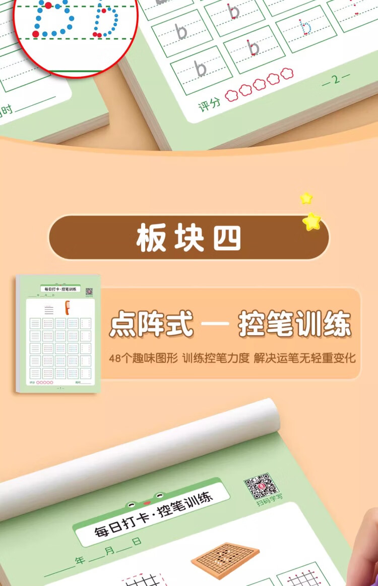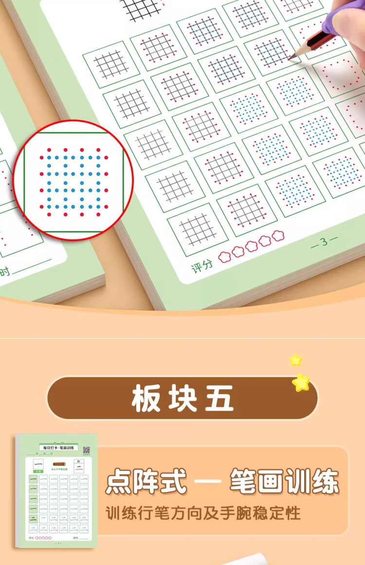 六品堂【每日一练】点阵控笔训练幼儿园幼小衔接练字帖点阵字帖幼儿园练字本教材全套儿童学前班描红本