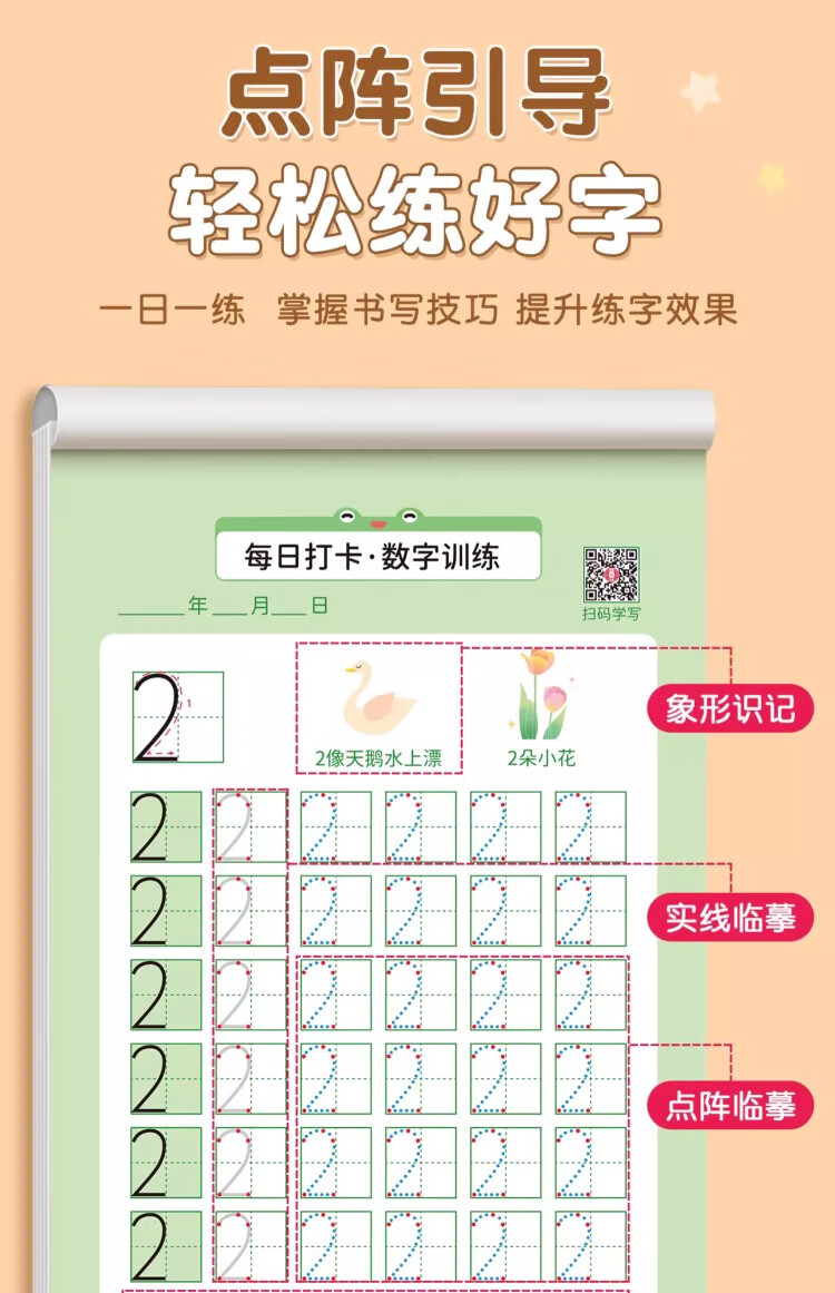 金枝叶幼儿园数字练字帖学前班汉字笔画字帖儿童启蒙3岁456岁凹槽控笔训练练习本