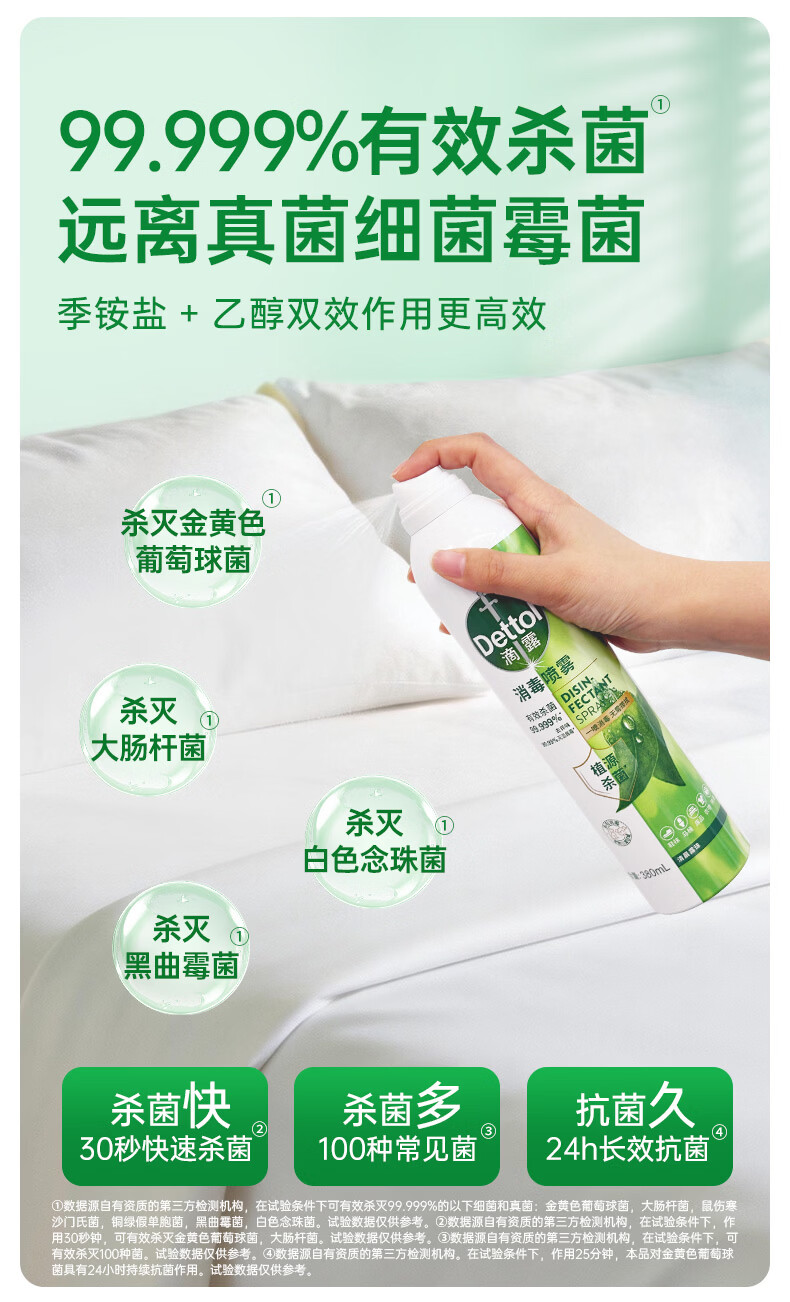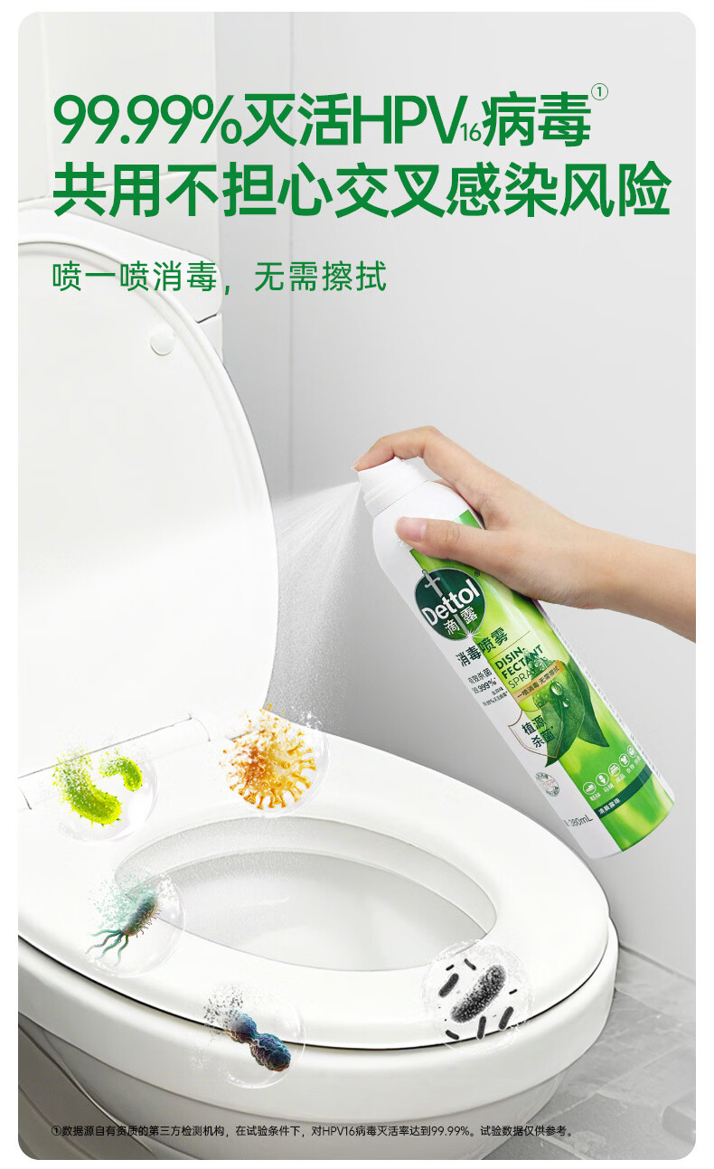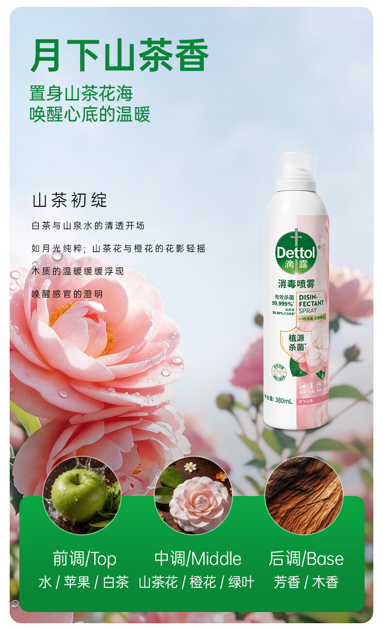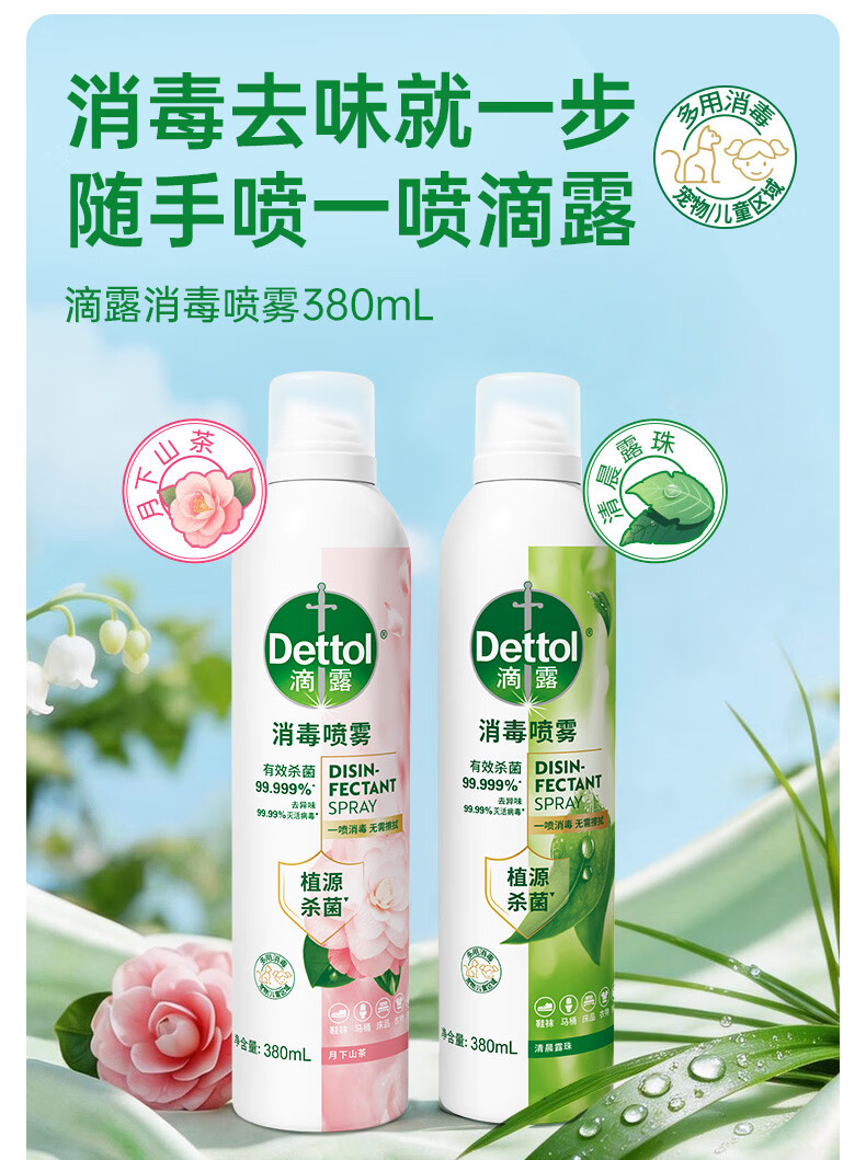 滴露(Dettol)香氛消毒喷雾鞋袜除臭喷雾床上除菌灭活HPV16除异味380ml月下山茶