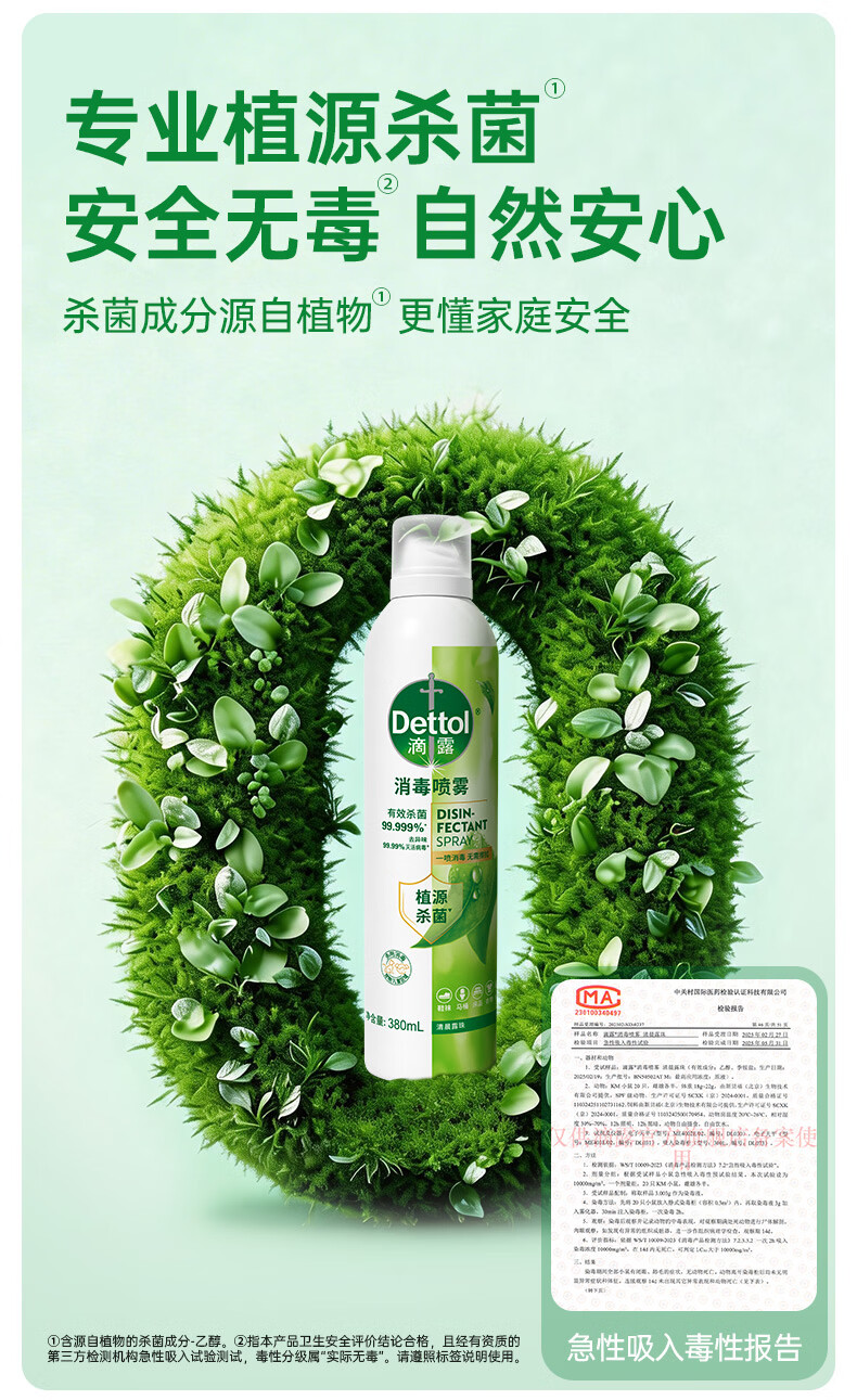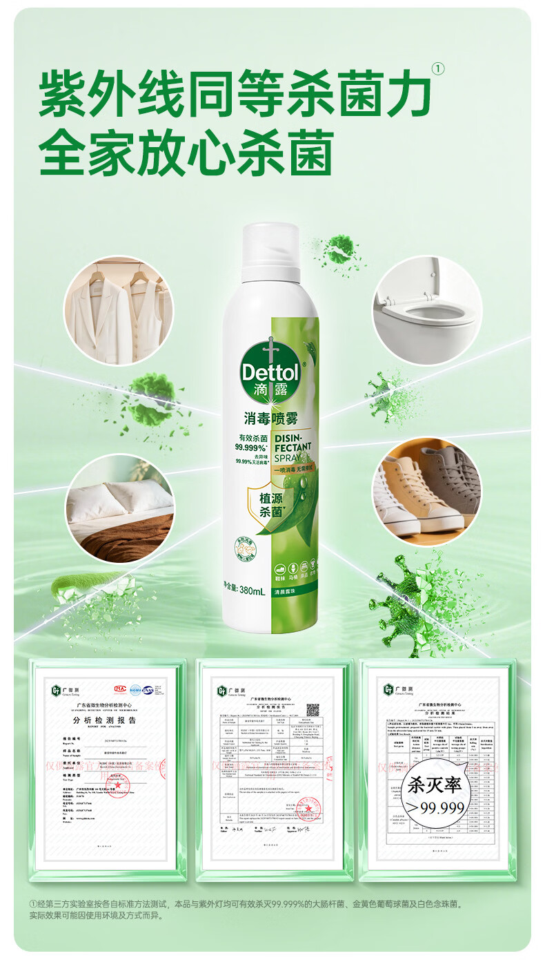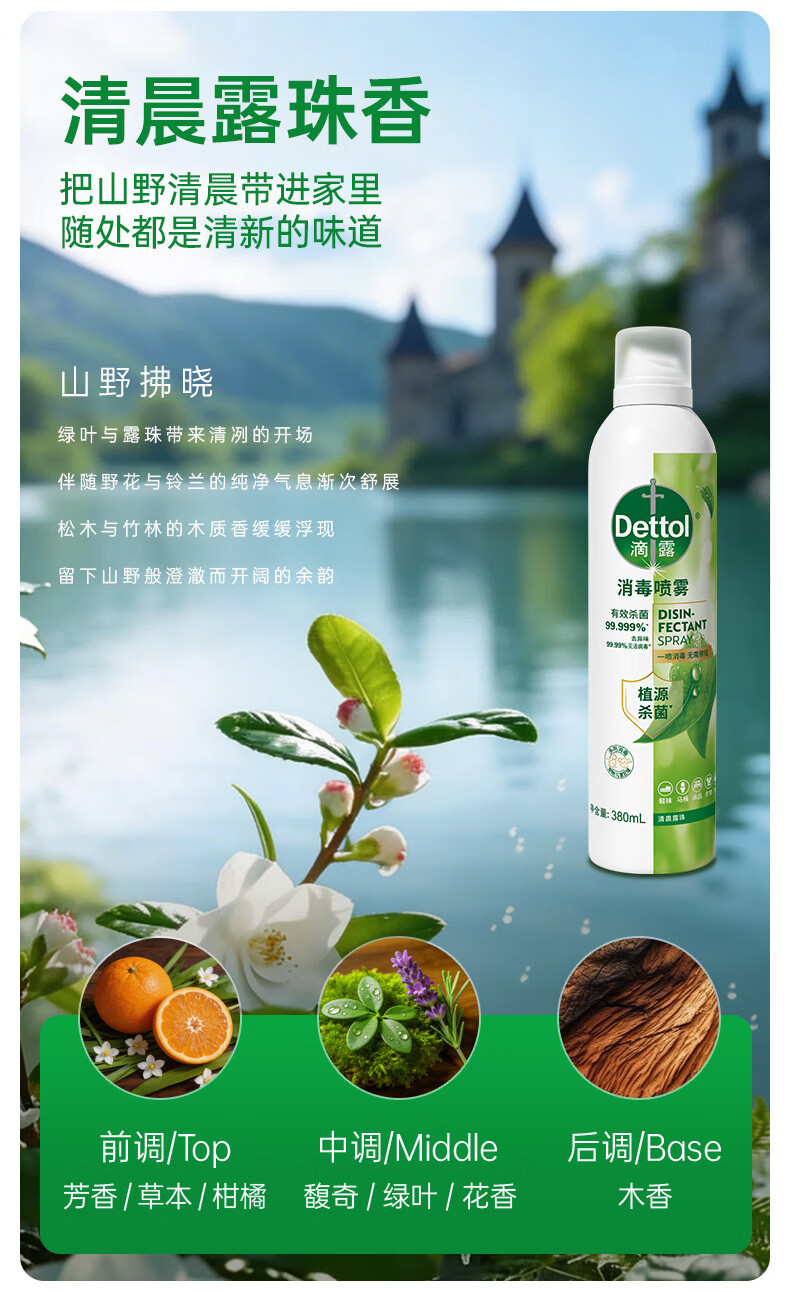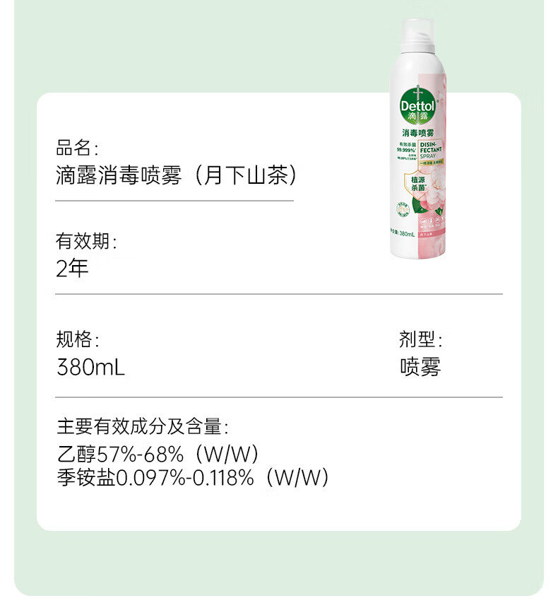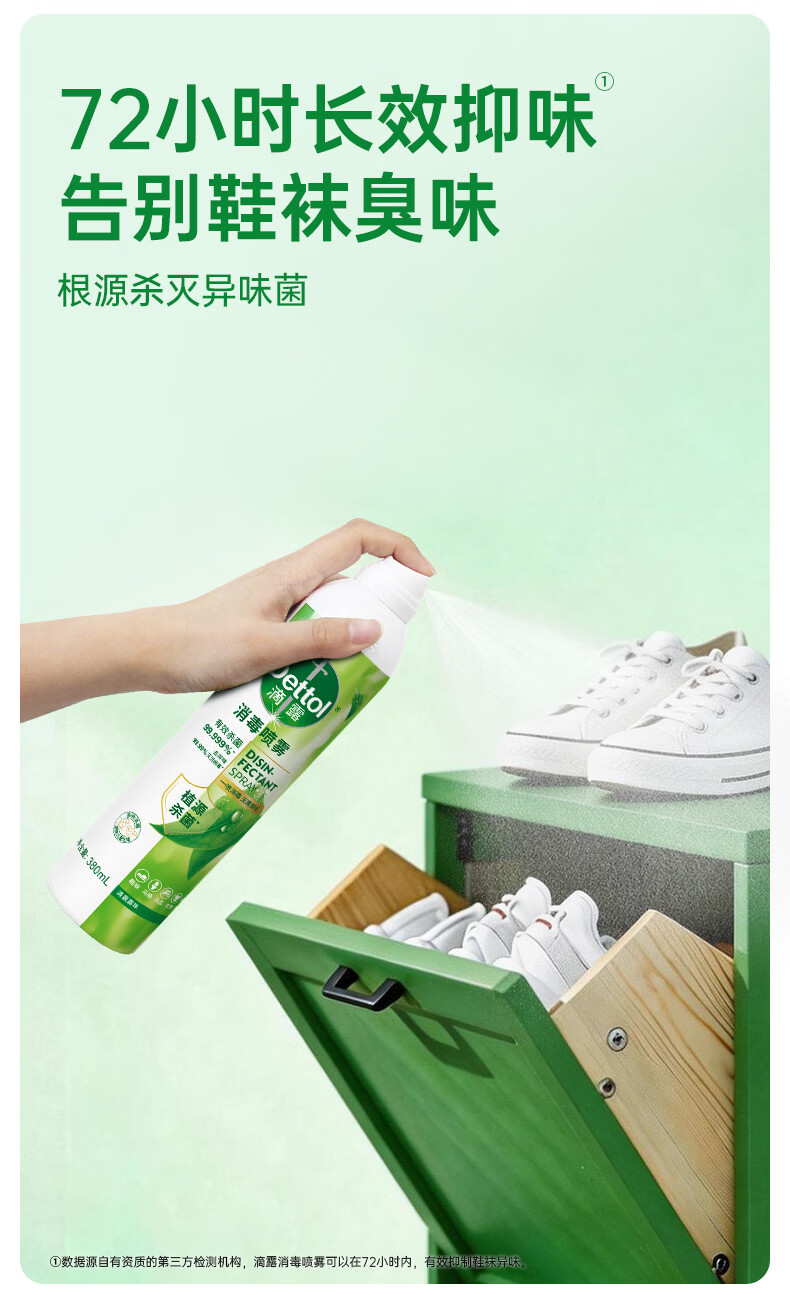 滴露(Dettol)香氛消毒喷雾鞋袜除臭喷雾床上除菌灭活HPV16除异味380ml月下山茶