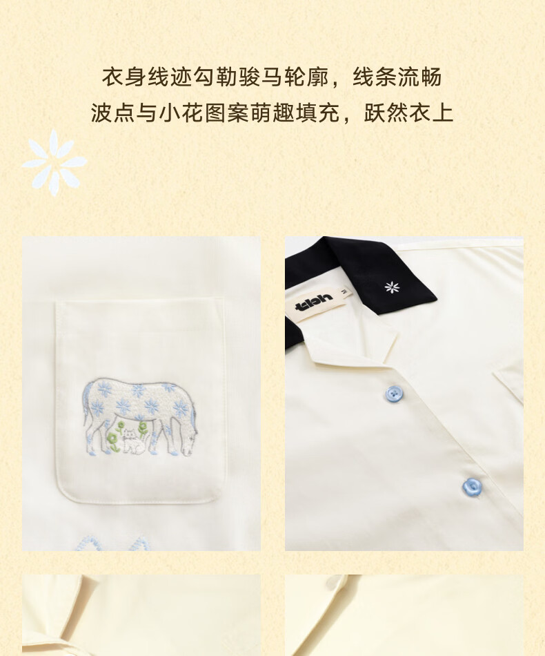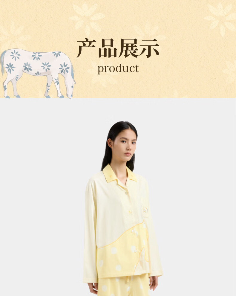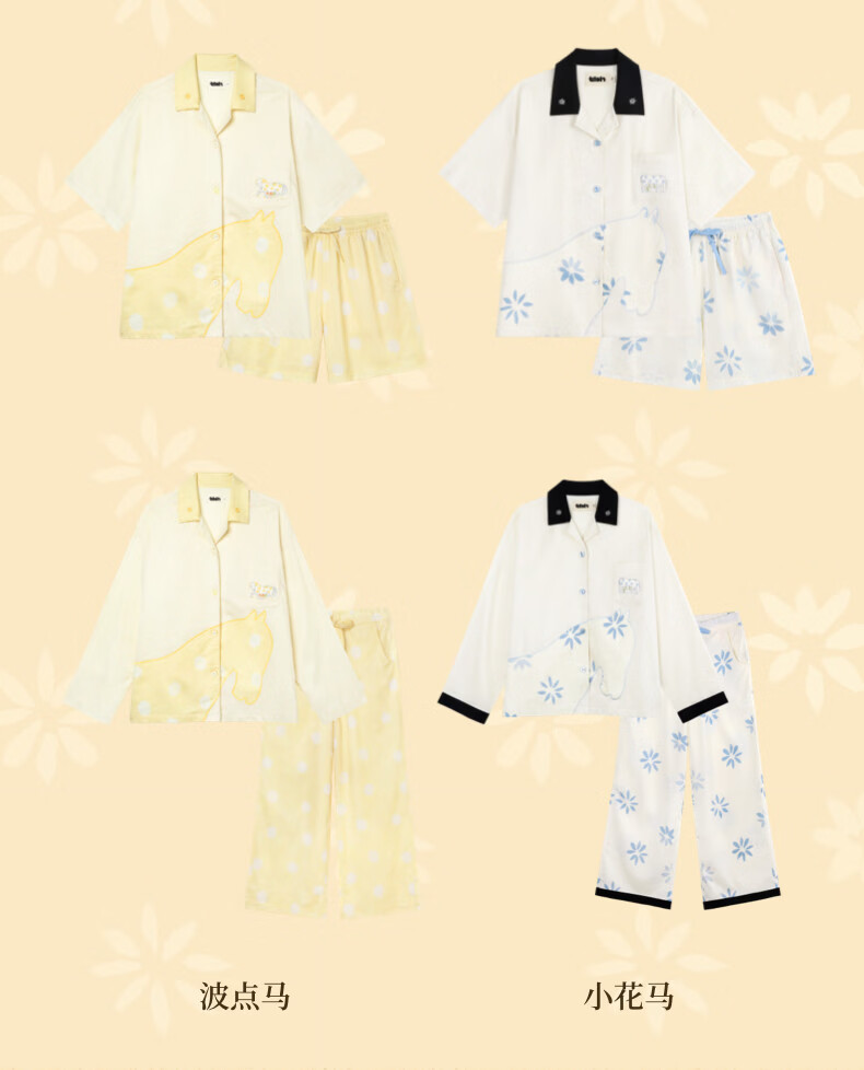 野兽派家居(tbh)马年天丝棉家居服套装四季男女可外穿情侣睡衣 天丝棉家居服长款套装 小花马 S