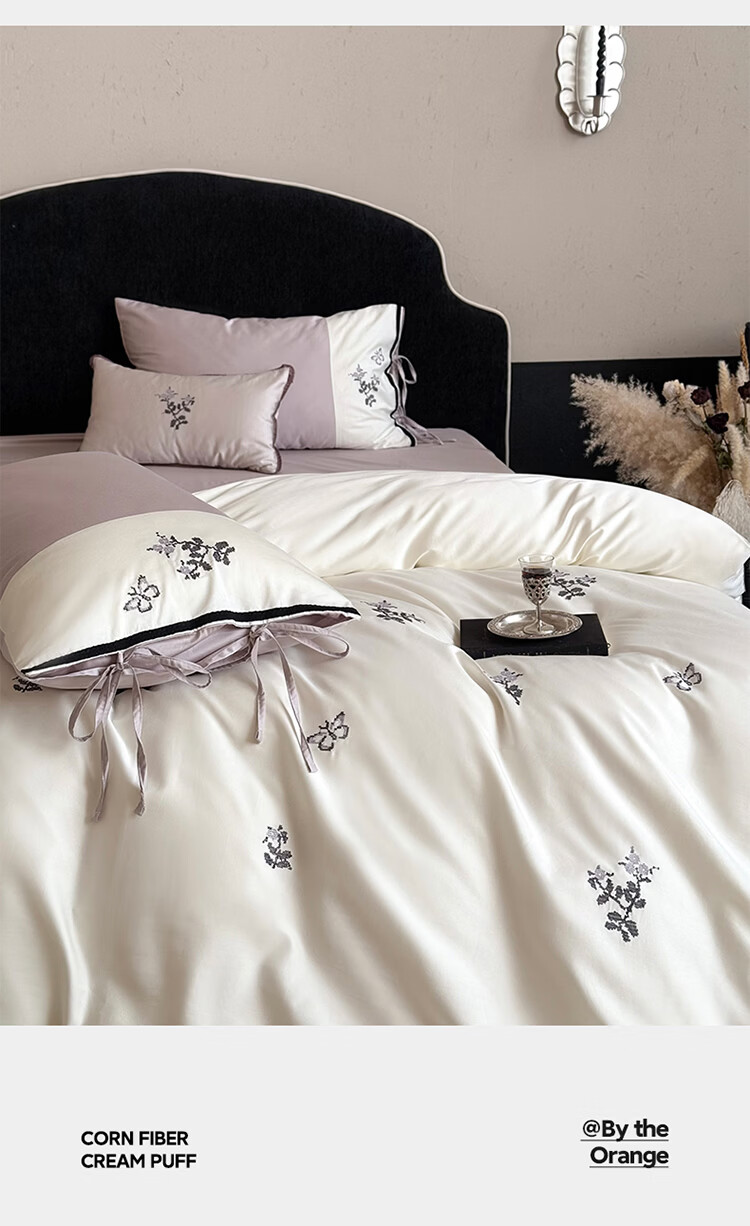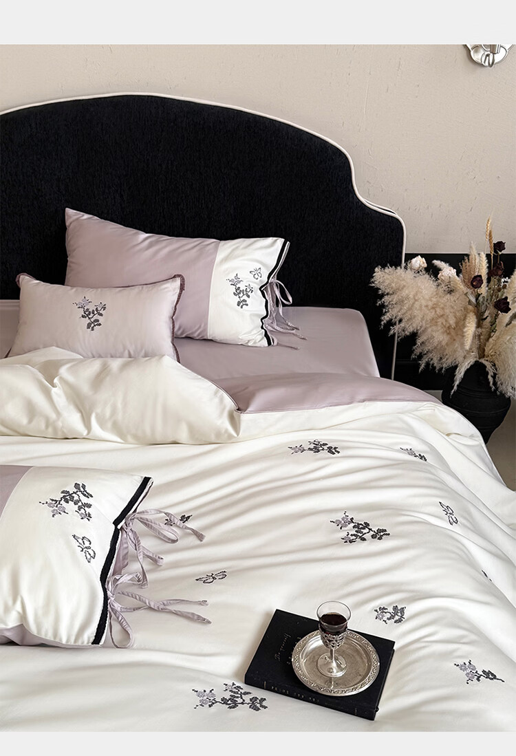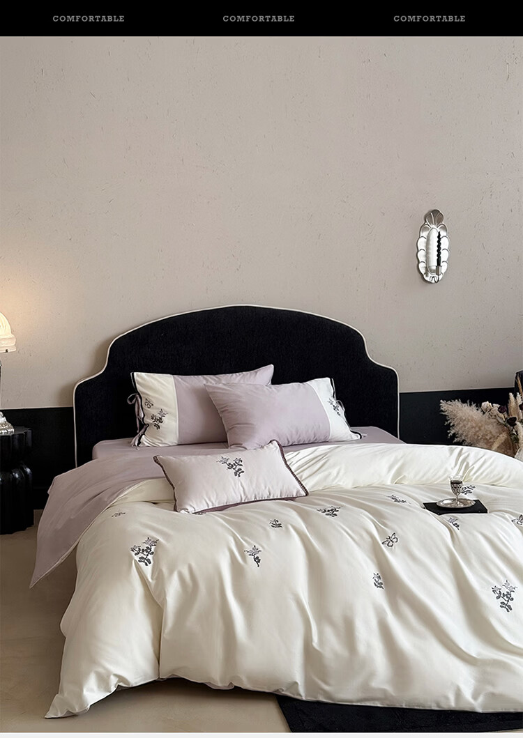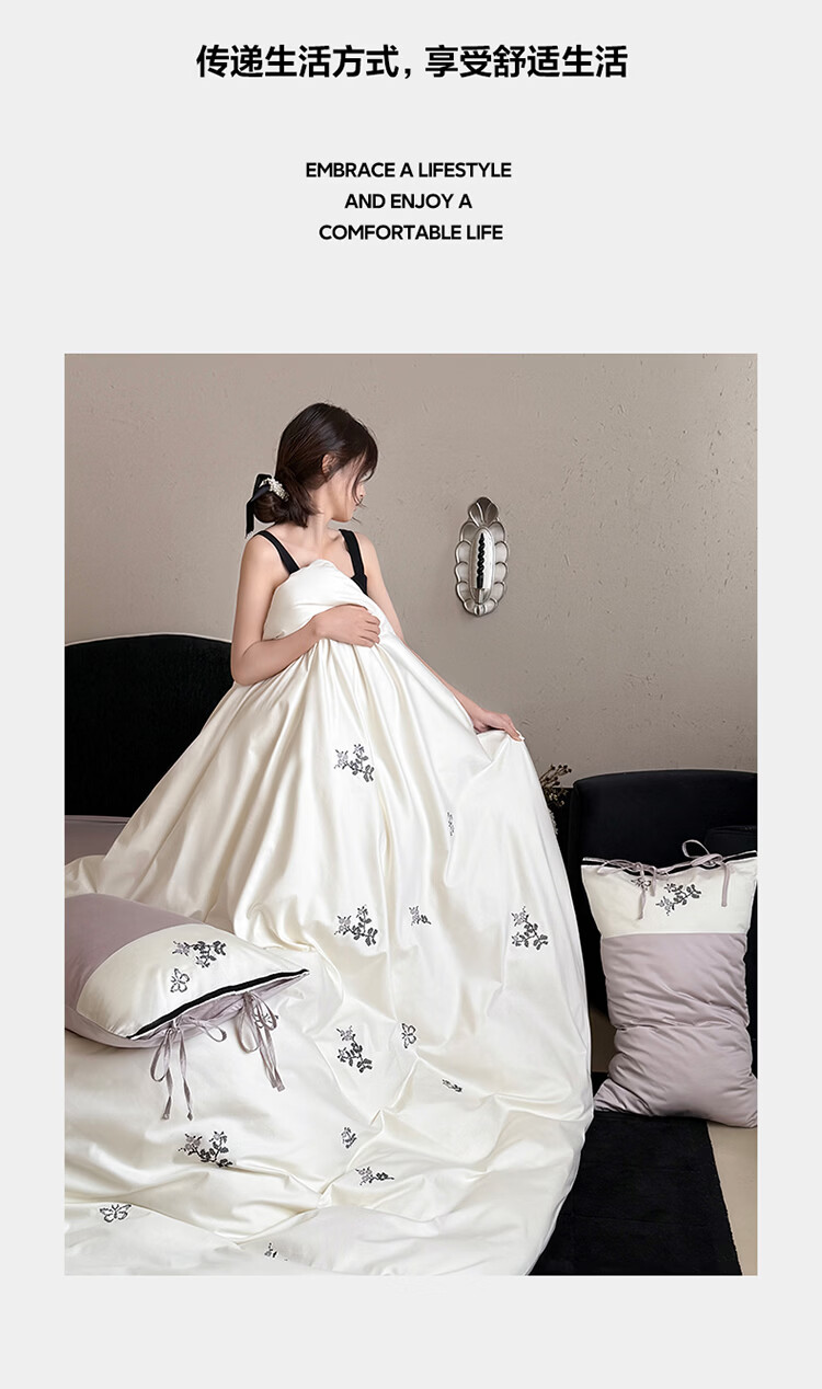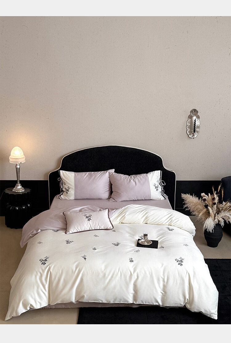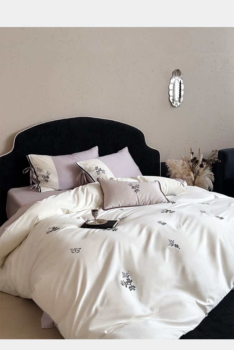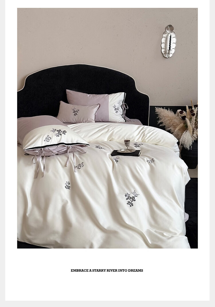 ROLAND LIVE长绒棉透气刺绣四件套亲肤裸睡被套床单1.8m床全棉四季床上用品 LB 长绒棉套件- 一隅花町 1.8米床 床单款 【被套200*230cm】