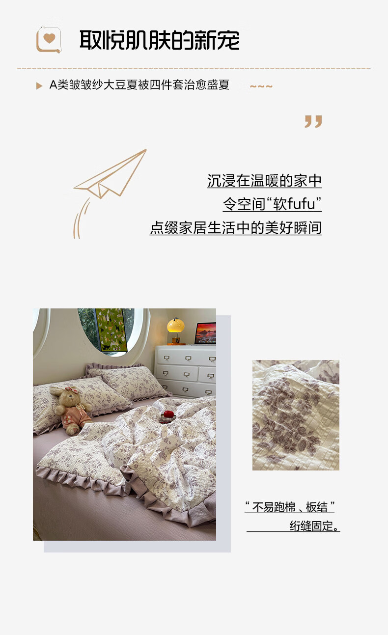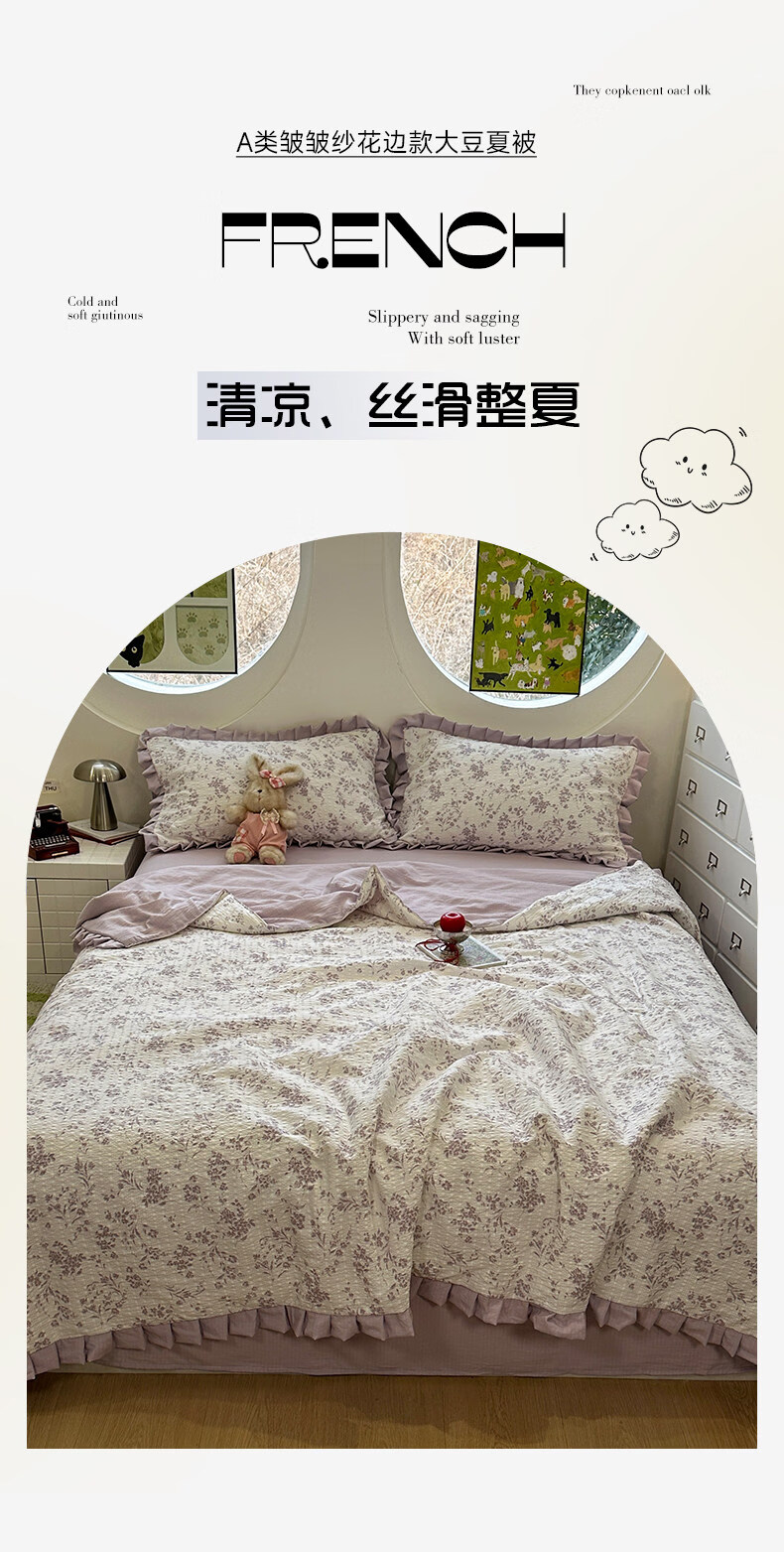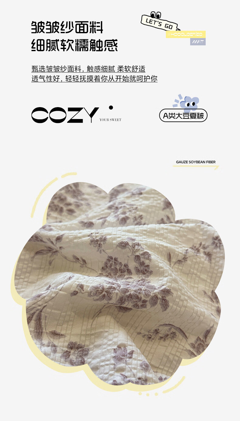 苏萱2026热卖皱皱纱大豆纤维夏被四件套夏季夏凉被空调被可机洗单双人 花予四季 双人夏被-200*230cm