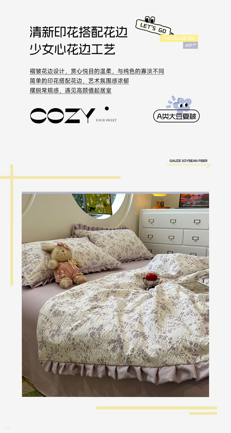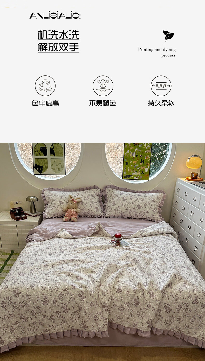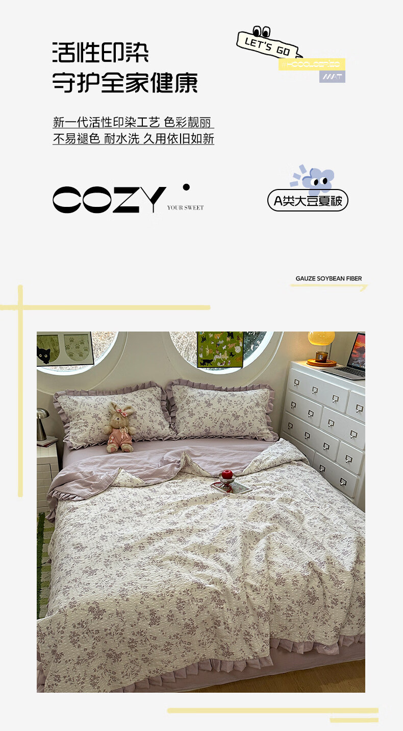 苏萱2026热卖皱皱纱大豆纤维夏被四件套夏季夏凉被空调被可机洗单双人 花予四季 双人夏被-200*230cm