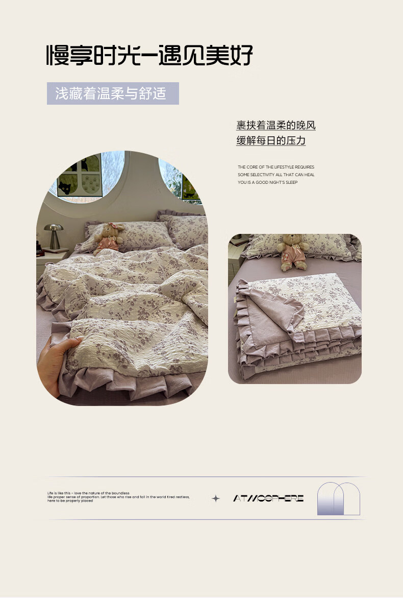 Teenie WeenieTeenieWeenie小熊淡雅全棉双层纱四件套法式复古套件纯棉被套床单 花边款-沙漏 1.5/1.8m 床单款 被套200*230cm