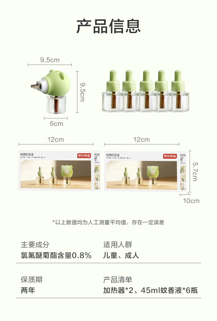 京东京造电蚊香液驱蚊液6瓶+2器超大容量灭蚊防蚊蚊香基孔肯雅热无香型