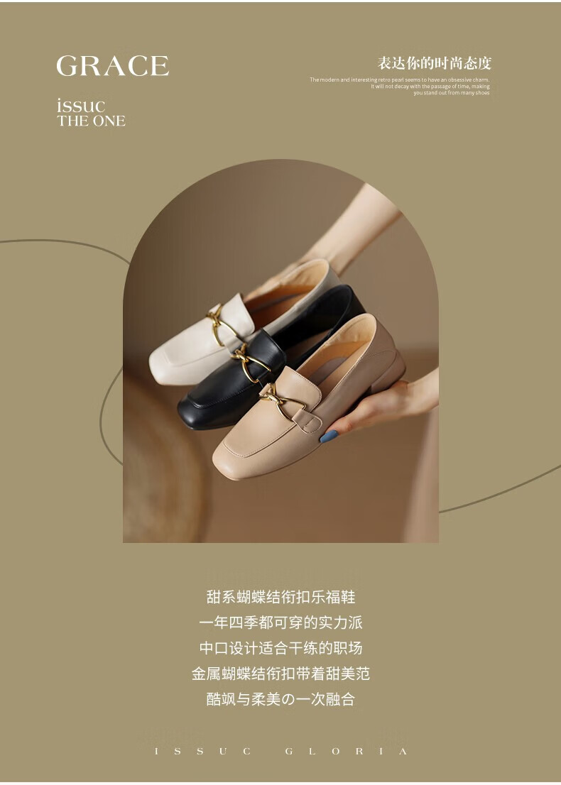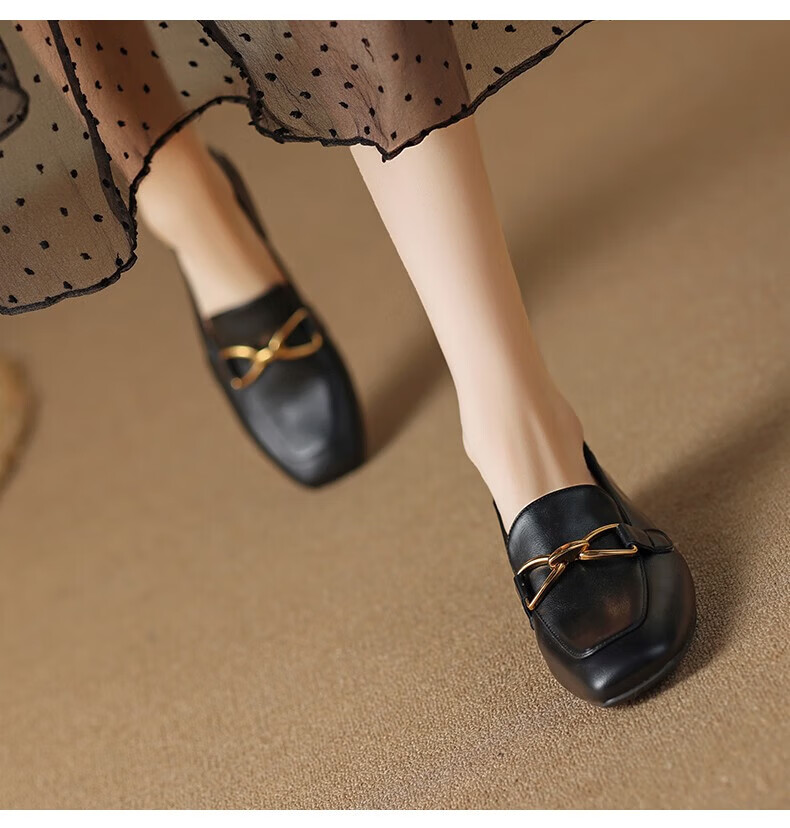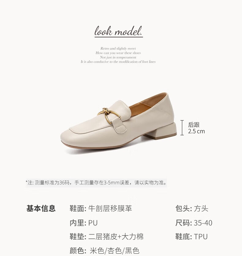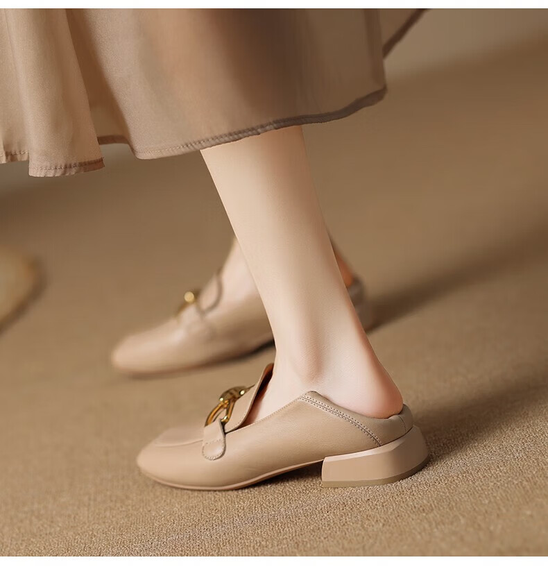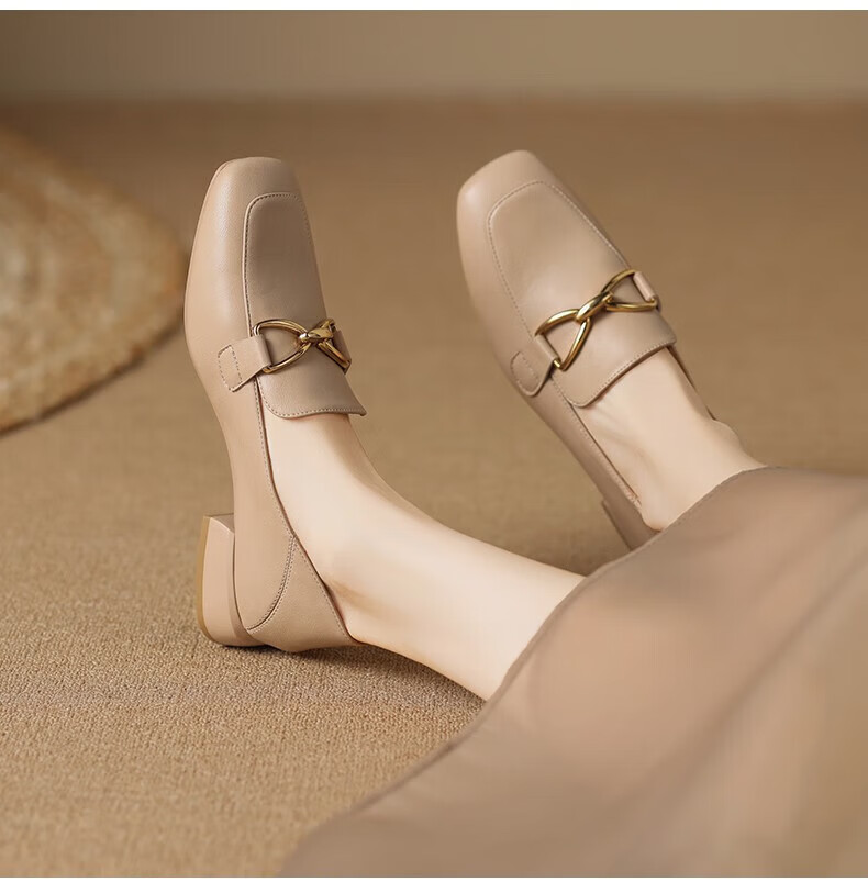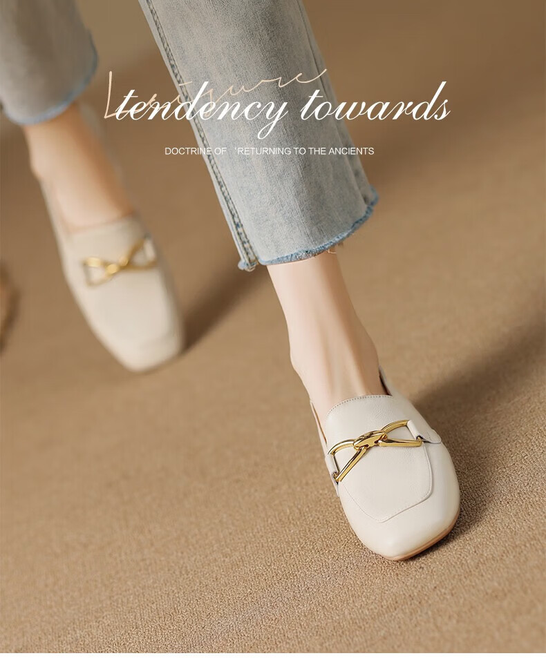 ZHR则则单鞋女秋季新品蝴蝶结金属饰扣休闲鞋子女百搭真牛皮透气舒适 米色 37