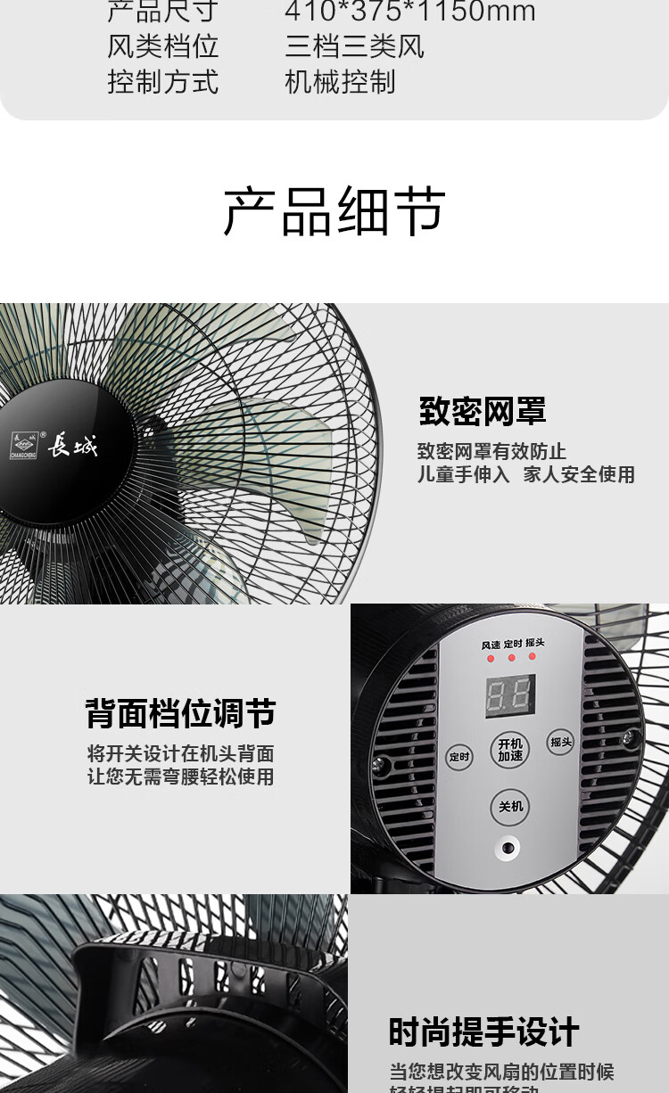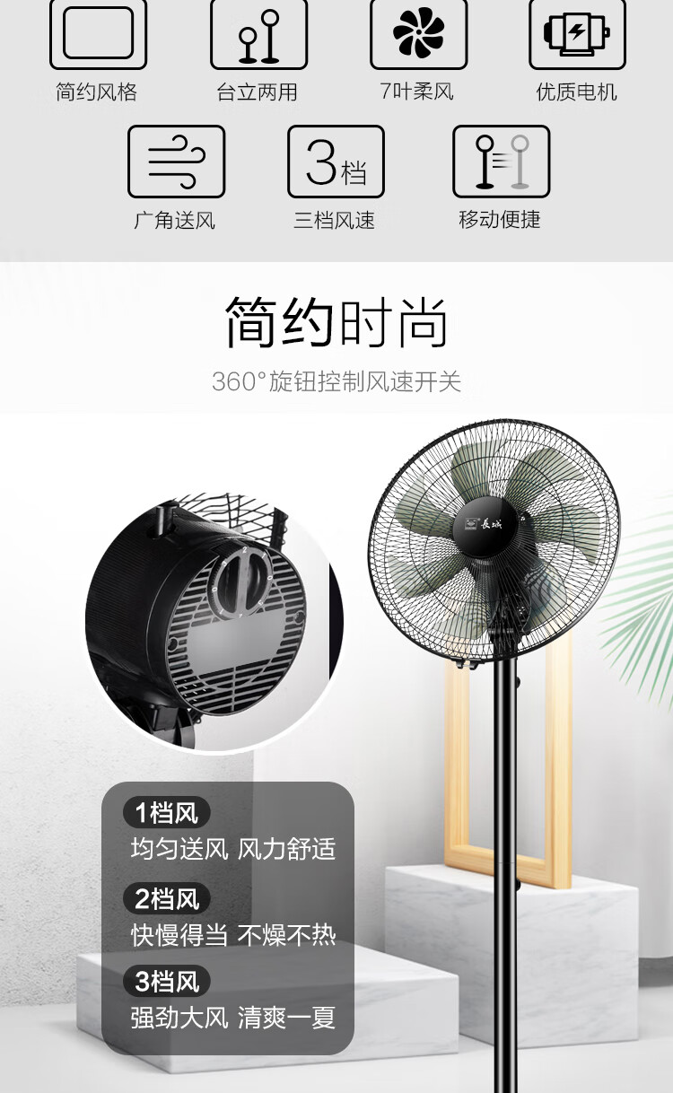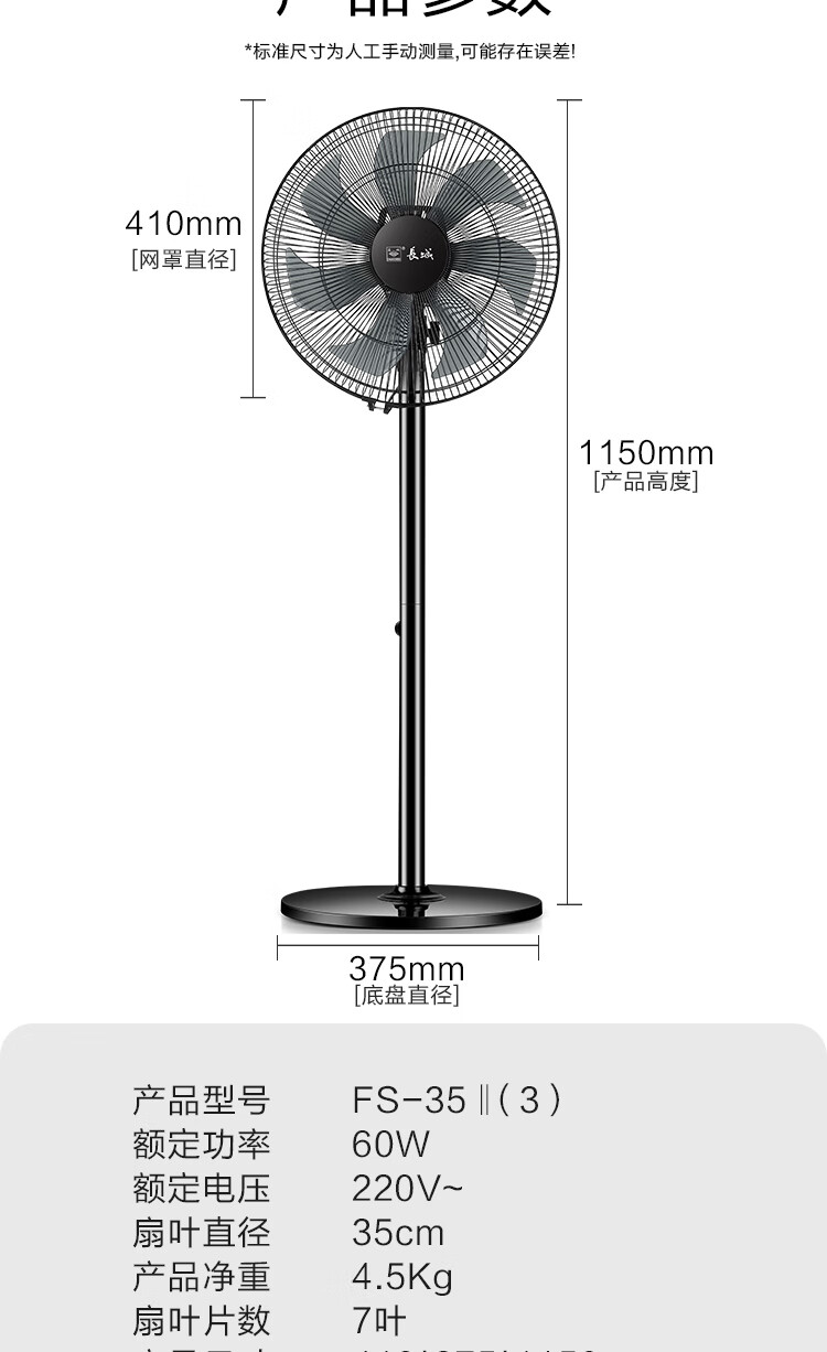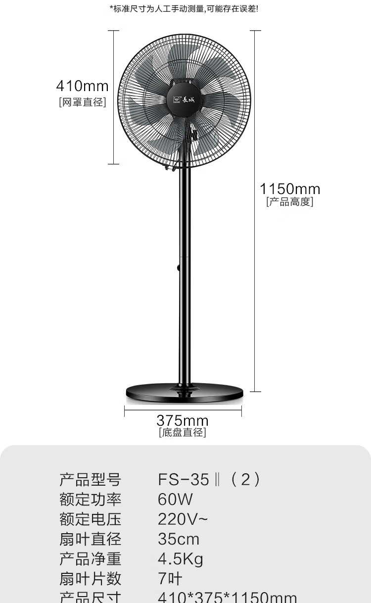 长城电风扇/落地扇/空气流通/工业落地扇/工程家用风扇/七叶大风量风扇 黑色机械款-FS-35II(2)P