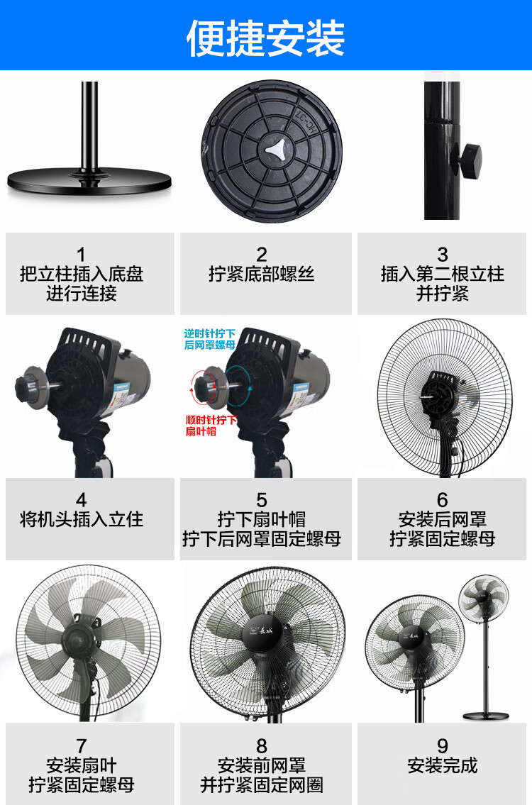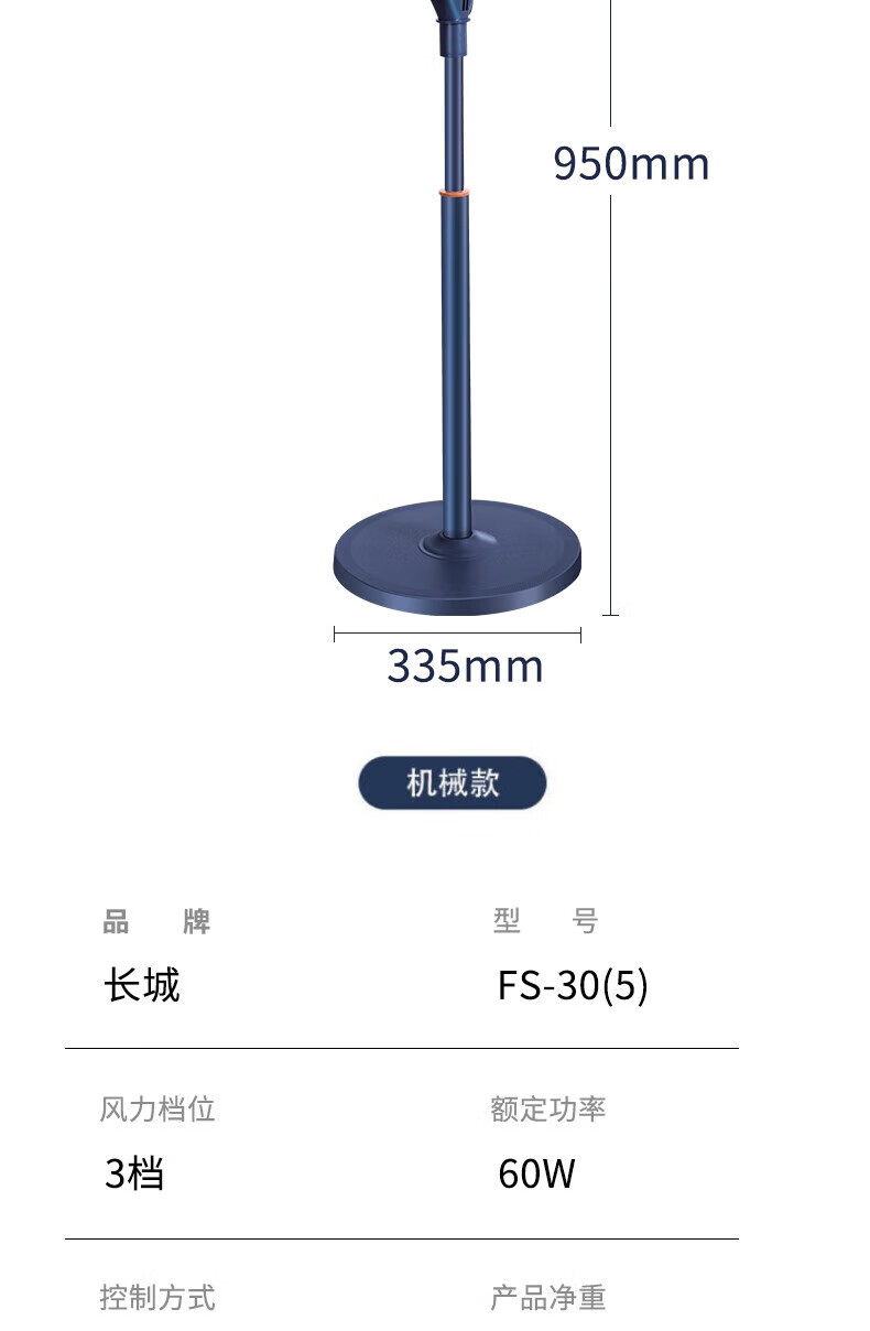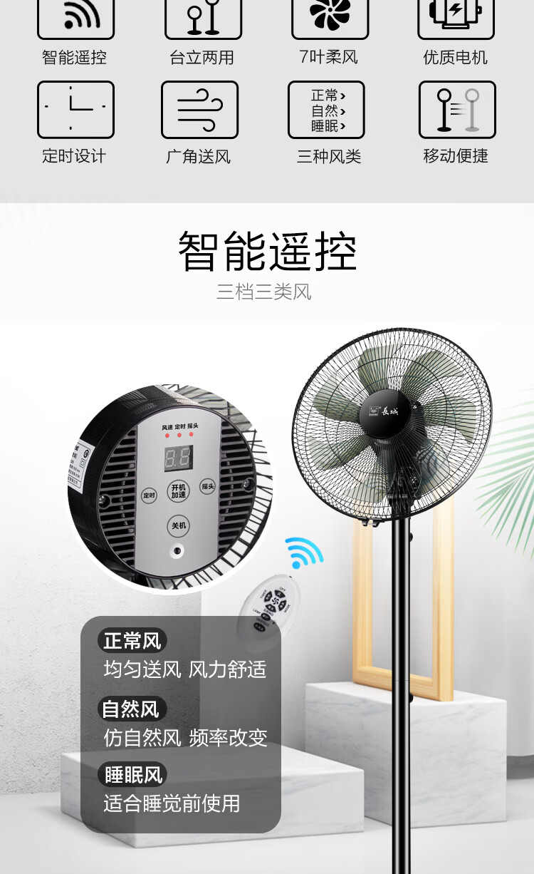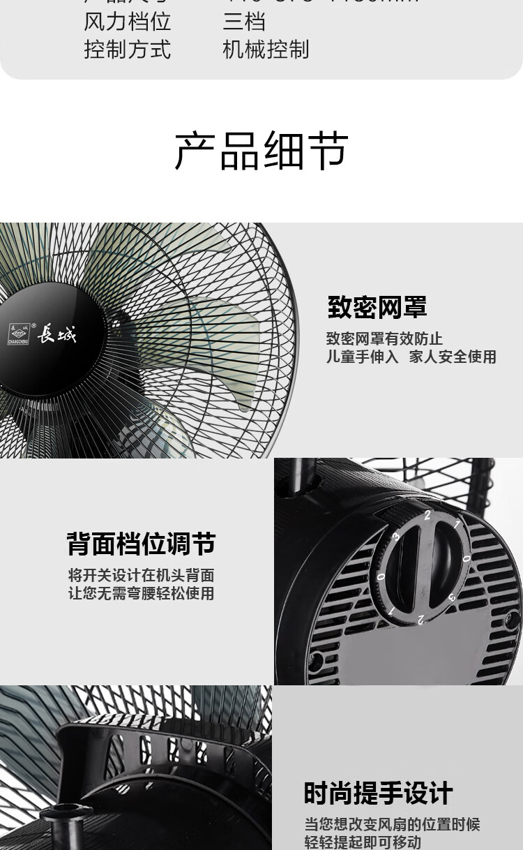 长城电风扇/落地扇/空气流通/工业落地扇/工程家用风扇/七叶大风量风扇 黑色机械款-FS-35II(2)P